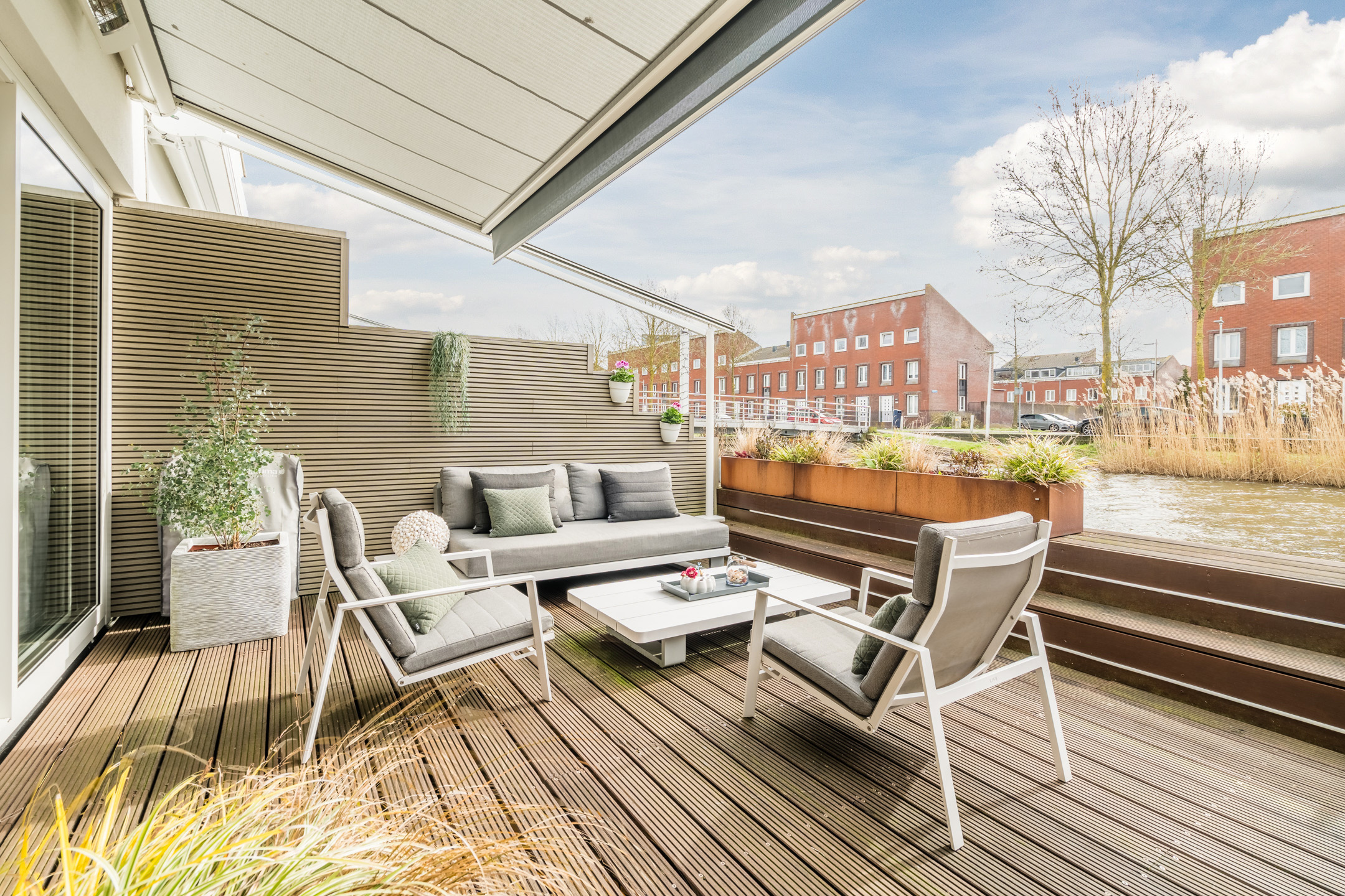 Terras aan het water