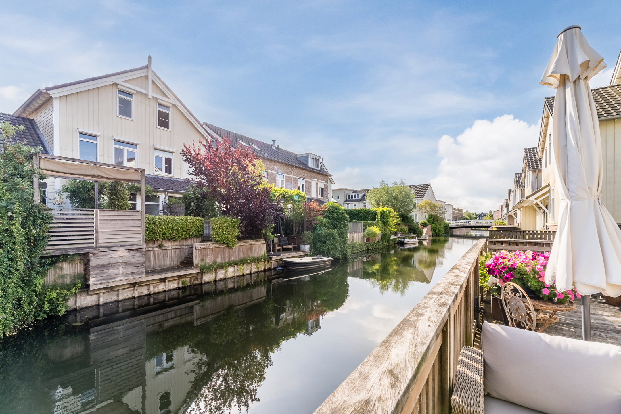 – Riante voor-/ zij-tuin en vlonder met uitzicht op het water;