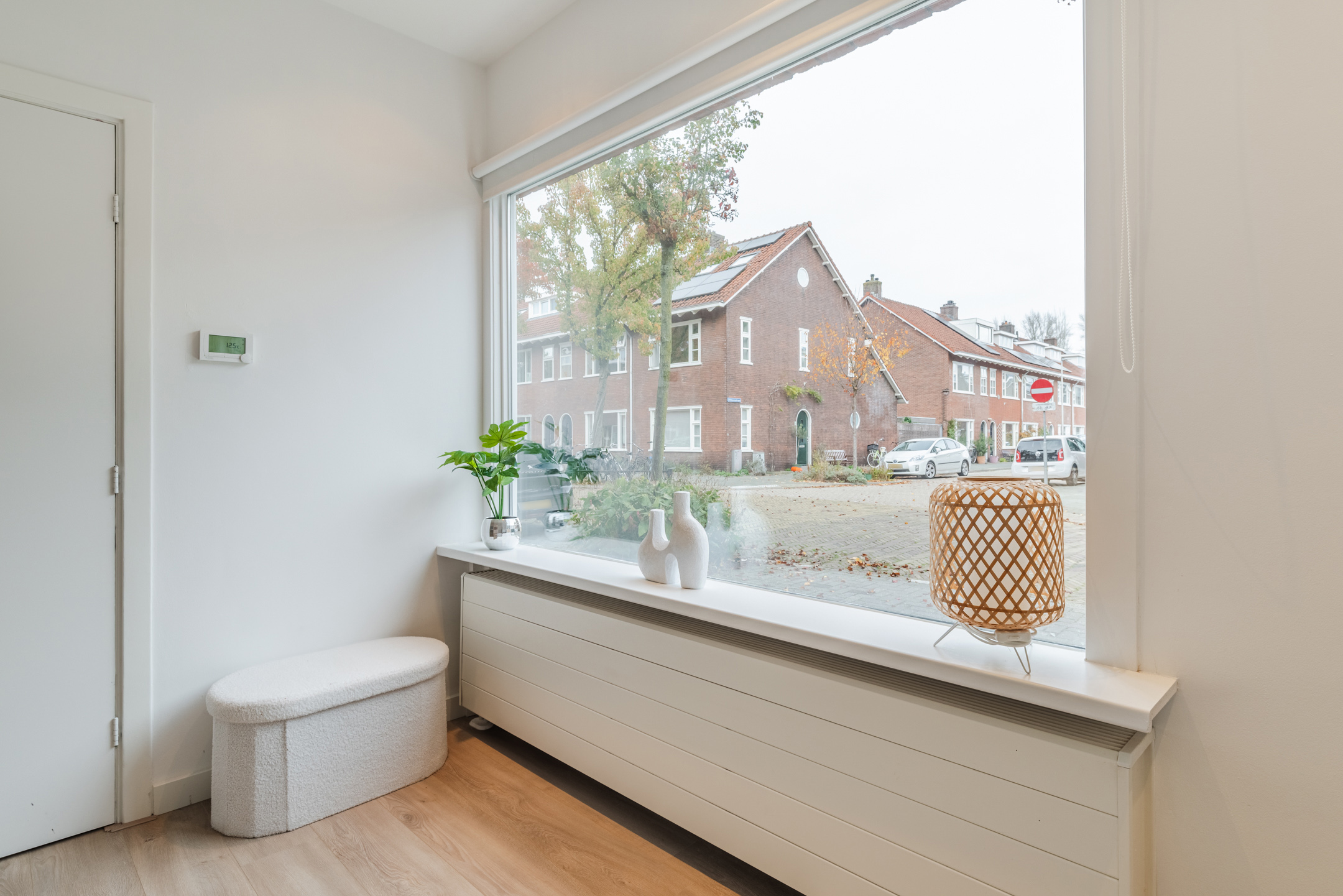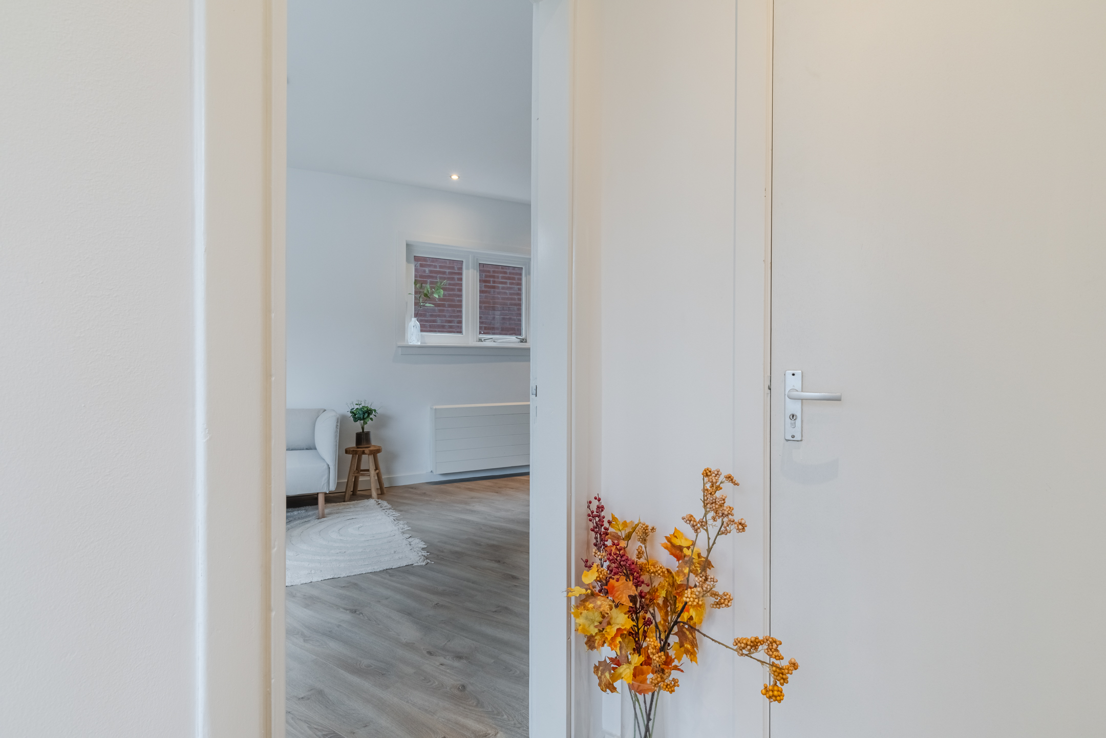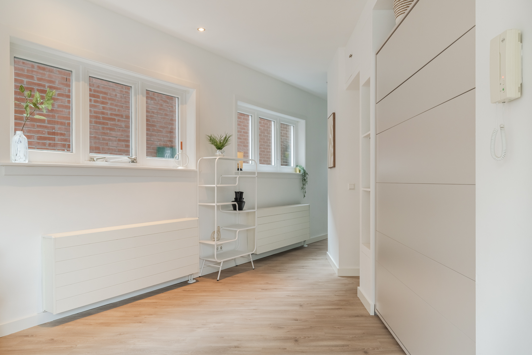 Kenmerkend voor deze woning is de hoeveelheid daglichttoetreding dankzij de grote raampartijen aan de voor-, zij en achterkant. De inpandige badkamer met ruime inloopdouche, de praktische keuken met doorgang naar de achtertuin mét achterom.