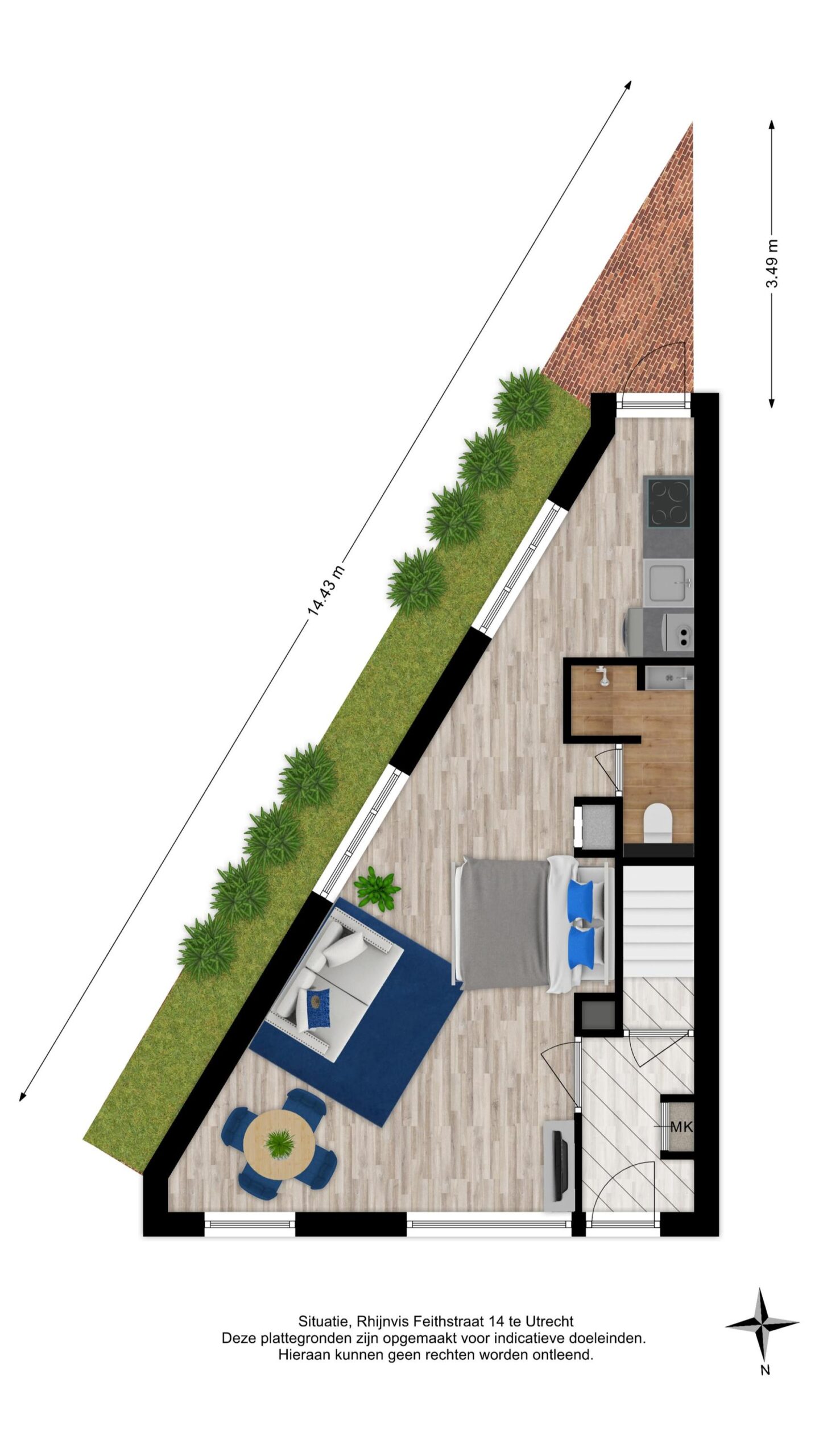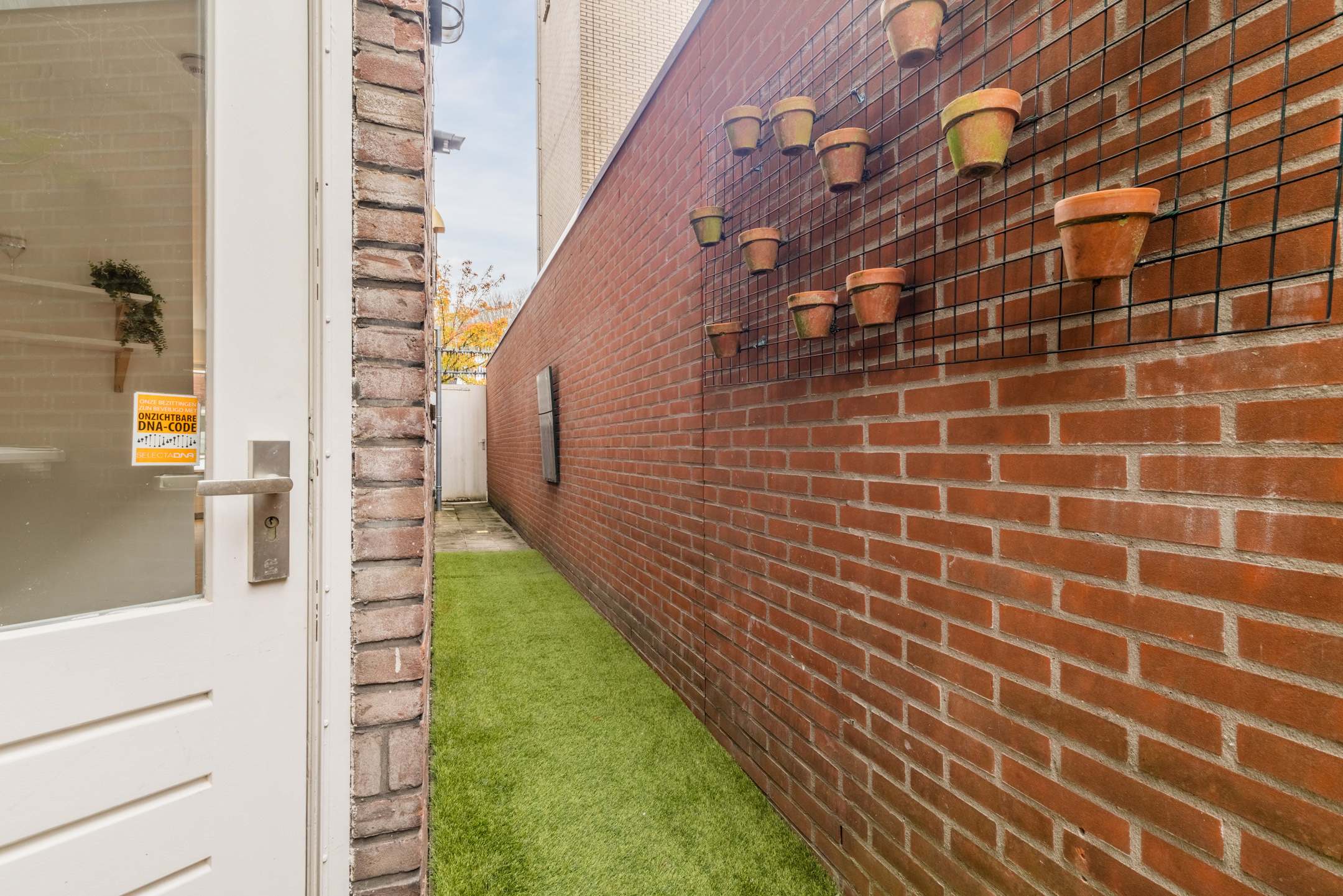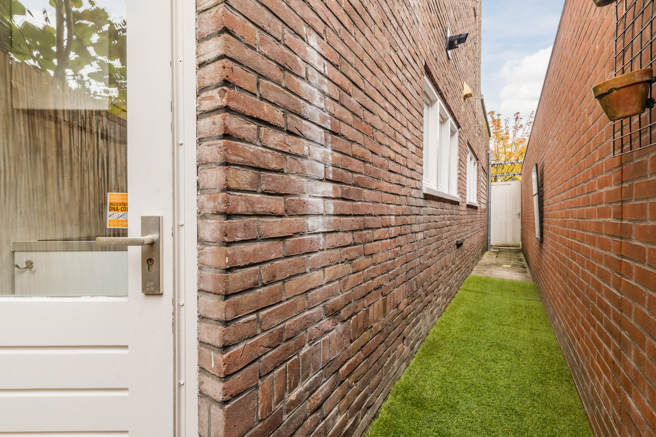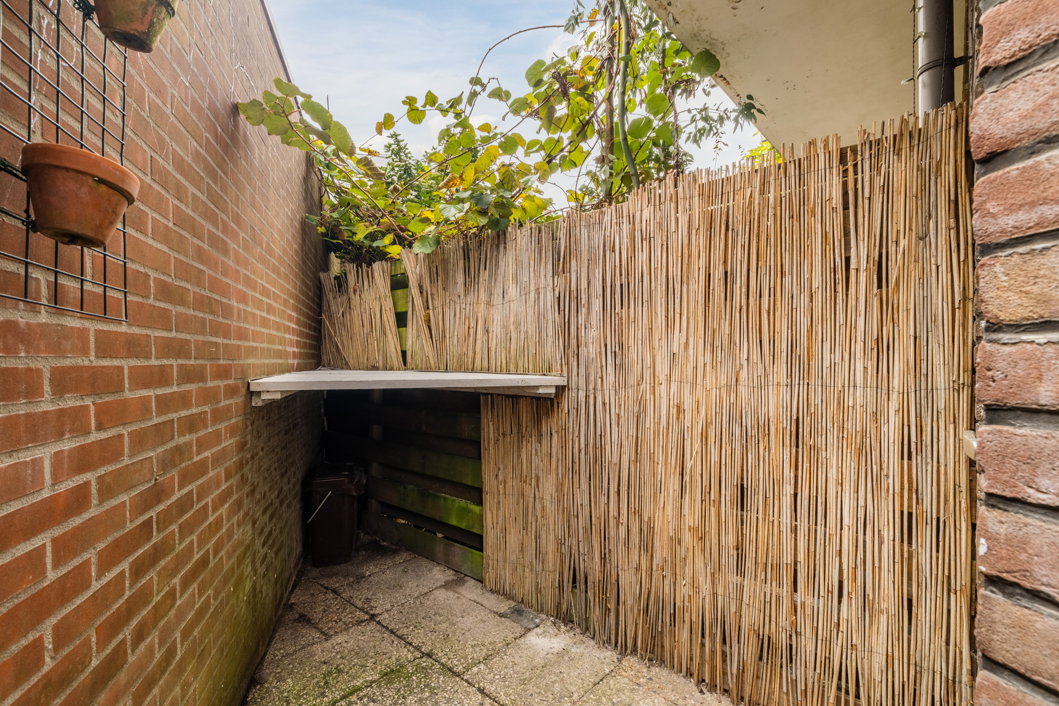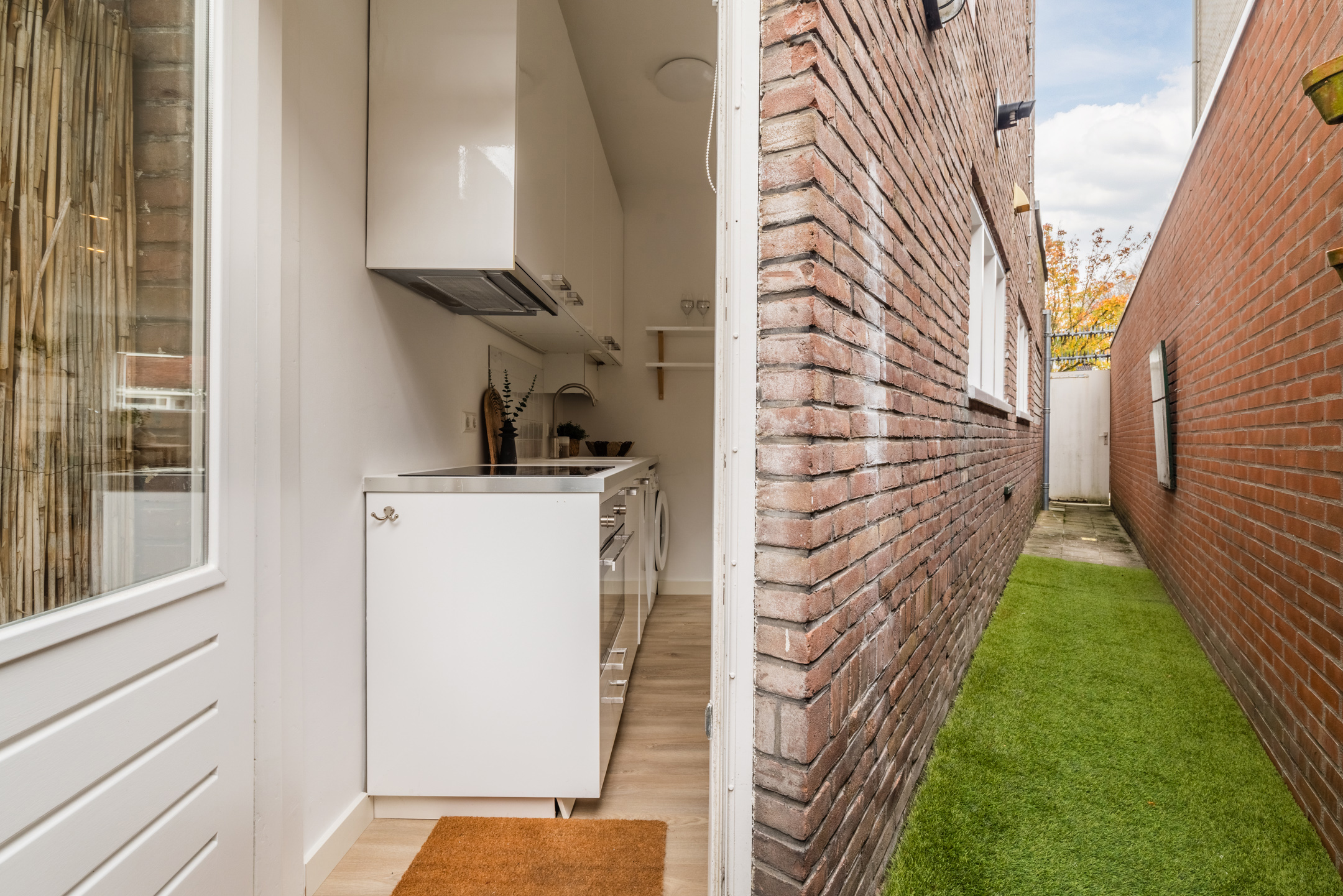 De buitenruime is gesitueerd op het zuiden en biedt een fijn plekje om even buiten te zitten. Daarnaast is er een achterom. Hierdoor kun je buiten de woning om de achtertuin bereiken. Ideaal om je fiets/scooter of motor te kunnen stallen.