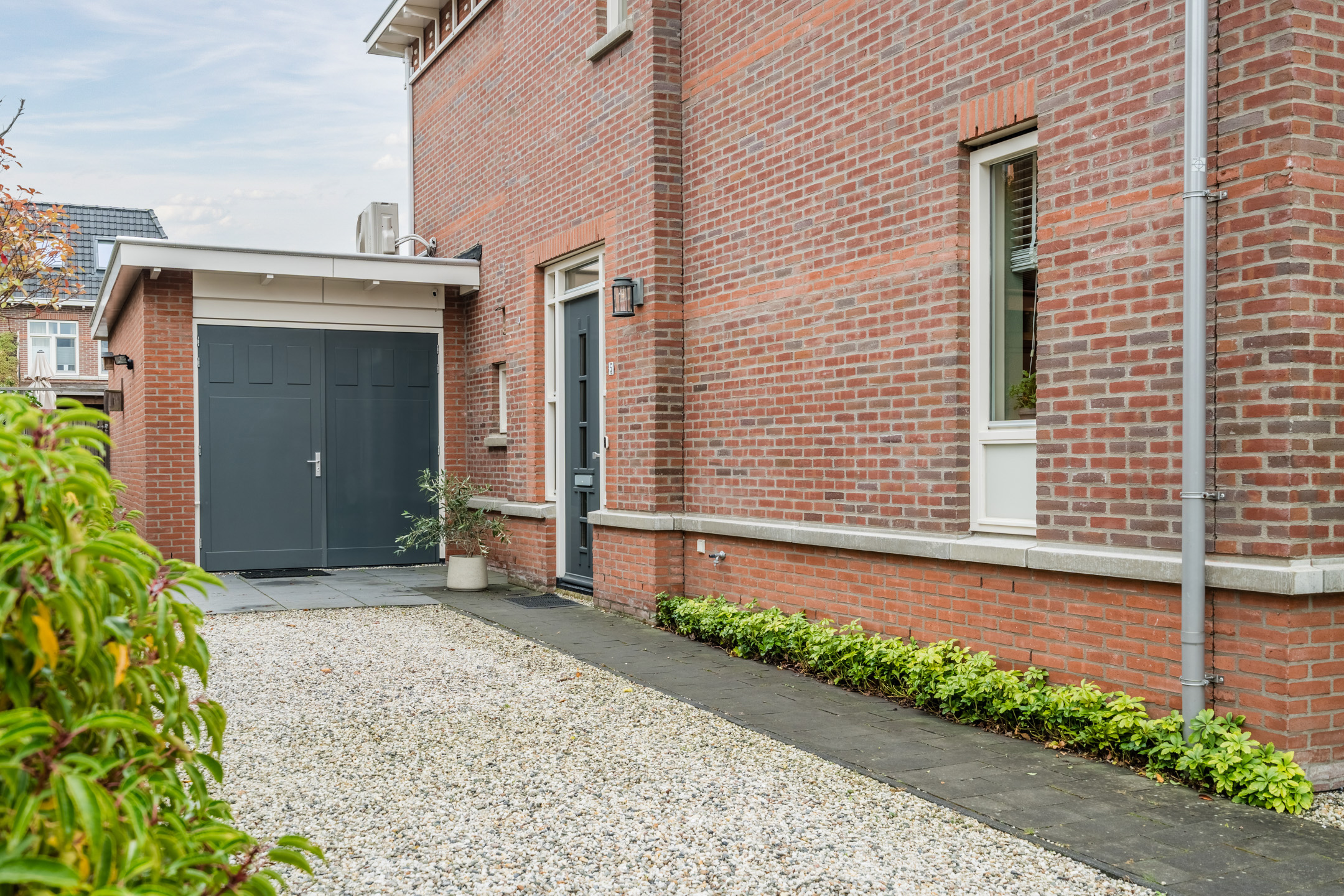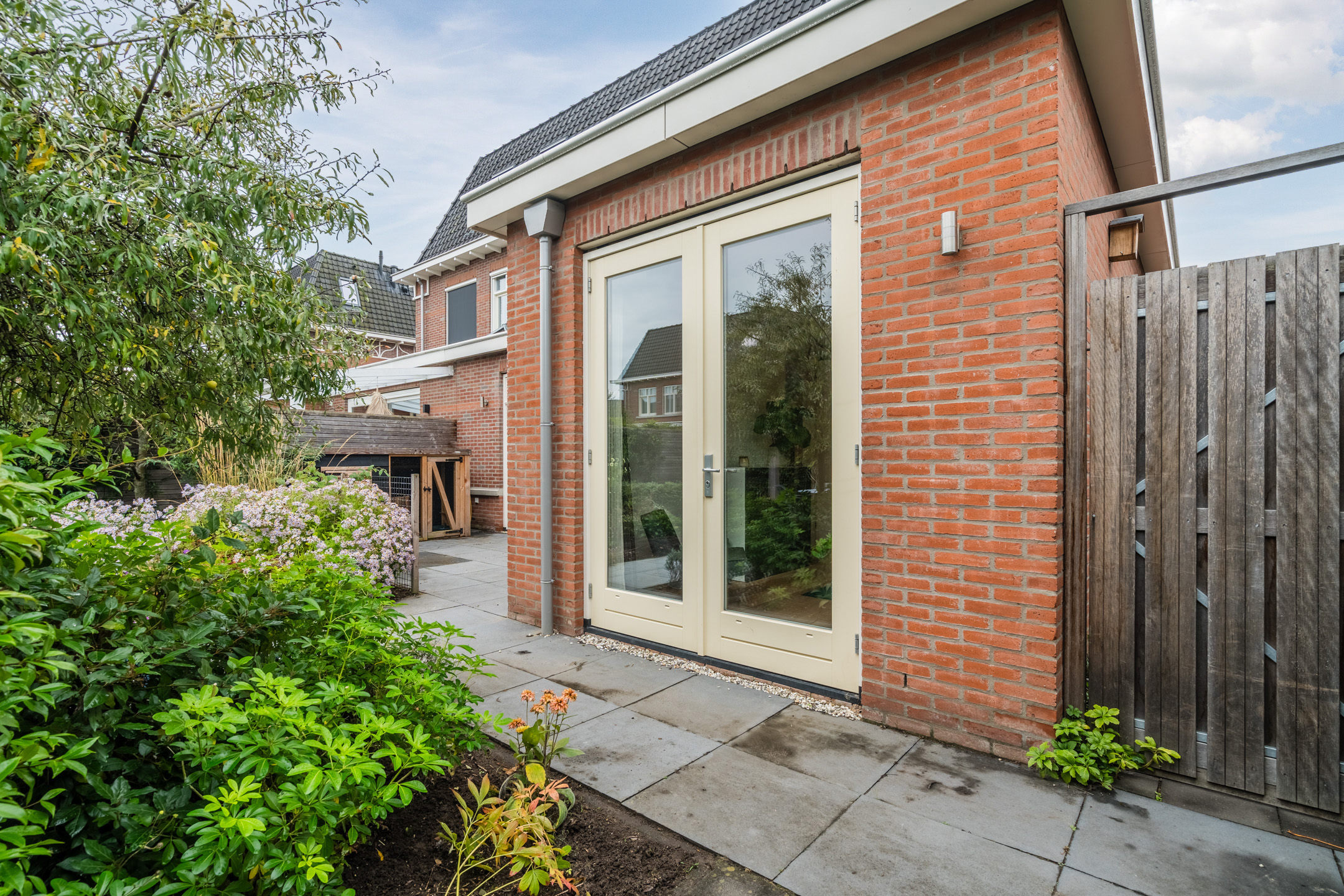 De achtertuin is tevens bereikbaar via de poort op eigen terrein. Vanuit de poort kom je bij de berging en bij de oprit waar plek is voor twee auto’s. De berging is geïsoleerd en biedt veel ruimte voor spullen of fietsen.