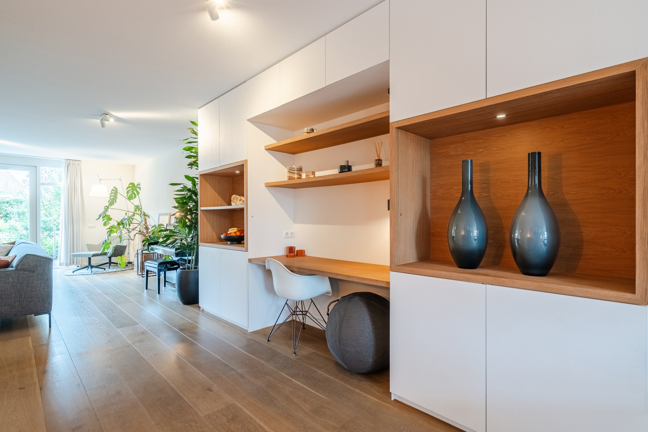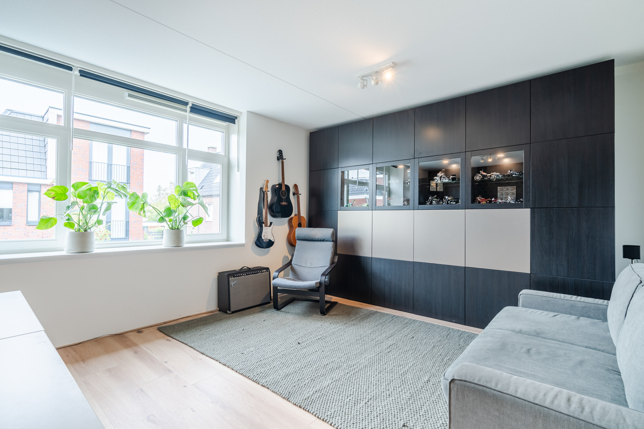 De afwerking van de begane grond is van hoog niveau. De vloer is voorzien van een eiken parketvloer met vloerverwarming, wat bijdraagt aan zowel comfort als een stijlvolle uitstraling.