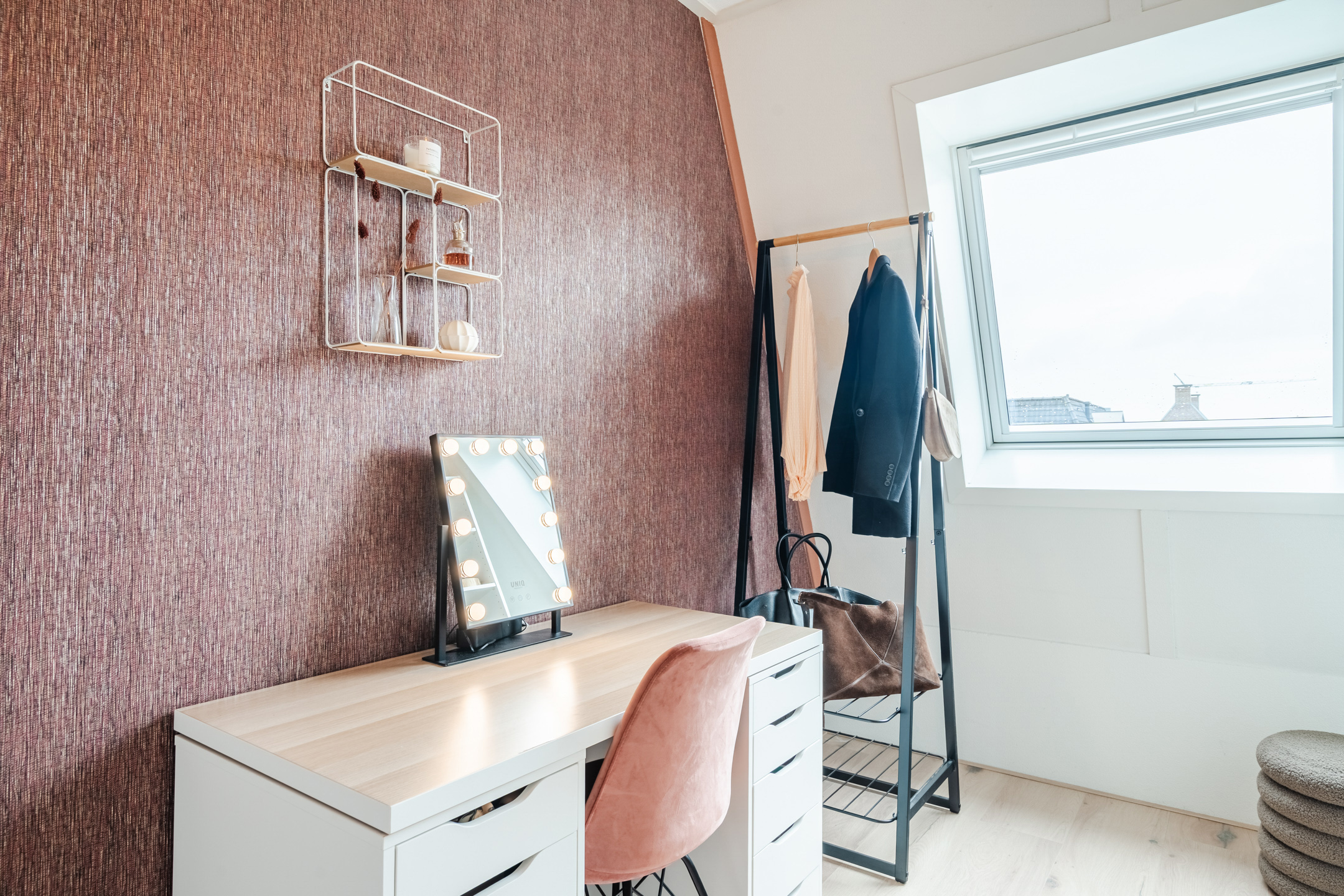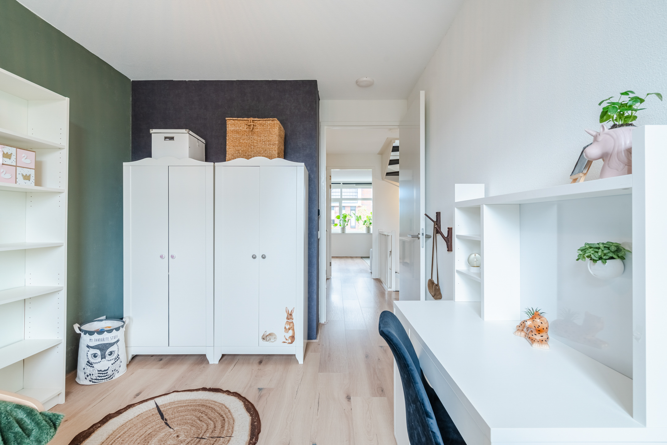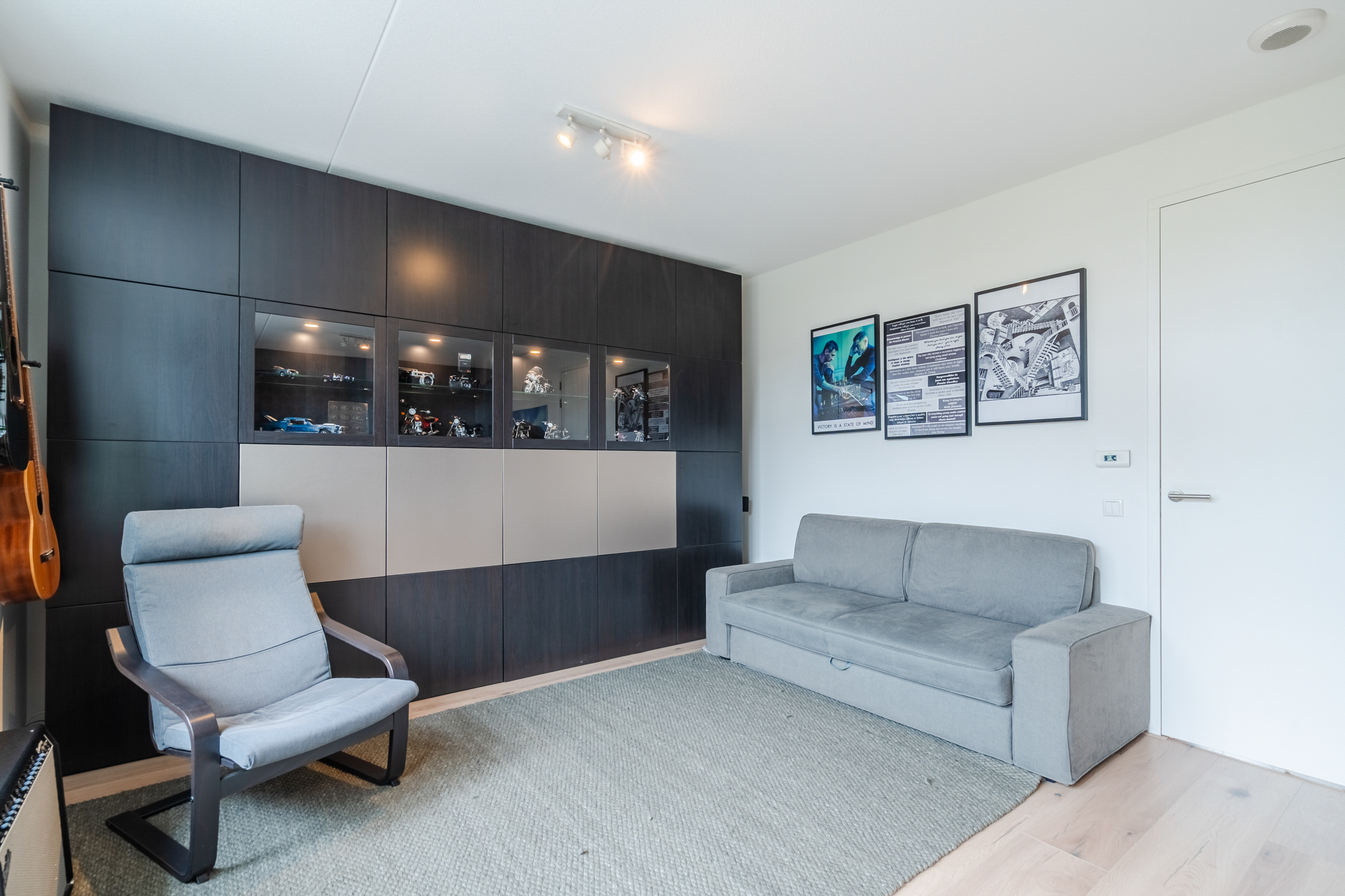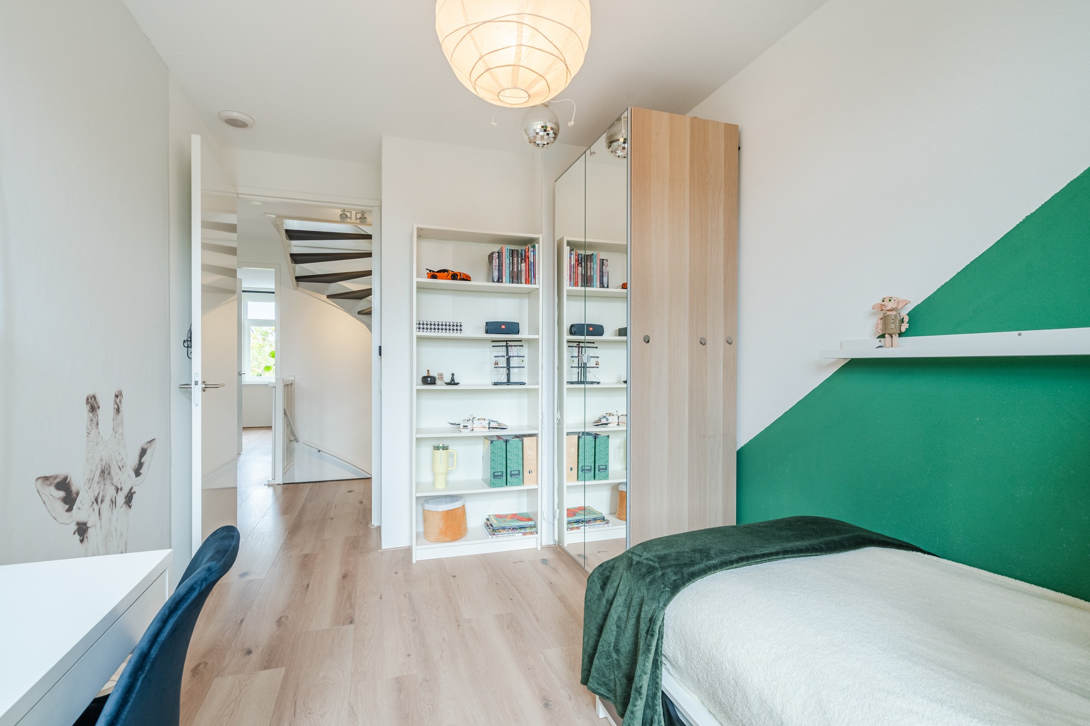 De naastgelegen kamer vormt de vijfde slaapkamer (ca. 9 m²). Deze ruimte is momenteel ingericht als walk-in closet, maar kan eenvoudig worden gebruikt als een slaapkamer of thuiswerkplek, afhankelijk van je woonwensen.