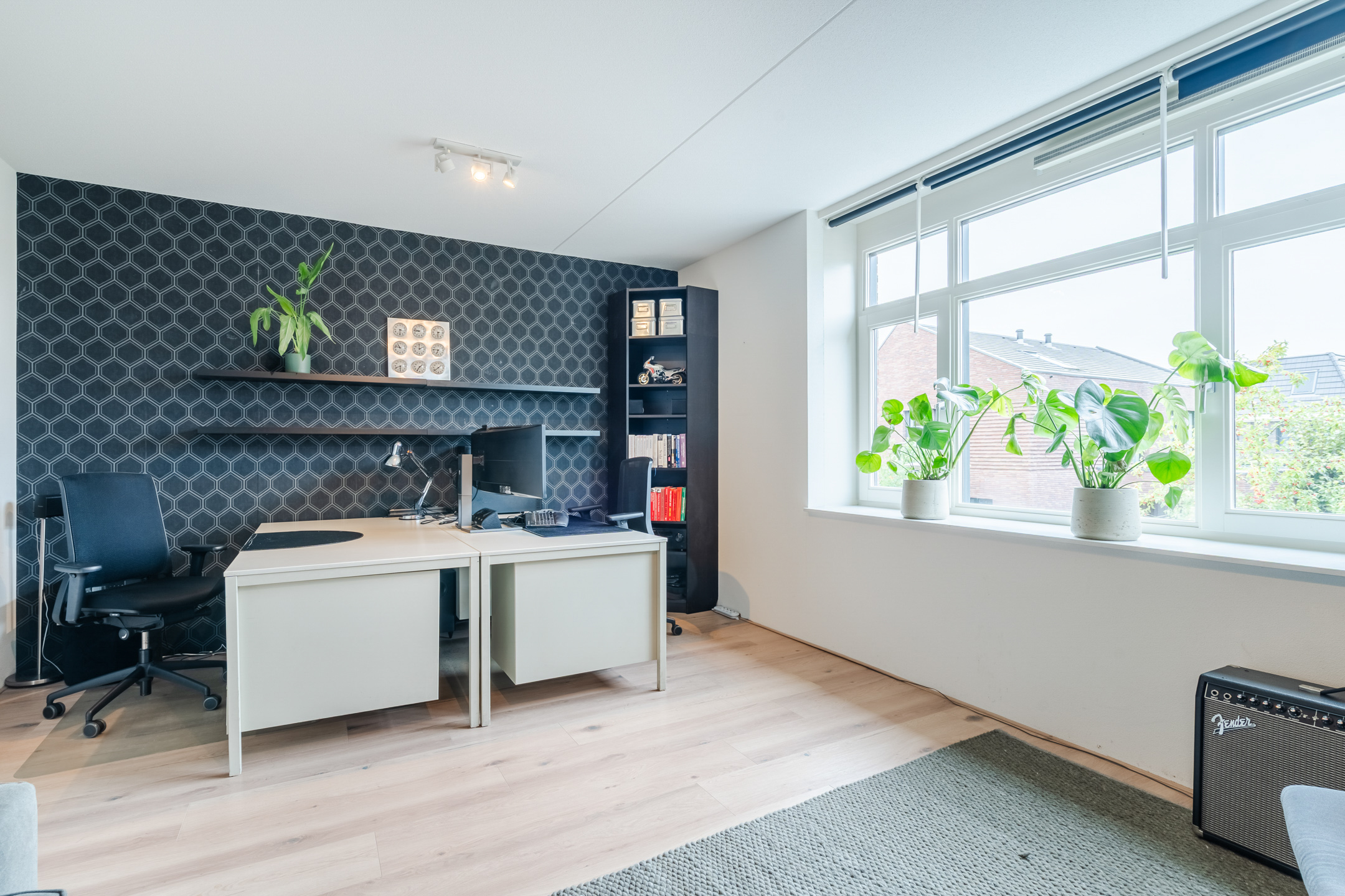 Deze uitstekend afgewerkte villa (ca. 216 m² woonoppervlakte) staat op een royaal perceel van 326 m² eigen grond. De woning beschikt over een aangebouwde stenen berging (ca. 9 m²), een eigen oprit met ruimte voor twee auto’s en een fraai aangelegde achtertuin op het oosten. Wat direct opvalt, is de doordachte indeling van het huis: alle ruimtes zijn licht, ruim en hebben een duidelijke functie. De maatwerkmeubels dragen bij aan een moderne en luxe uitstraling. De villa ligt aan de zuidrand van het Máximapark en is ontworpen in een karakteristieke architectuur met oog voor detail.