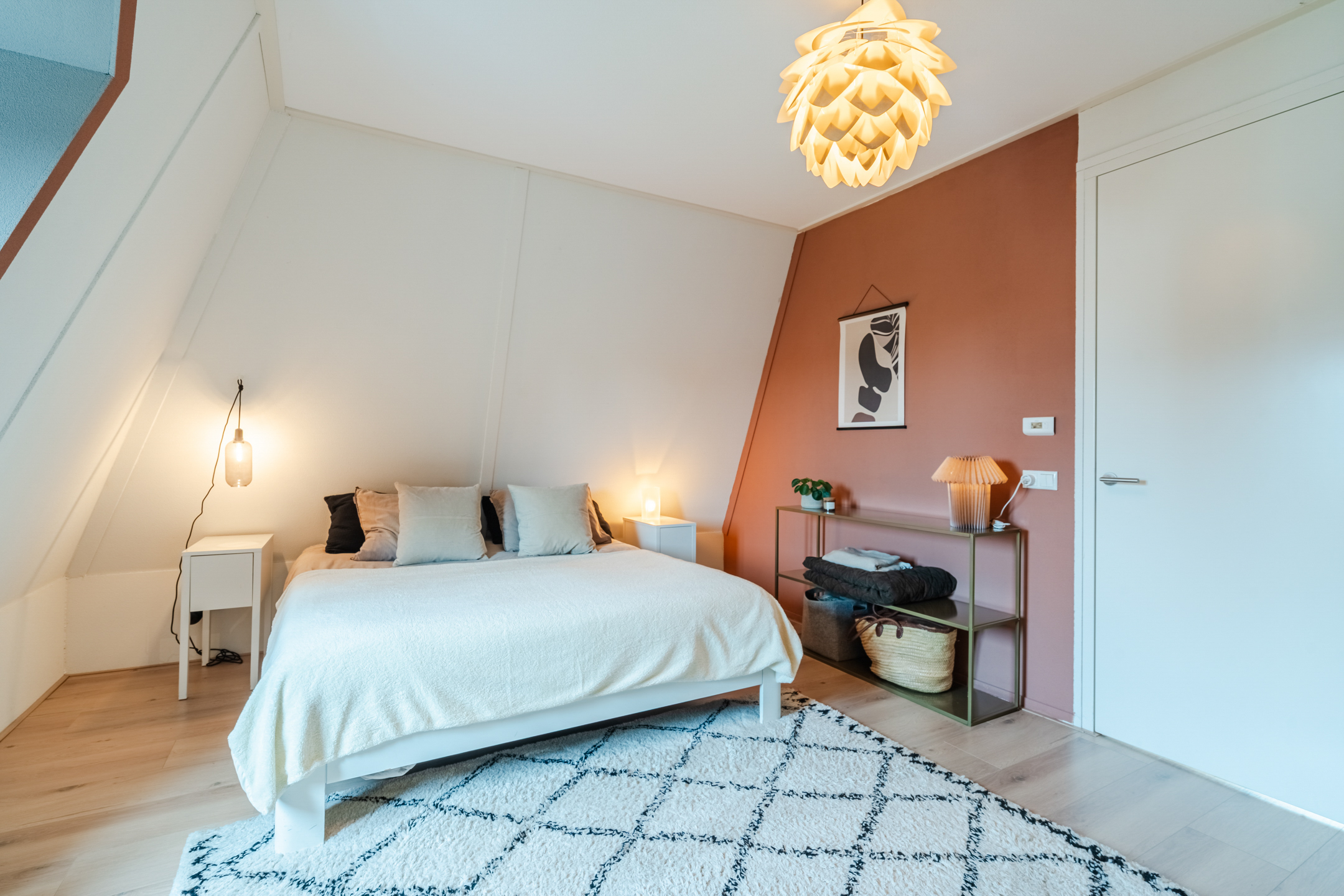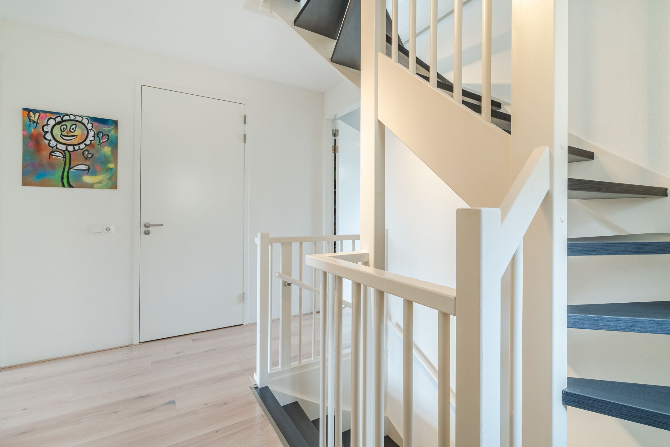 Ook deze verdieping is volledig uitgerust met vloerverwarming en afgewerkt met een strakke laminaatvloer, wat zorgt voor een comfortabel en verzorgd geheel.