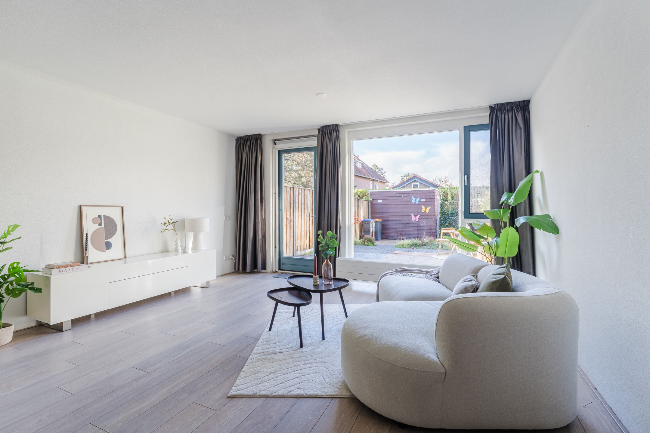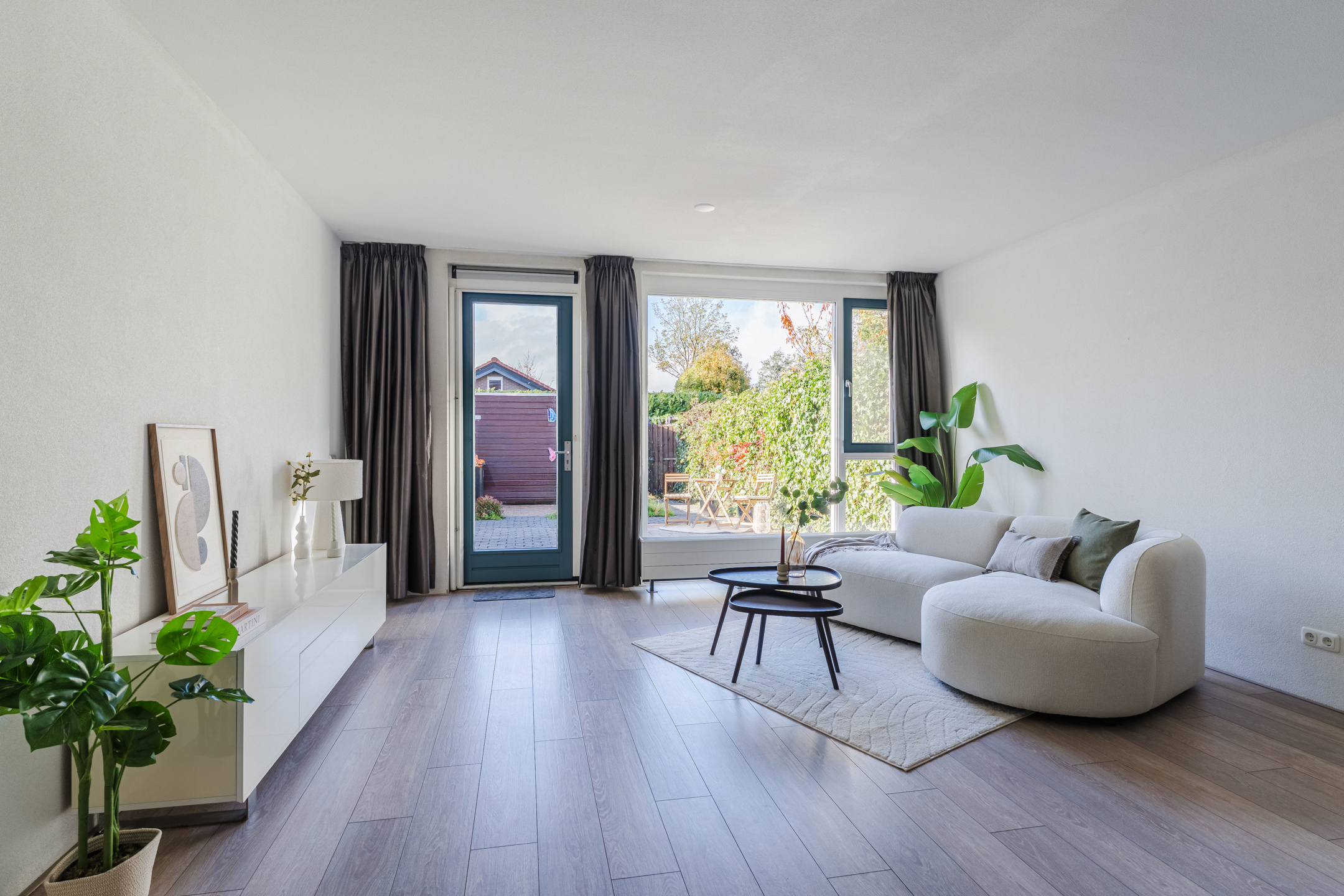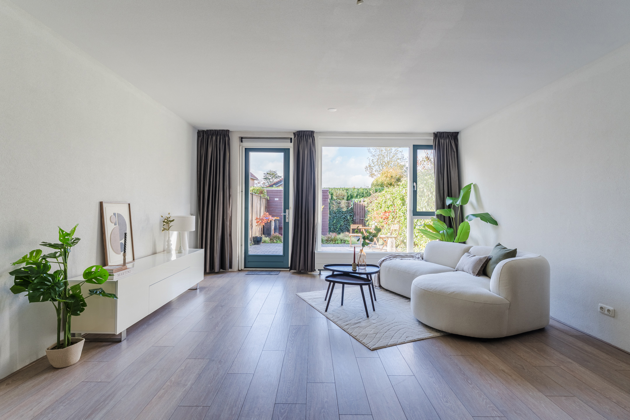 De tuingerichte woonkamer is ruim van opzet (ca. 35 m2) en beschikt over een grote raampartij met loopdeur, wat zorgt voor veel daglichttoetreding. De woonkamer is eenvoudig in te delen in een gezellige zithoek en een ruime eethoek. Tevens is er een praktische trapkast aanwezig, die veel bergruimte biedt.