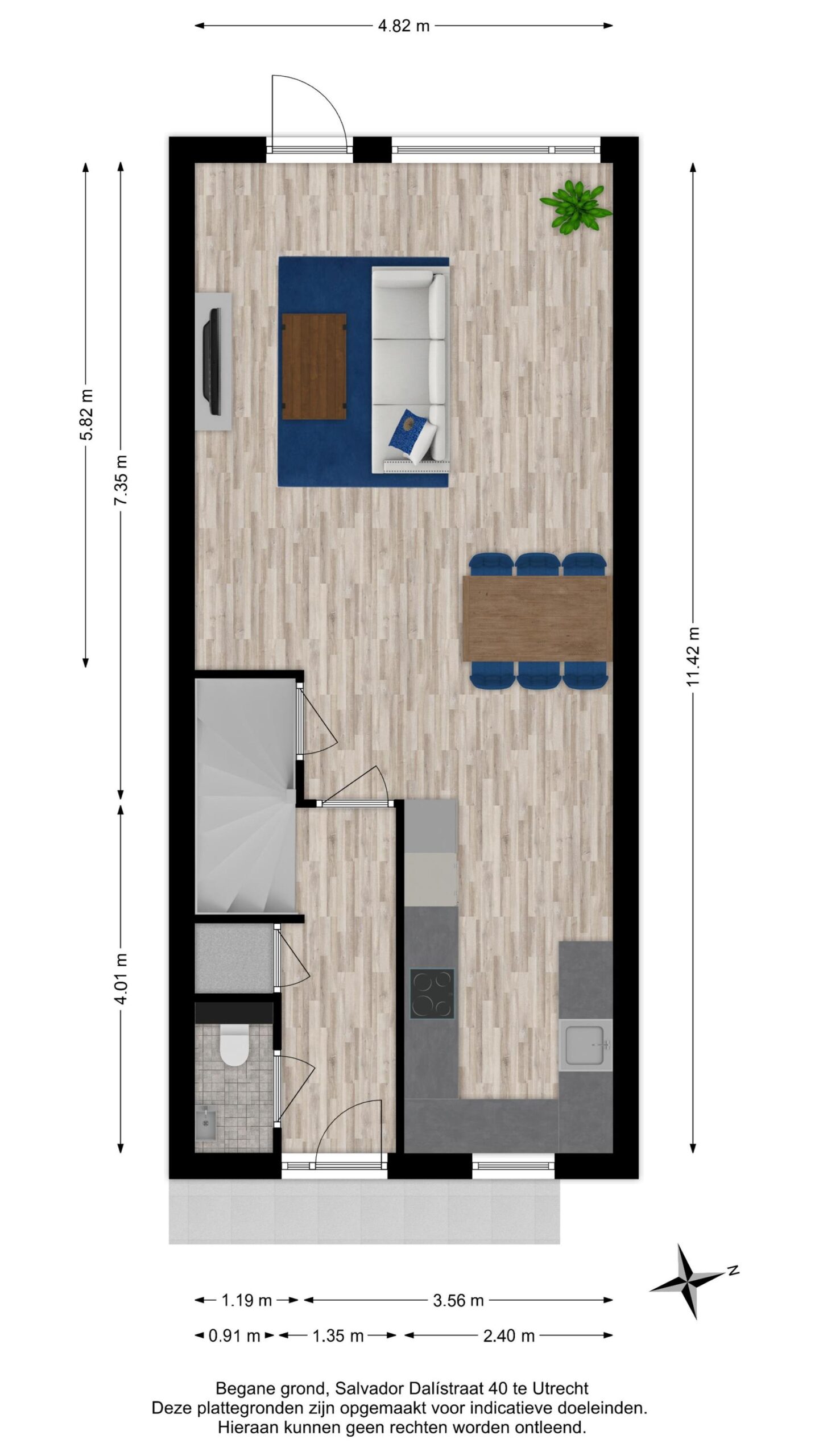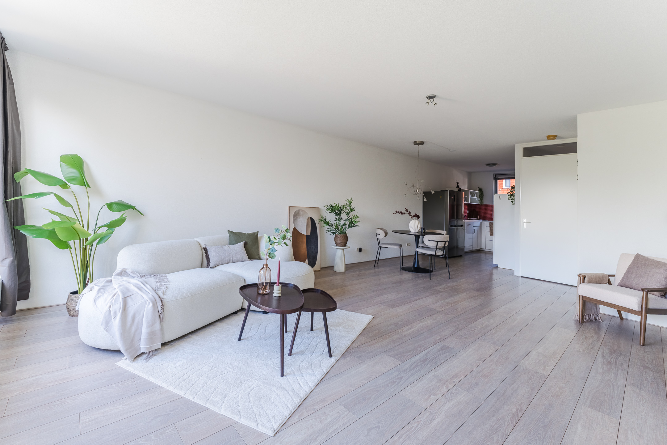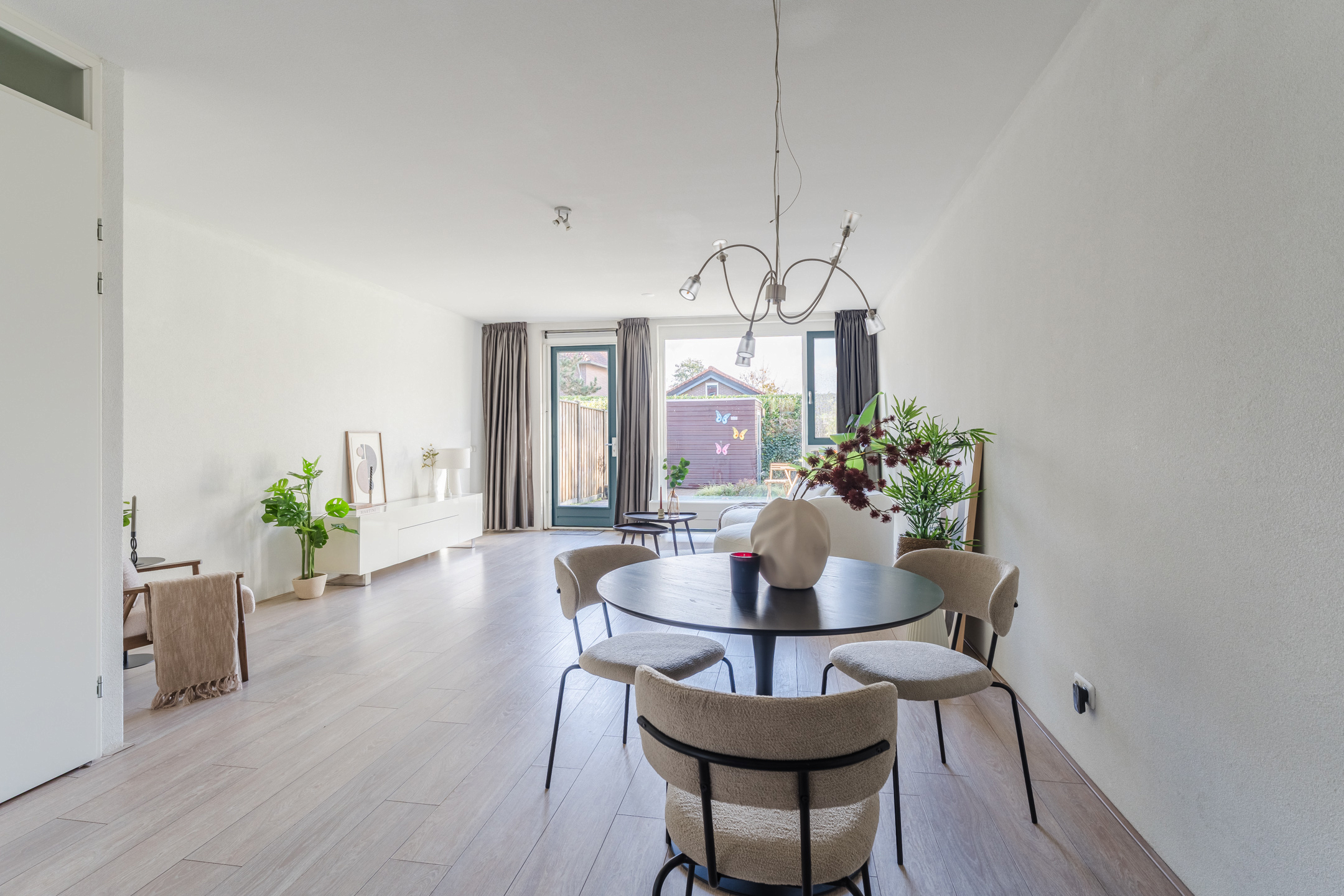 De tuingerichte woonkamer is ruim van opzet (ca. 35 m2) en beschikt over een grote raampartij met loopdeur, wat zorgt voor veel daglichttoetreding. De woonkamer is eenvoudig in te delen in een gezellige zithoek en een ruime eethoek. Tevens is er een praktische trapkast aanwezig, die veel bergruimte biedt.