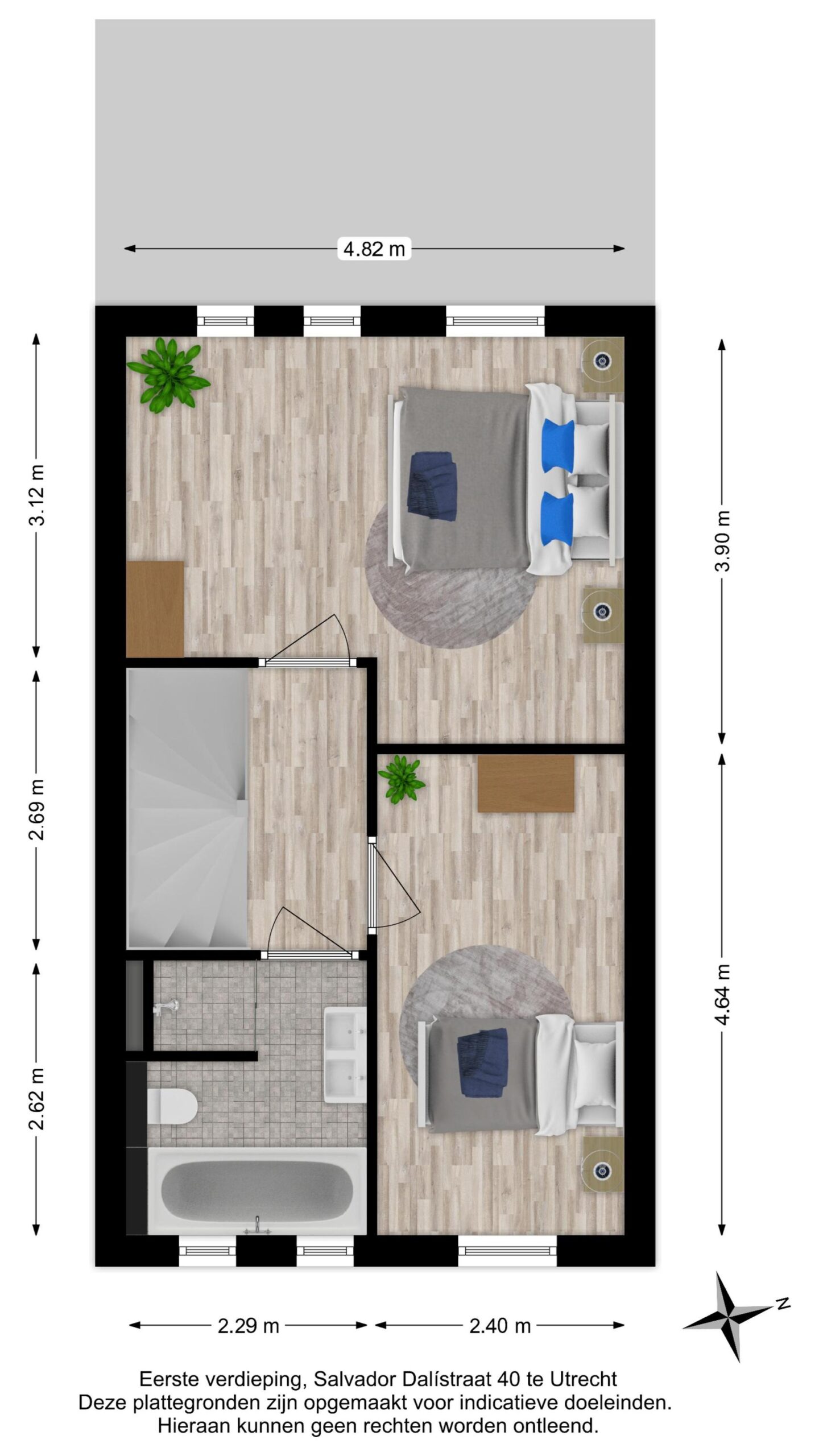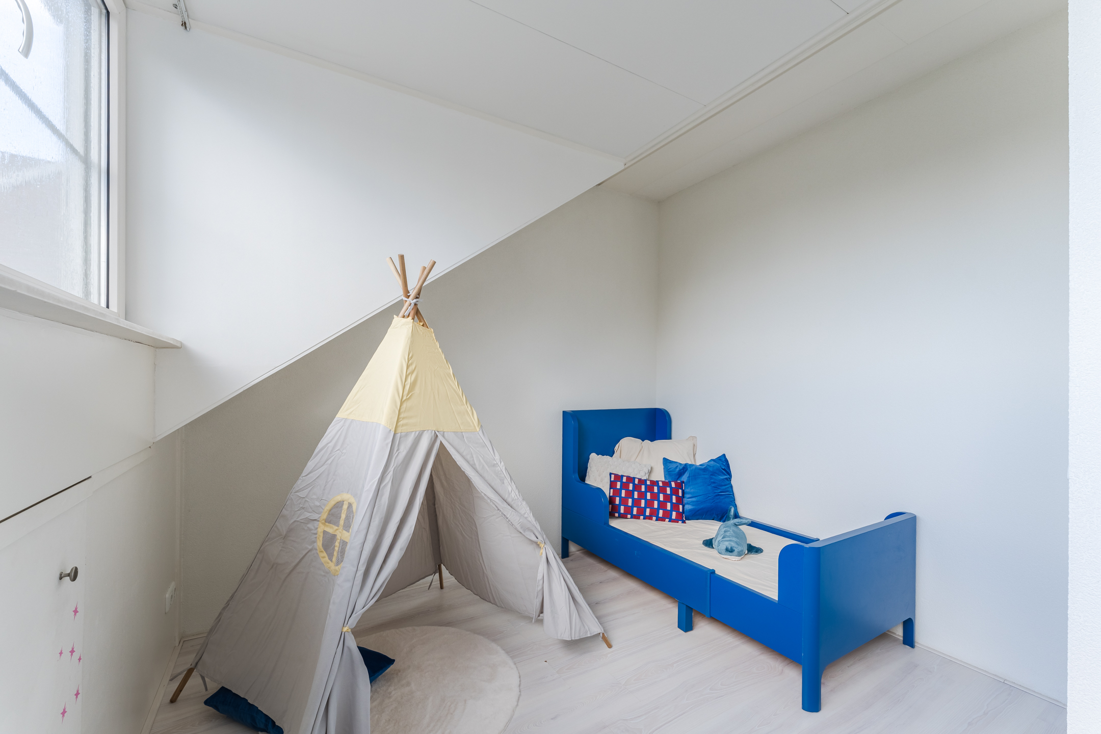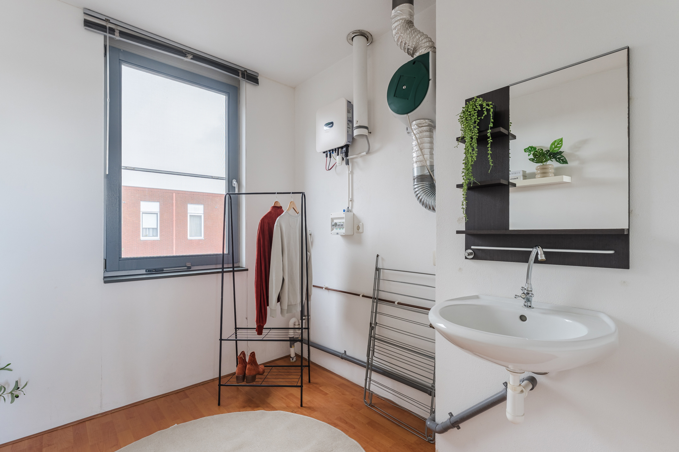 Op de bovenste woonlaag bevinden zich eveneens twee slaapkamers en een praktische wasruimte met aansluitingen voor de wasmachine en droger. Deze verdieping is verrassend ruim ingedeeld en biedt volop mogelijkheden.