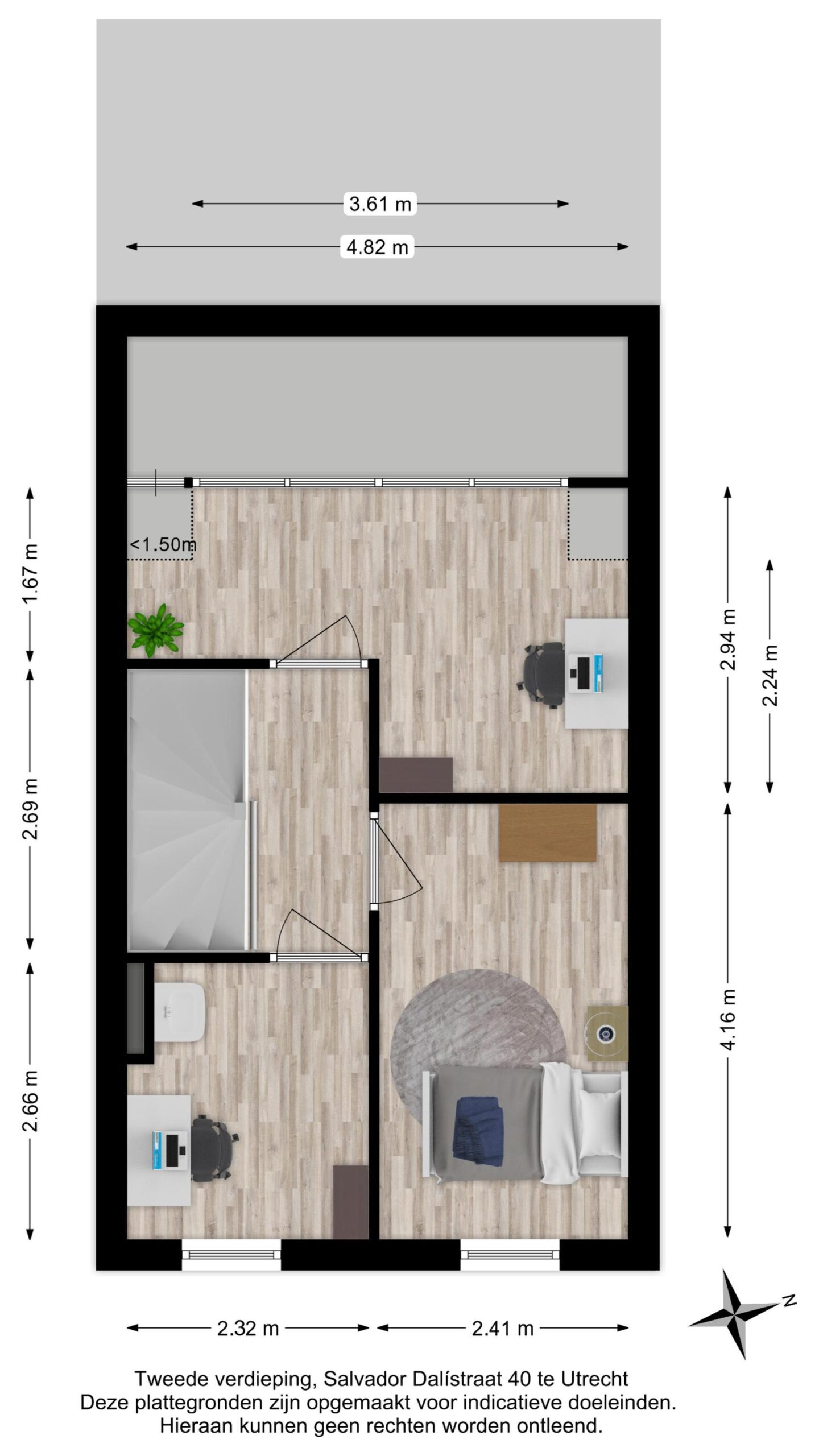 Overloop, trapopgang naar de tweede verdieping, de badkamer en de twee volwaardige en multifunctionele (slaap)kamers. Aan de achterzijde bevindt zich de royale ouderslaapkamer (ca. 17 m²), een heerlijke, lichte ruimte met uitzicht over de achtertuin. Dankzij de royale afmetingen is er voldoende plek voor een groot bed en een extra kast of zelfs een knusse zithoek.