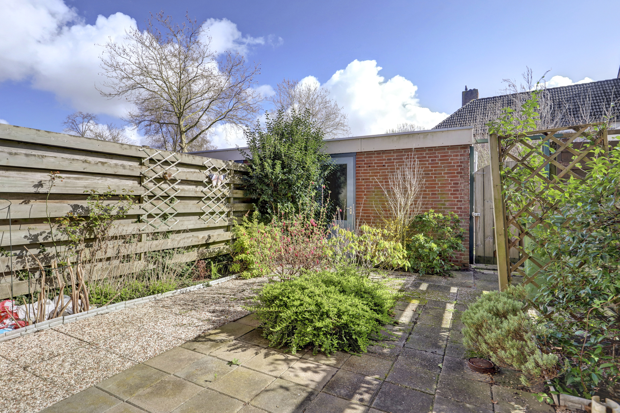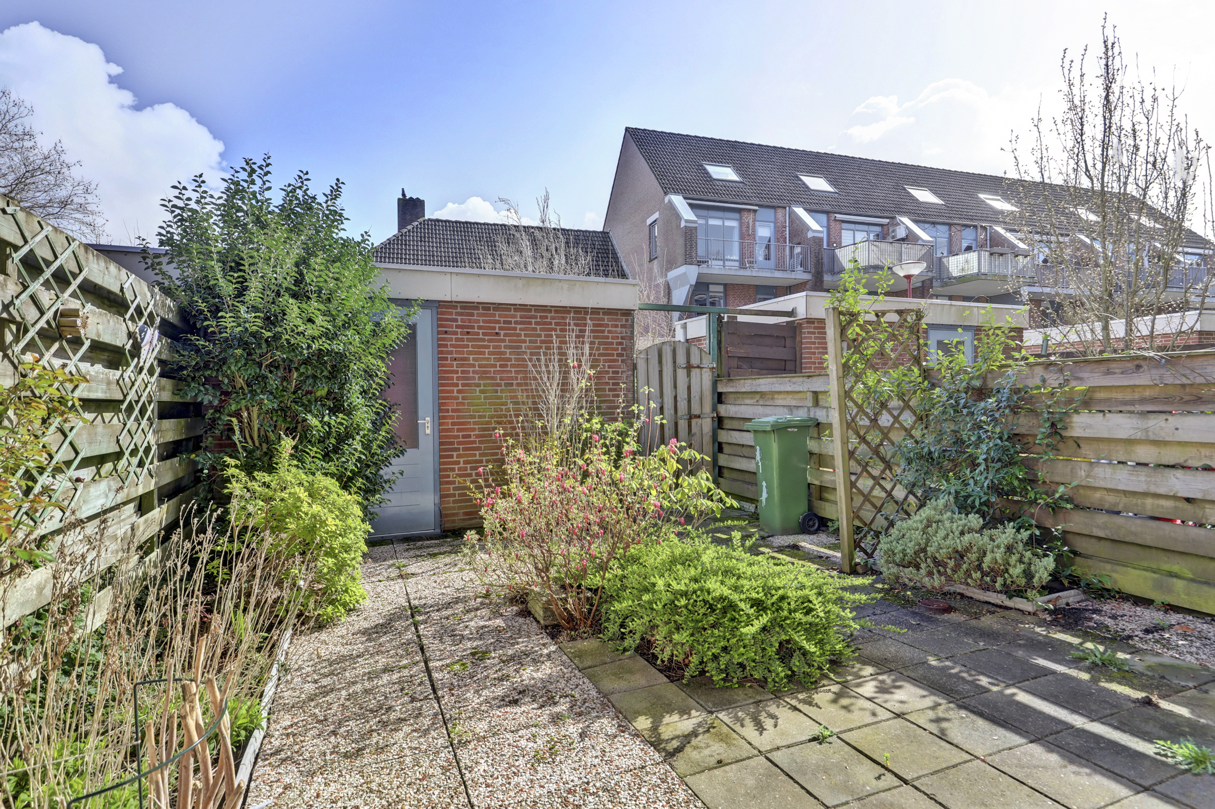 De tuin is onderhoudsvriendelijk aangelegd met een prettige mix van bestrating en groen, wat zorgt voor een fijne en sfeervolle buitenruimte. Dankzij de ligging op het oosten kun je hier vooral in de ochtend en vroege middag heerlijk van de zon genieten. De tuin beschikt daarnaast over een berging (ca. 6 m²) en een praktische achterom.