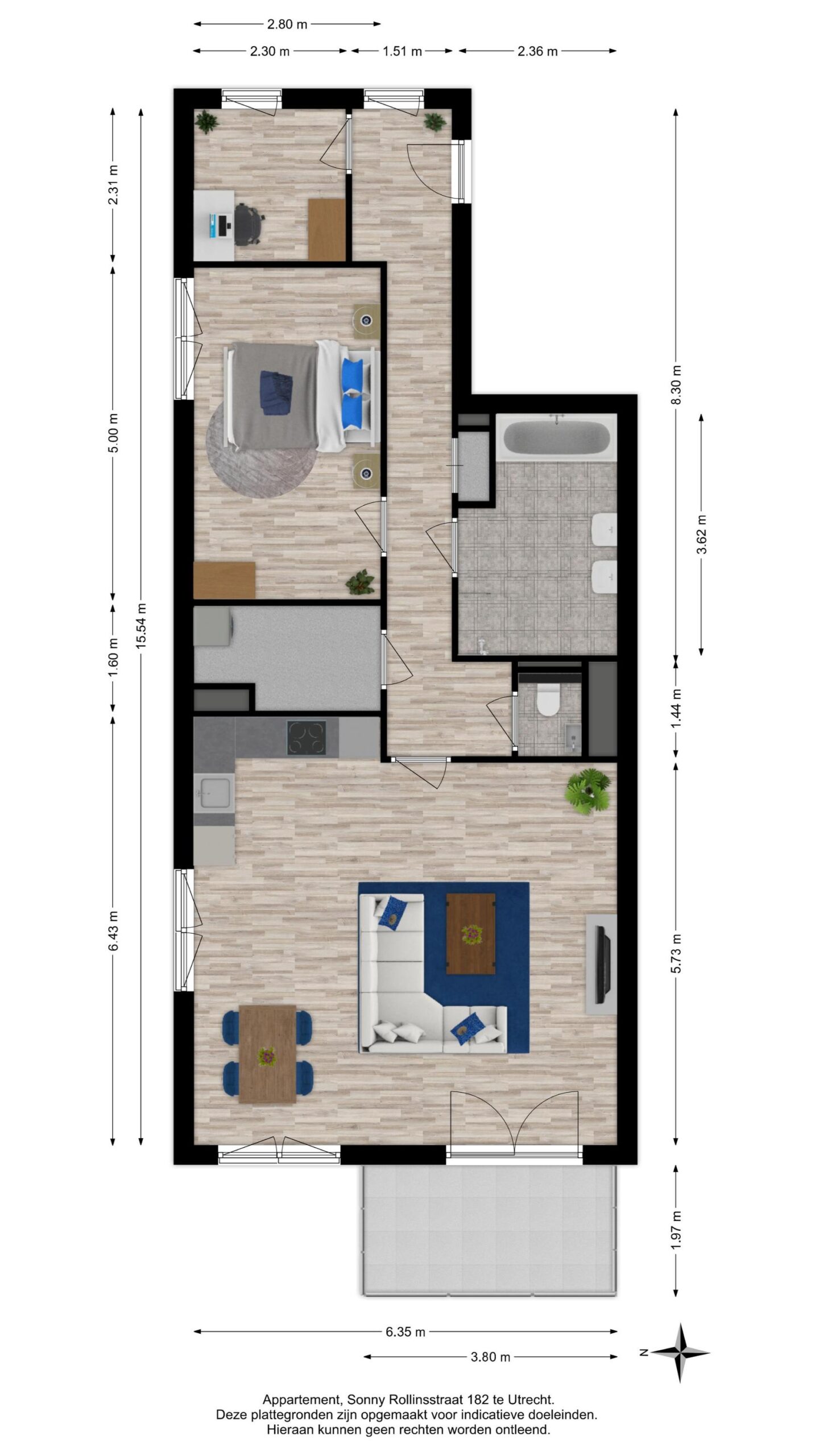 • De woning beschikt over een ruime master bedroom, een multifunctionele tweede kamer, een balkon met vrij uitzicht, een externe berging en een eigen parkeerplaats in de parkeergarage.