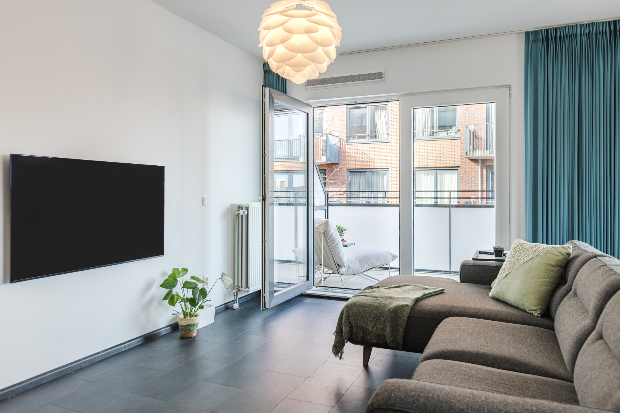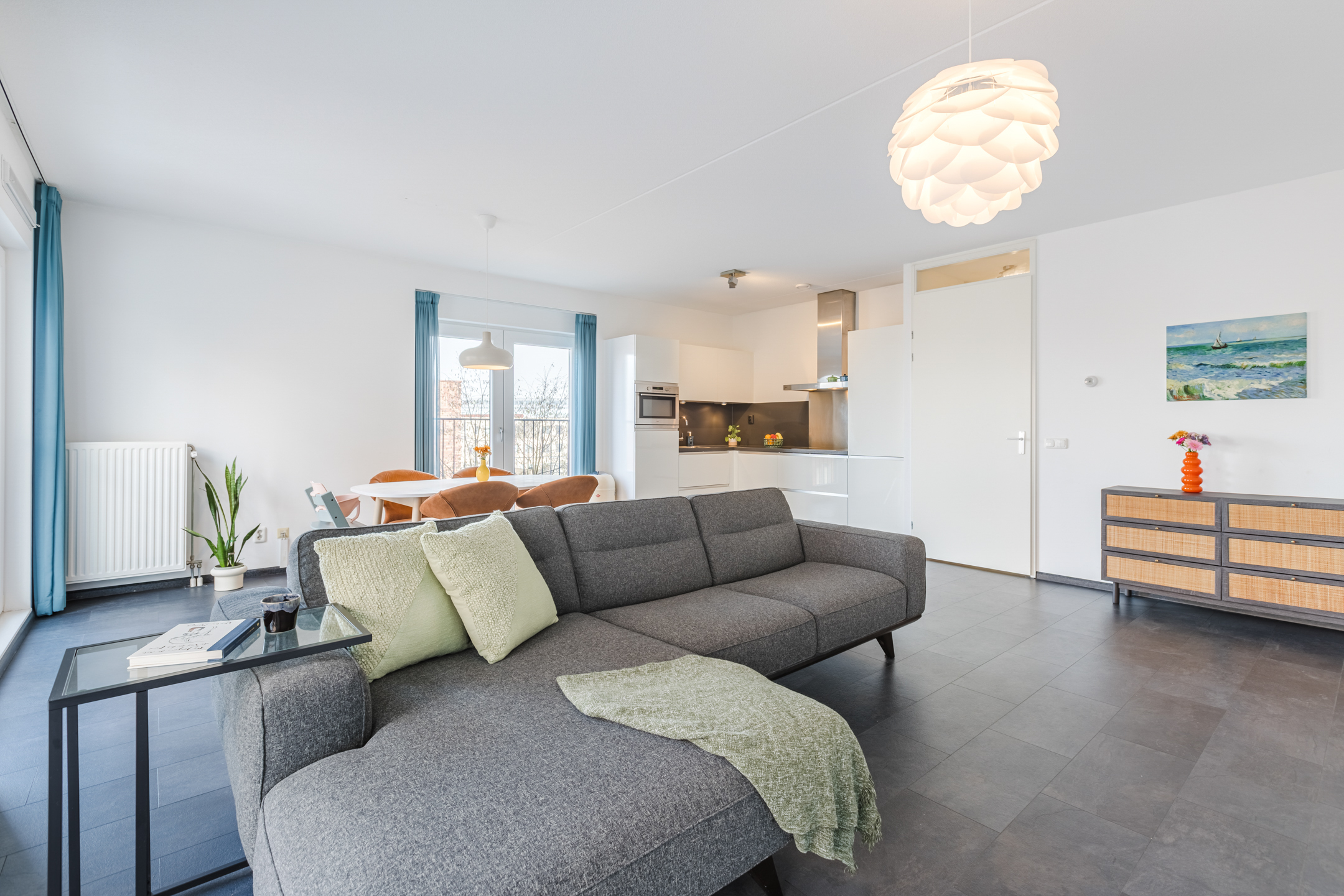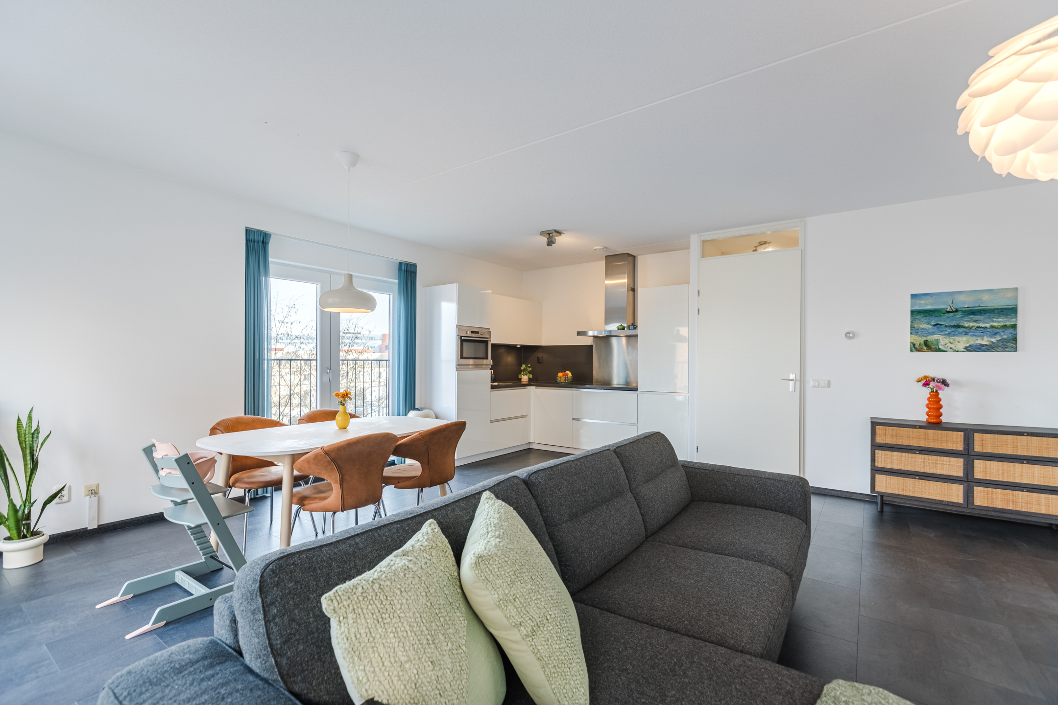 • Dankzij de hoekligging en de grote raampartijen geniet de woonkamer van een prachtige hoeveelheid natuurlijk licht;