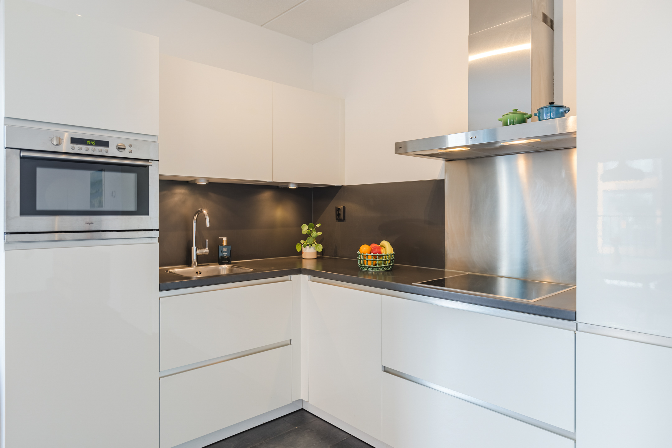 • De woonkamer met open keuken in moderne L-opstelling zorgt voor een ruimtelijk en gezellig geheel;