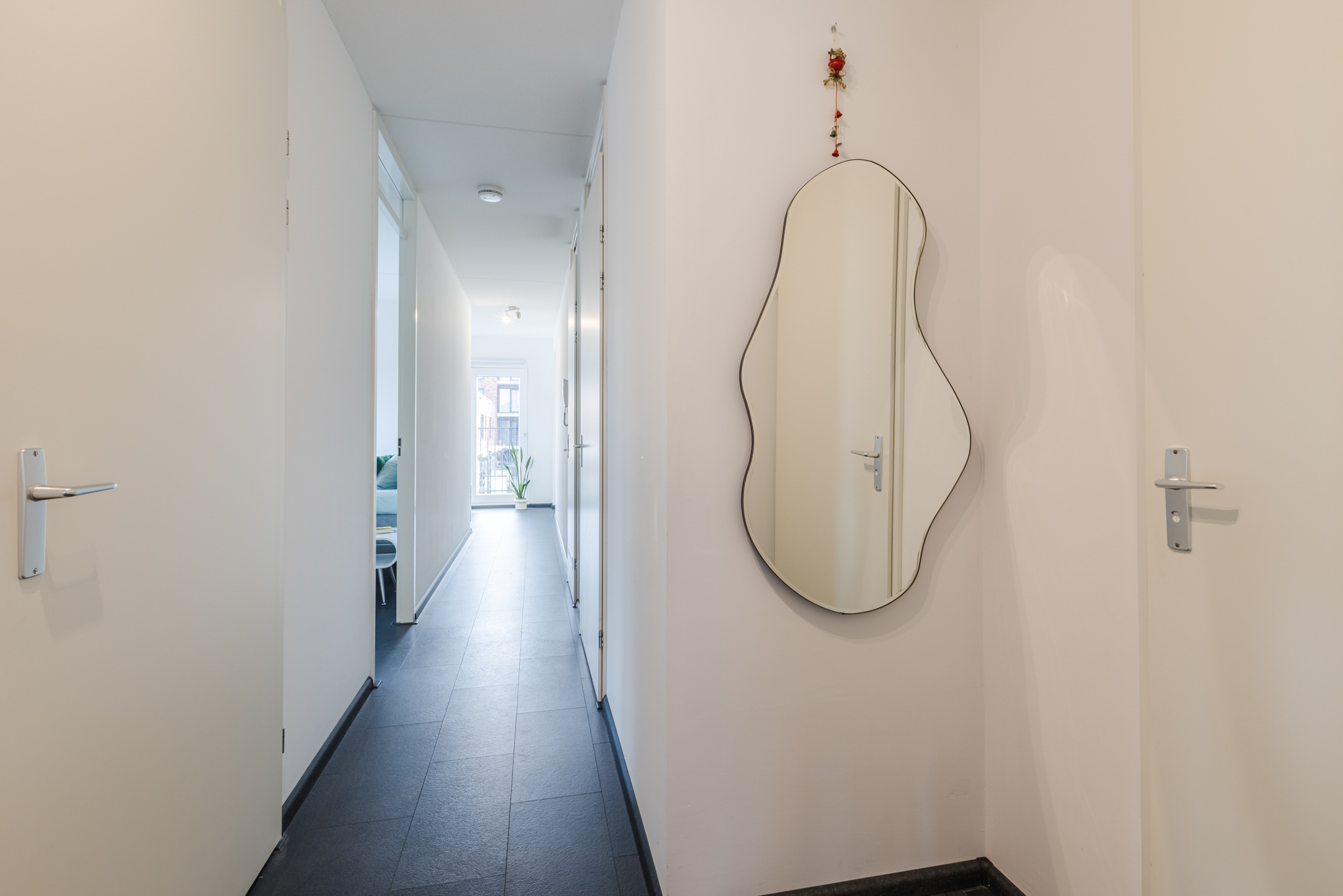 Kenmerkend voor deze woning is de prettige lichtinval dankzij de ligging op de hoek van het complex en de grote raampartijen. De woonkamer vormt samen met de open keuken een ruimtelijk en gezellig geheel waar koken, wonen en samenkomen moeiteloos samengaan. Met een ruime master bedroom, een multifunctionele tweede kamer, een balkon met vrij uitzicht, een inpandige berging én een eigen parkeerplaats in de parkeergarage biedt deze woning veel comfort en gemak.