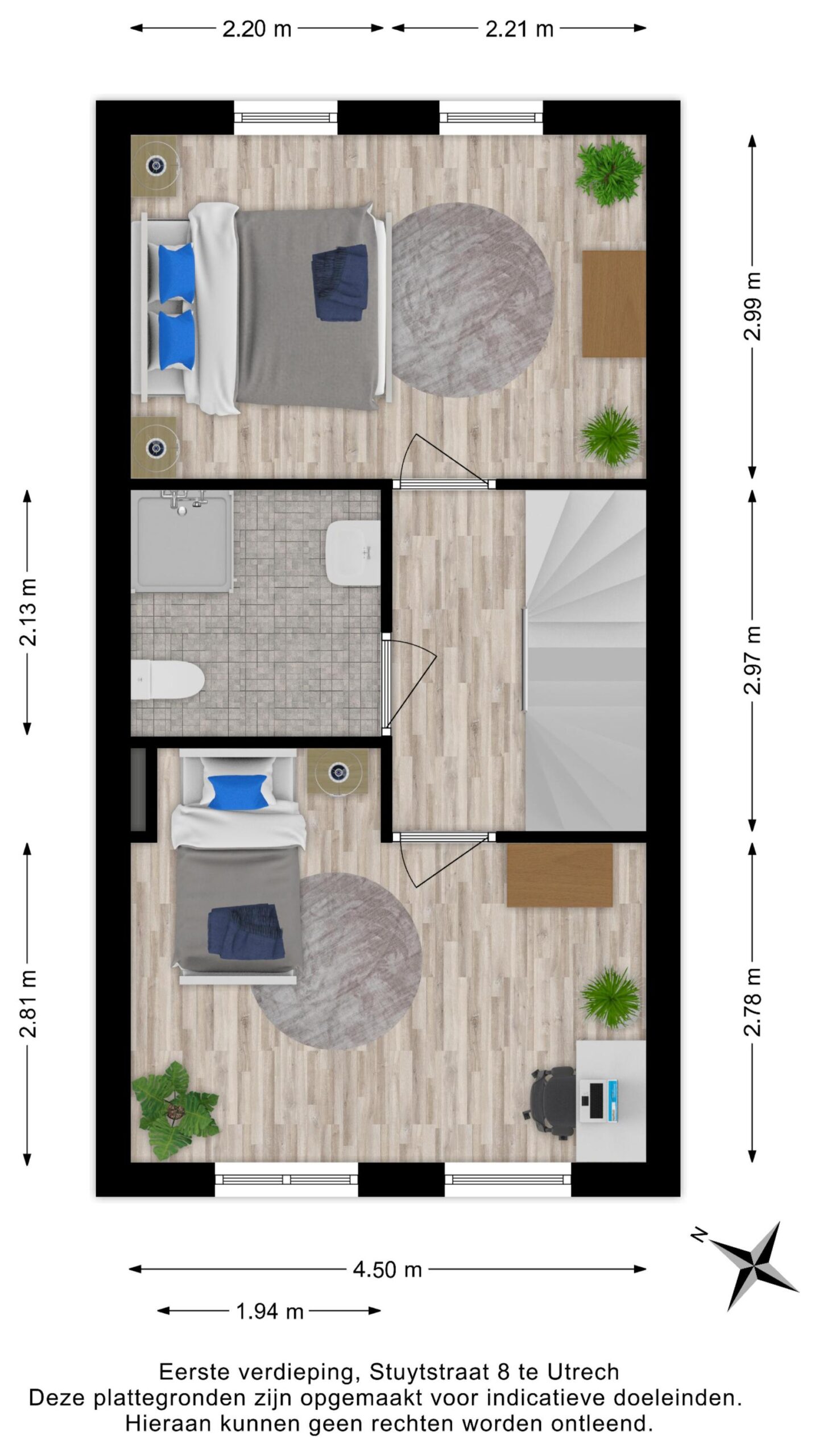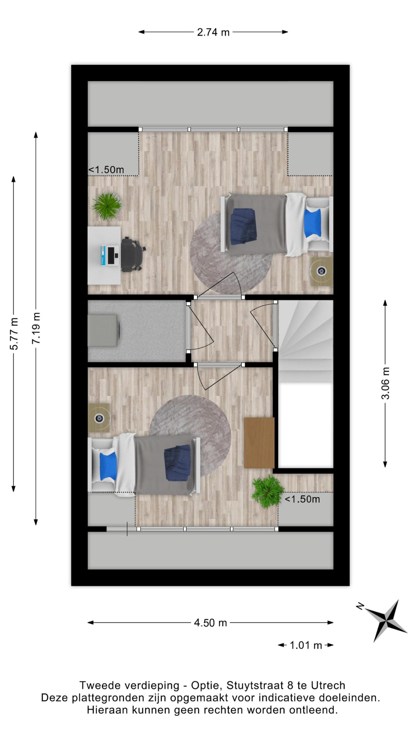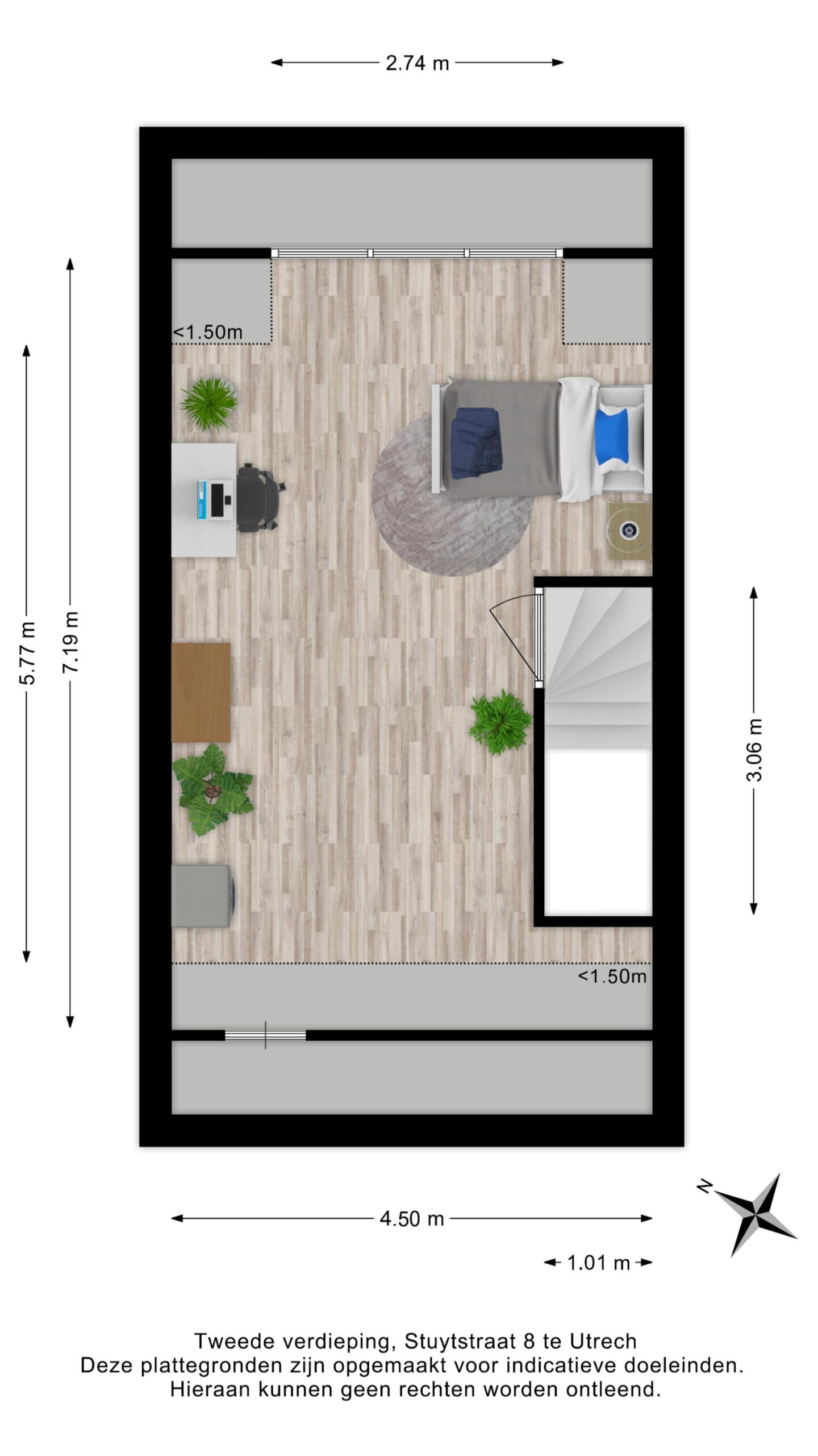Eerste verdieping (ca. 8,74 x 4,50m):
