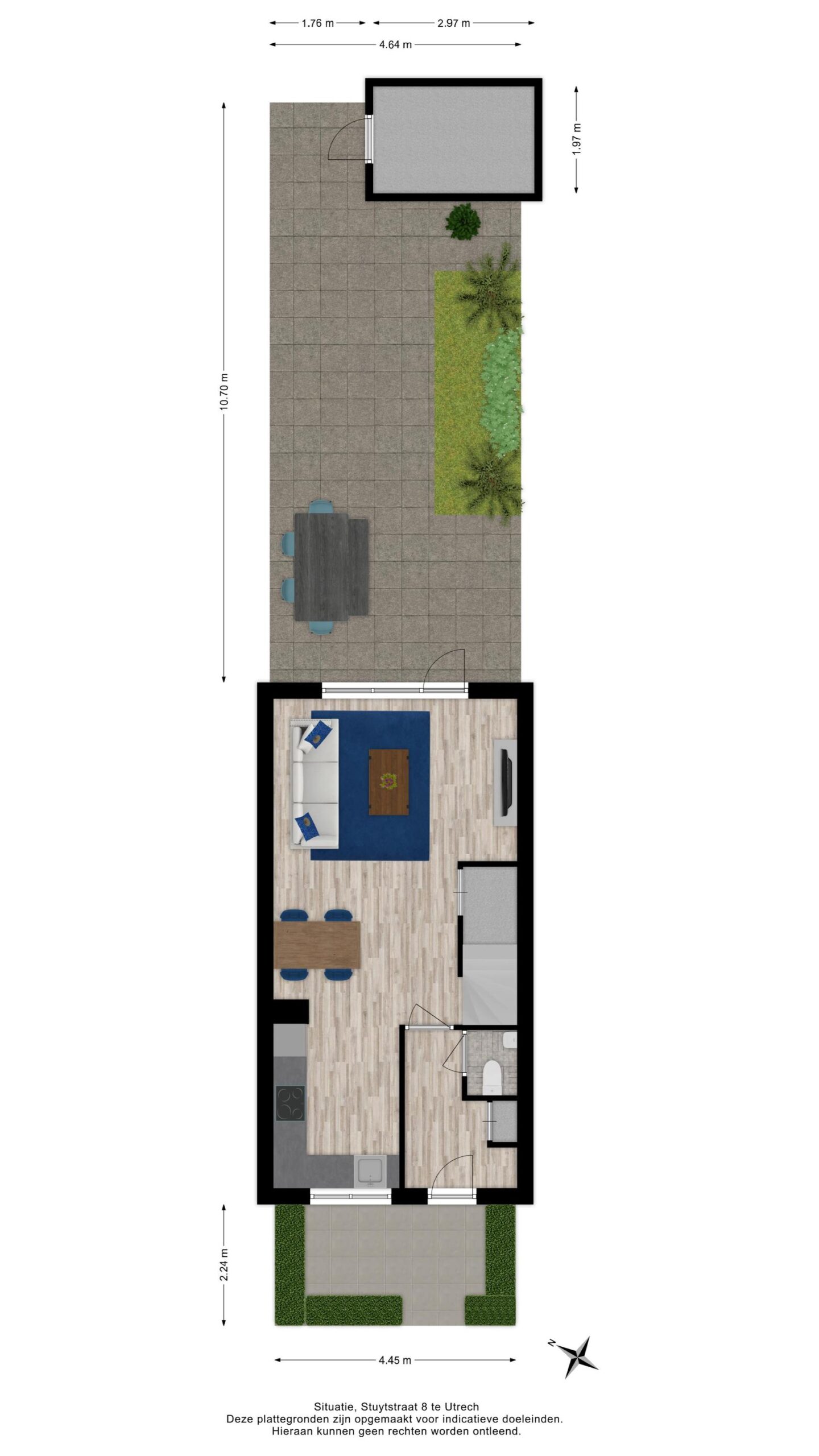 Tuin (ca. 10,70 x 4,64 m inclusief berging):