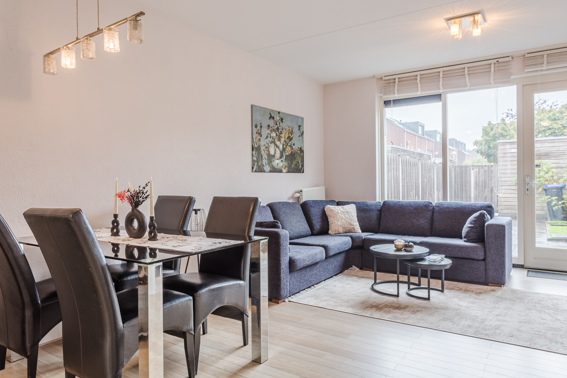 Aan de achterzijde van de woning is de lichte en tuingerichte woonkamer gelegen. Er is tevens ruimte om uit te bouwen tot 2 meter. De woonkamer is ruim van opzet en biedt voldoende plek voor het creëren van een gezellige zithoek en plaatsen van een grote 6-persoons eettafel. Een heerlijke plek om te genieten van gezellige etentjes met familie of vrienden!