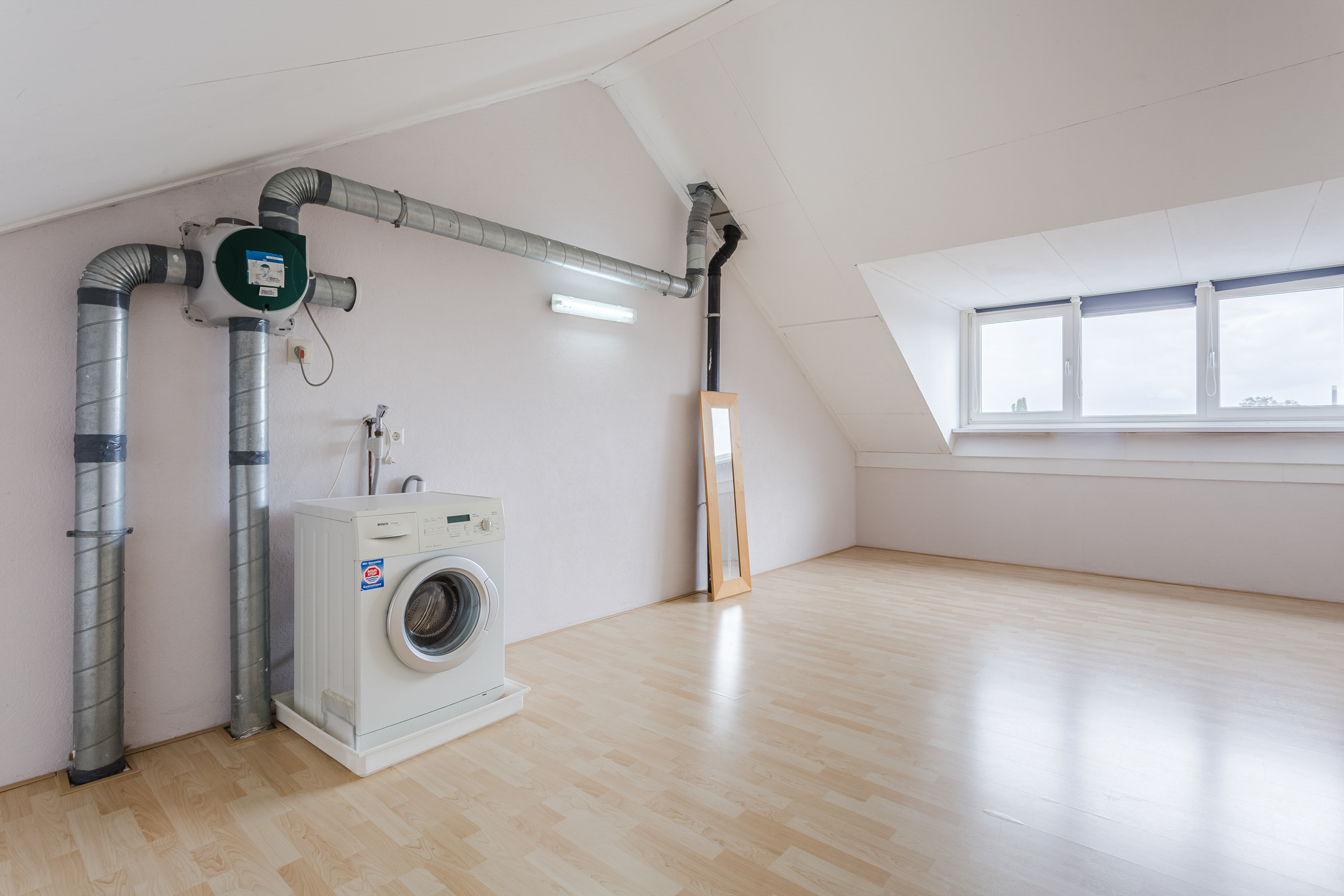 Op de tweede verdieping tref je een ruime open woonlaag, waar ook was-/droogopstelling is gesitueerd. Door de plaatsing van een grote dakkapel aan de achterzijde van de woning, beschikt deze ruimte over veel daglichttoetreding.