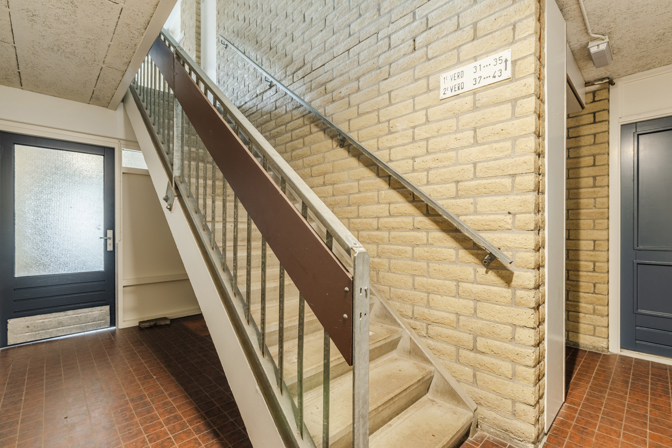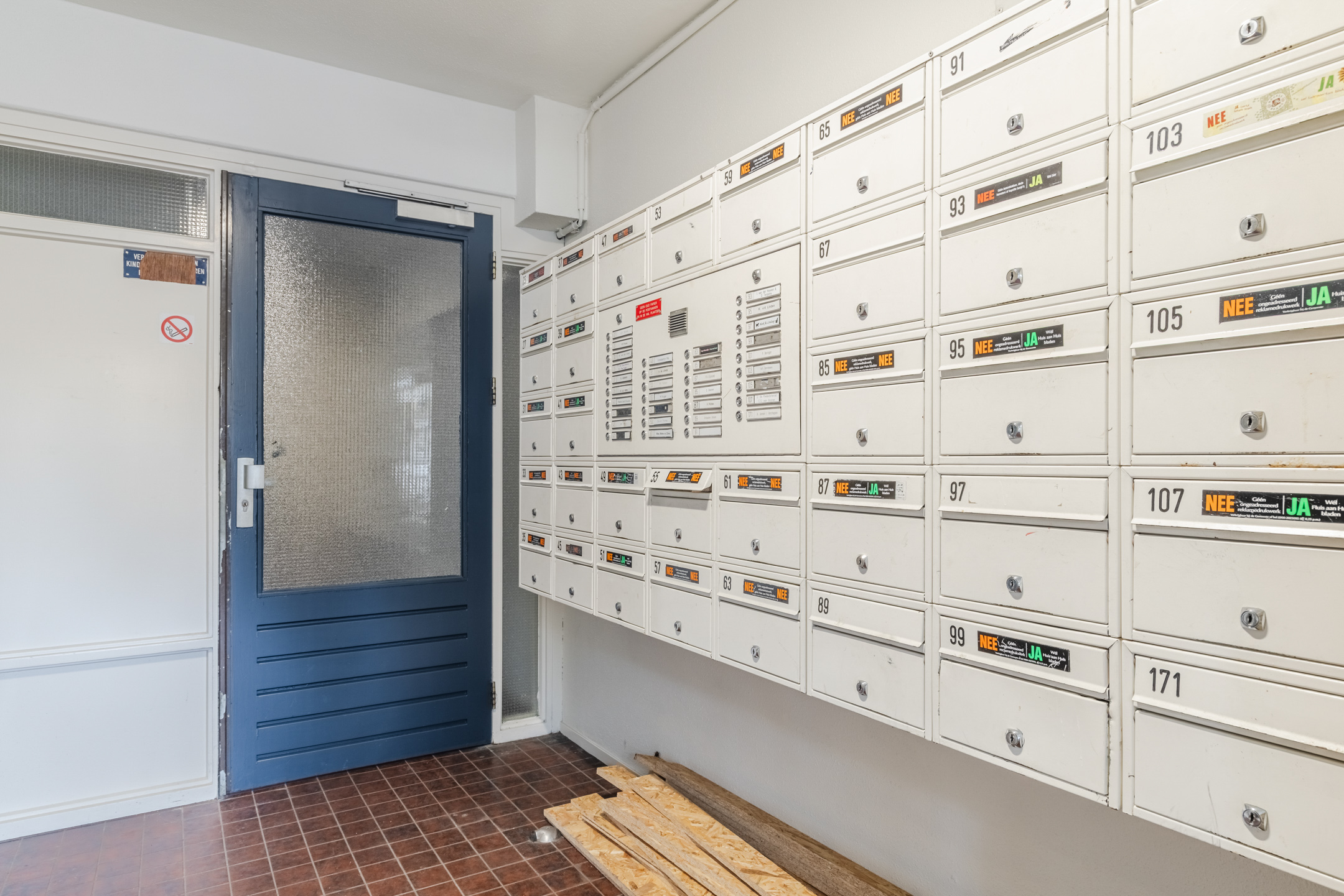Entree, bellentableau met brievenbussen, centrale hal met toegang tot de liftinstallatie. Met de lift bereik je de derde verdieping van het complex. Vanaf de galerij is de vierde verdieping middels een trap te bereiken.