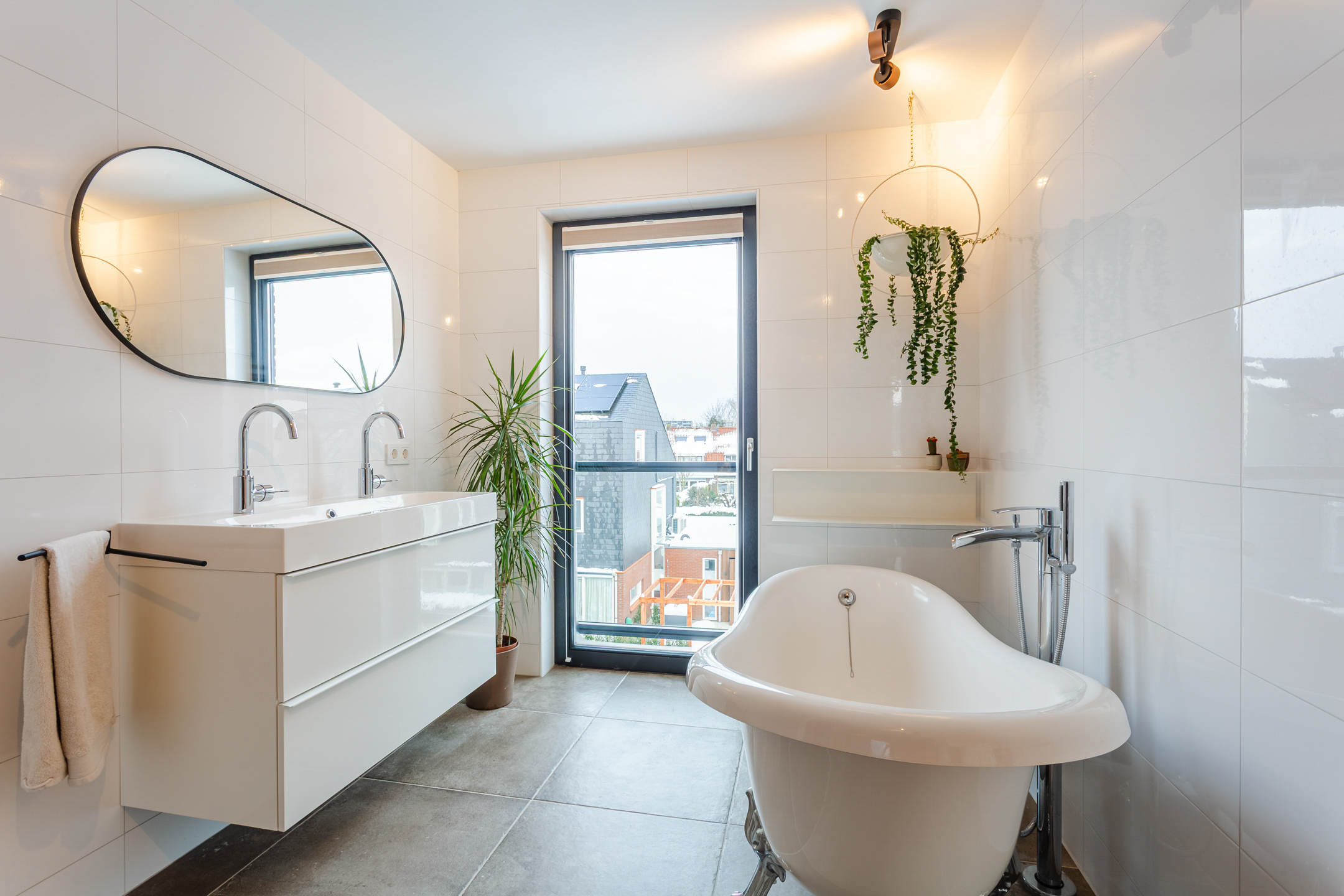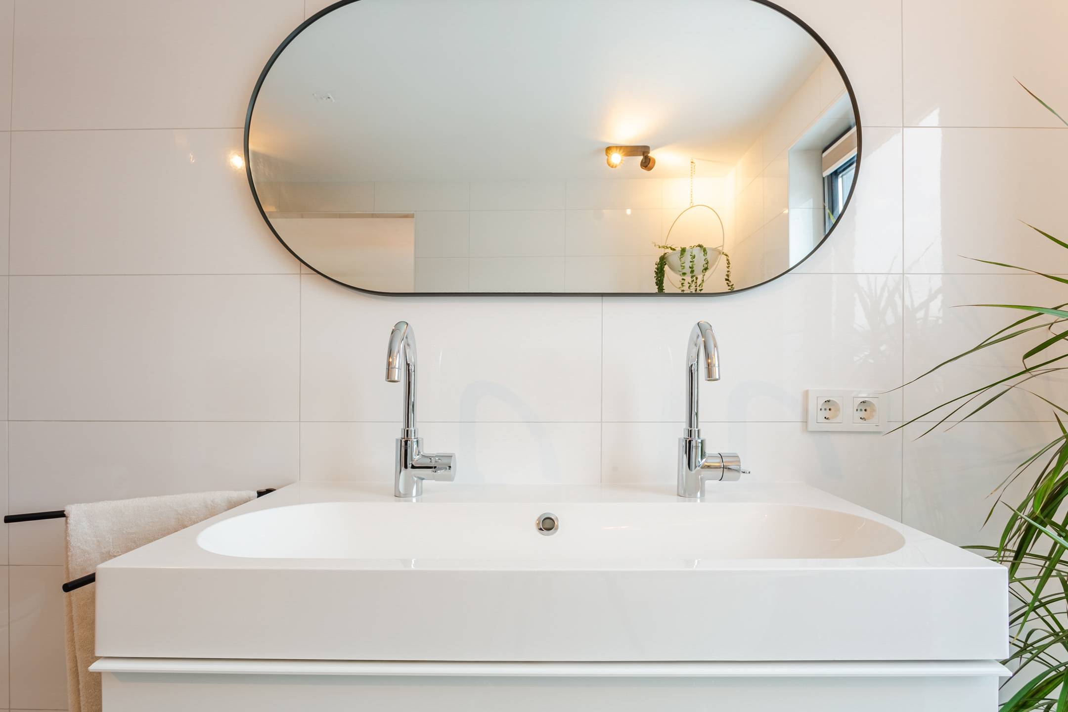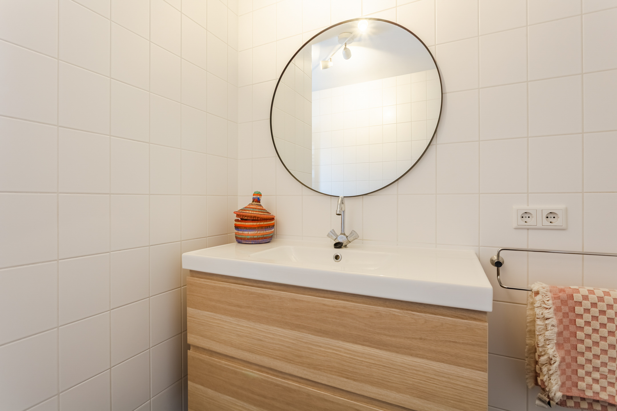 De goed verzorgde en complete badkamer is uitgevoerd in een tijdloze witte kleurstelling en beschikt over een inloopdouche, een tweede toilet en een wastafelmeubel met kraan, ruime lades en een mooie ronde spiegel. Het kiepraam zorgt voor veel daglicht en biedt, naast de aanwezige mechanische ventilatie, de mogelijkheid tot extra ventilatie.