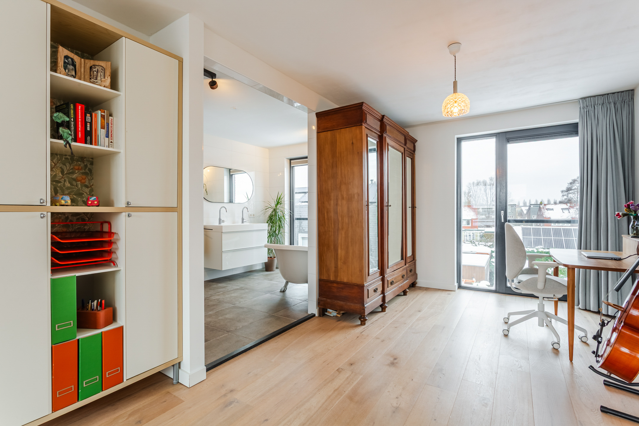 De mogelijkheden zijn echter veelzijdig: de ruimte kan bijvoorbeeld worden ingericht als aanleunwoning voor ouders, een eigen plek voor een tienerkind dat wat langer thuis blijft wonen, als hobbyruimte of als werkruimte. Op de eerste verdieping is een wateraansluiting en afvoer voorbereid.