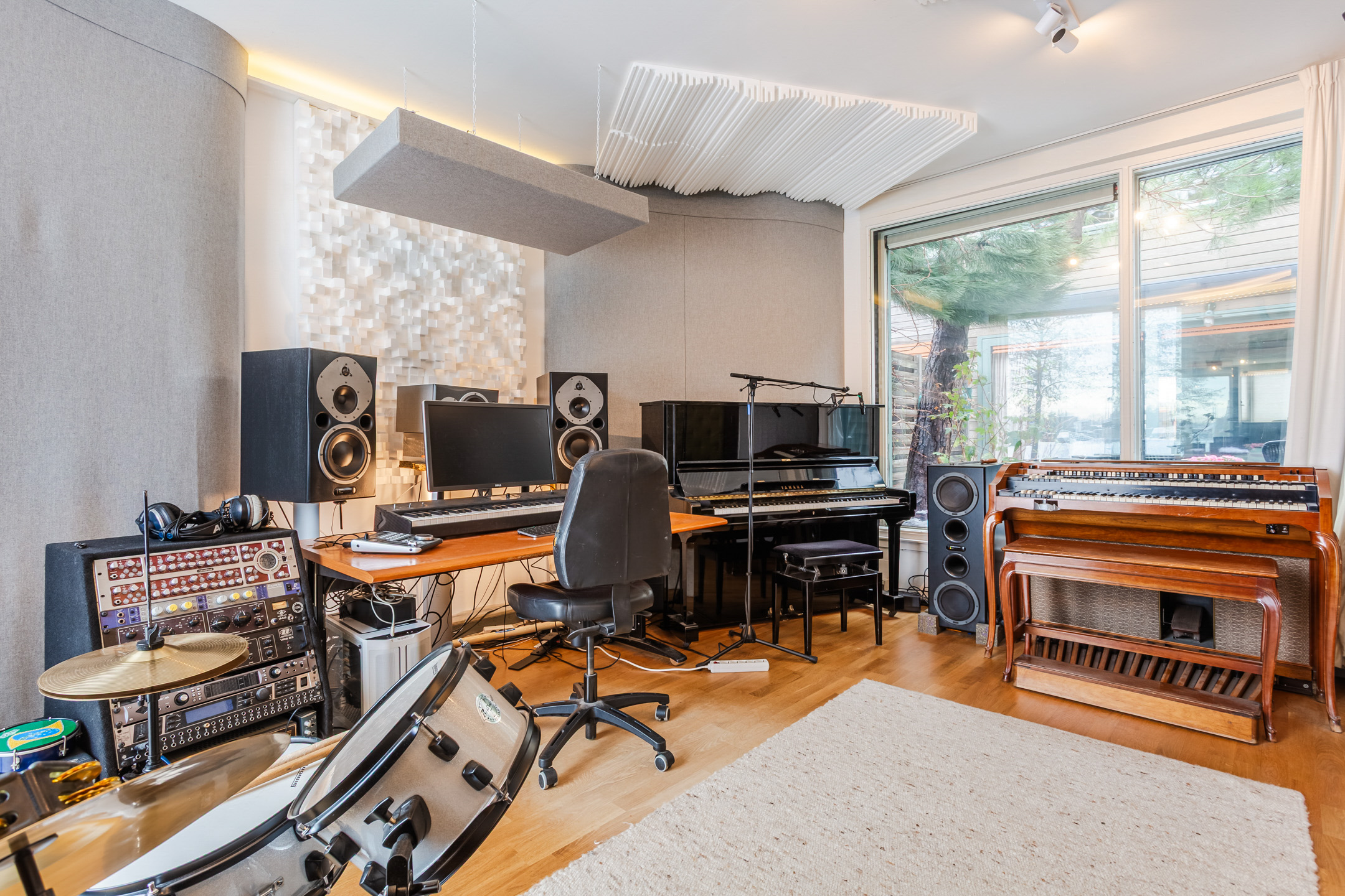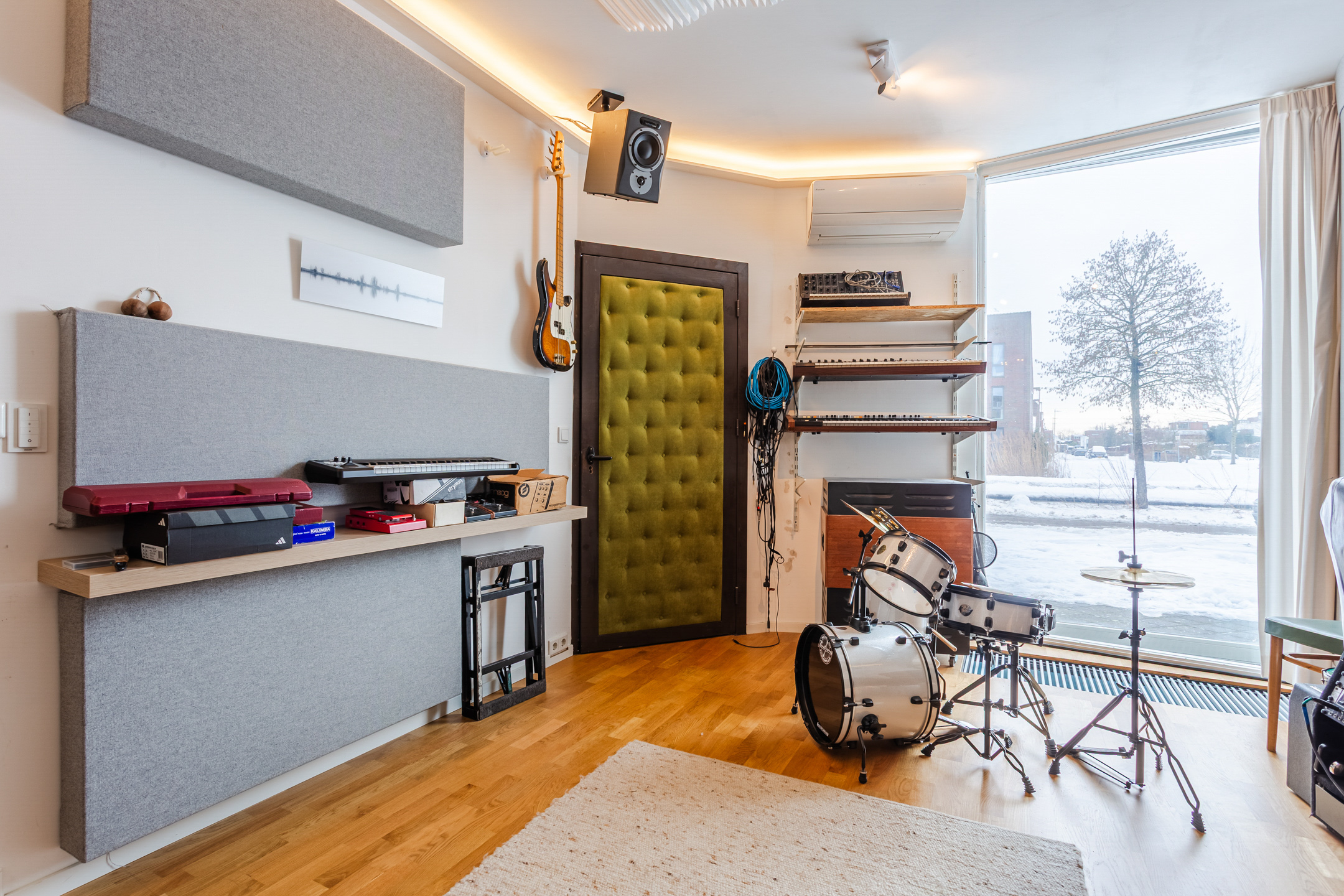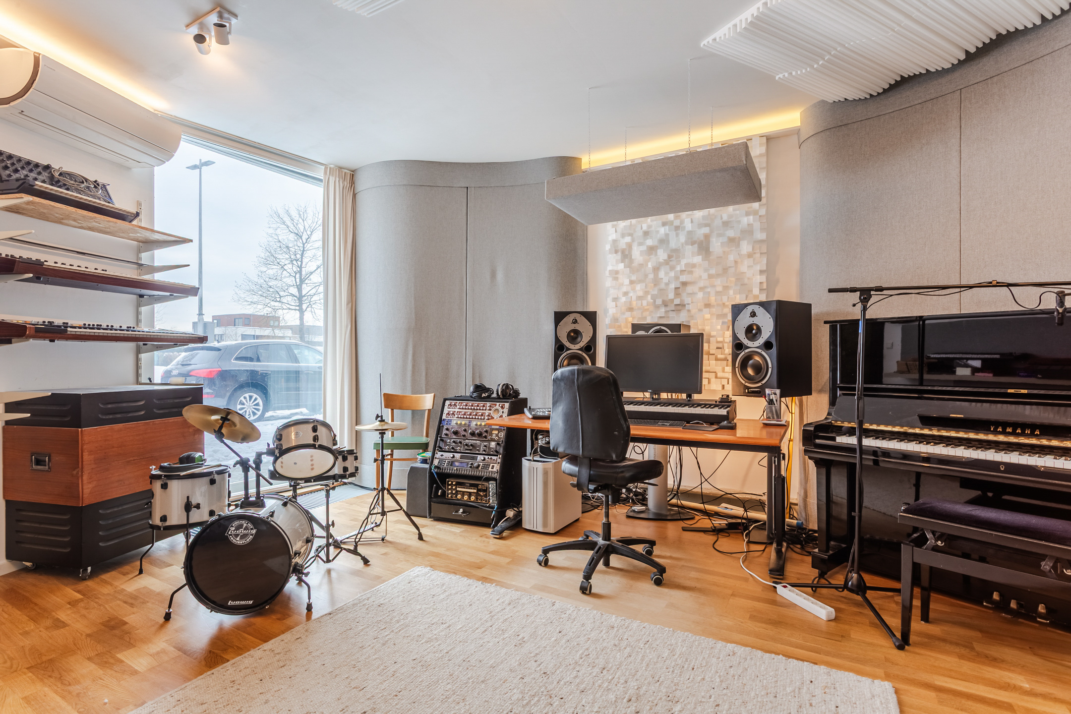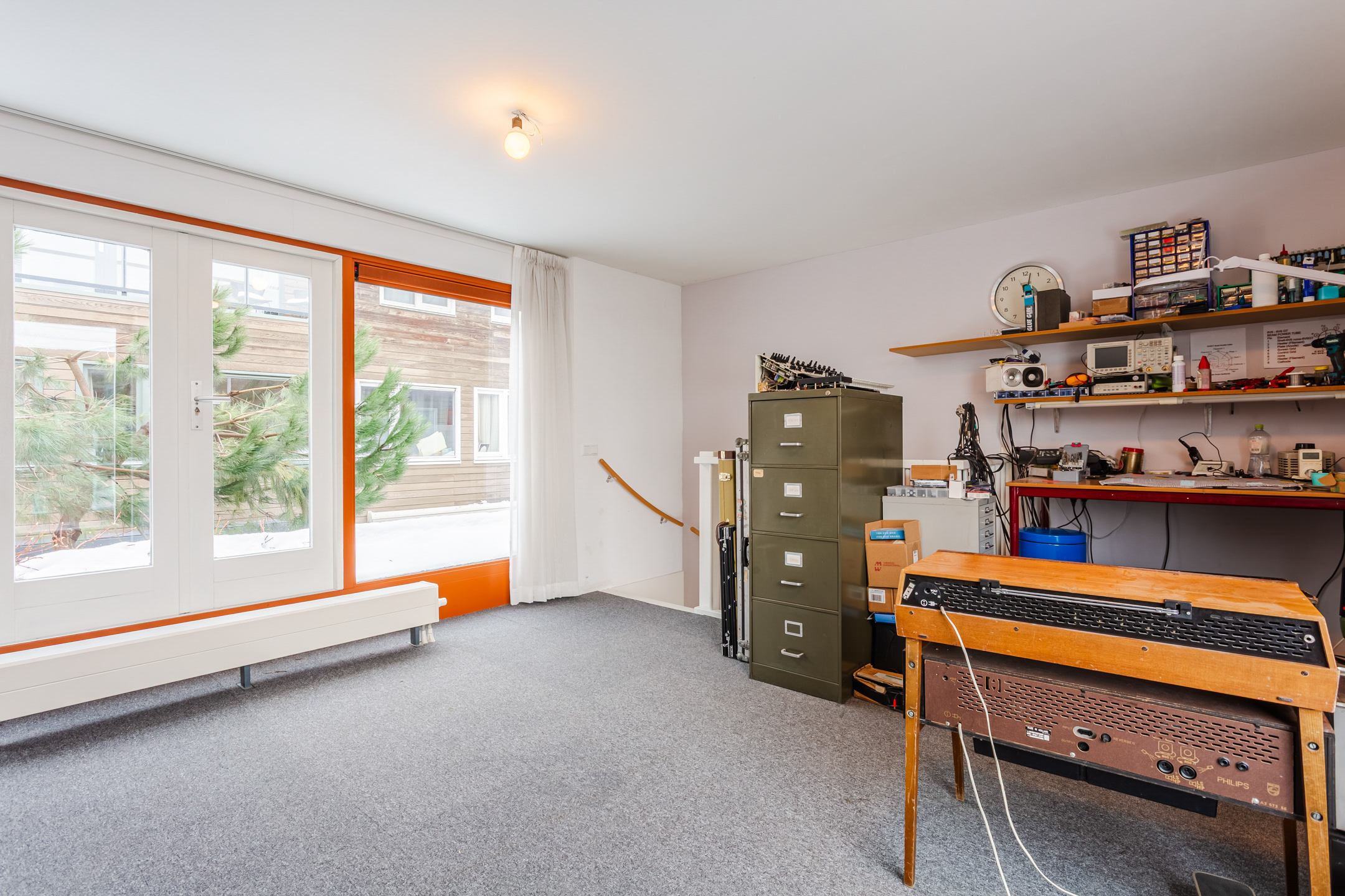 Achter de woning bevindt zich een praktische praktijk- of woonruimte, die zowel via de voor- als achterzijde toegankelijk is. Dit betekent dat deze (mogelijke) praktijkruimte beschikt over een eigen adres en ingang, wat ideaal is voor het ontvangen van klanten of cliënten. De huidige bewoners hebben de ruimte ingericht als muziekstudio op de begane grond en gebruiken de eerste verdieping als bergruimte.