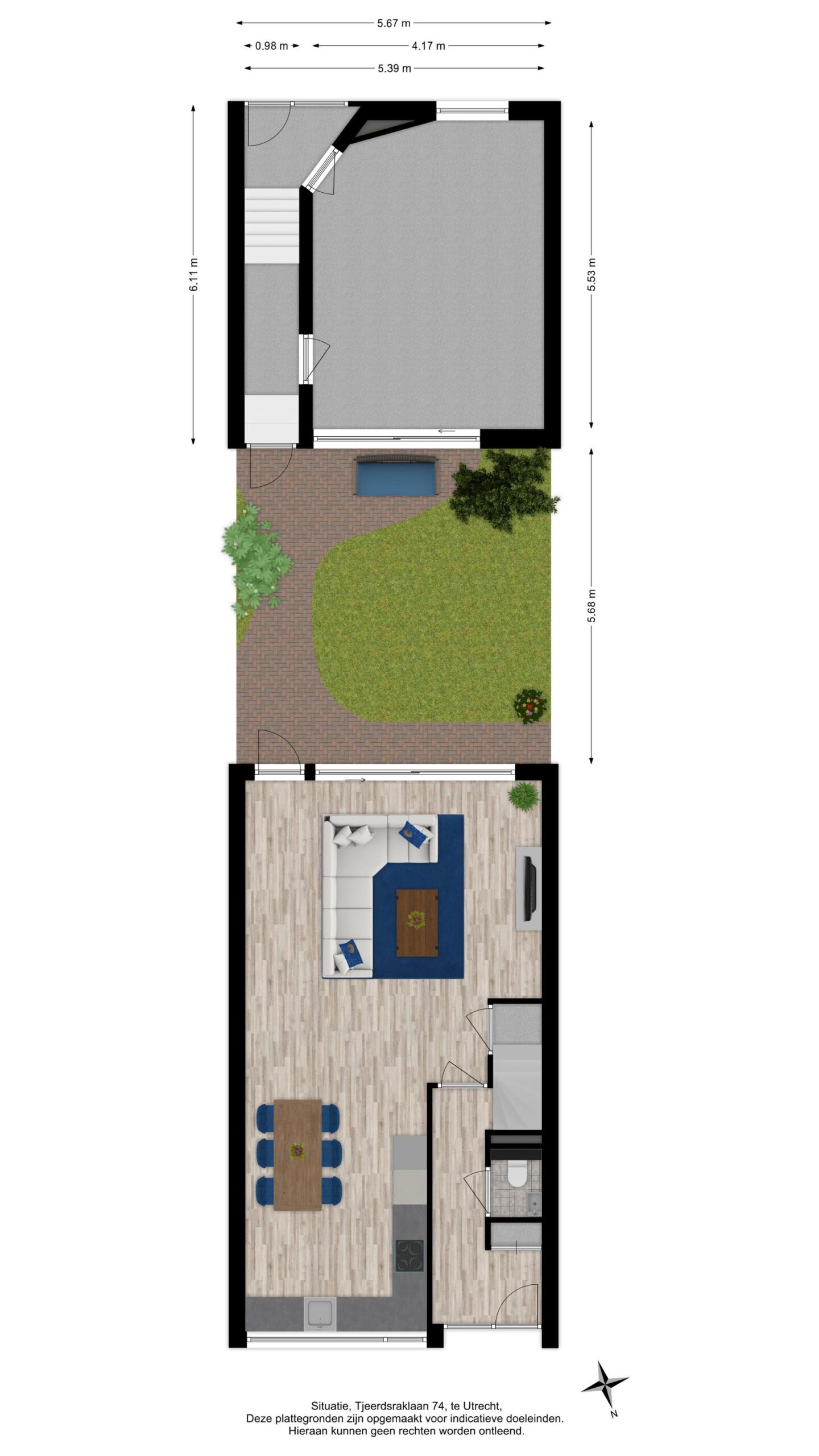 De knusse tuin is gunstig gelegen op het zuiden. Via de tuin is tevens de extra werk-, sport- of hobbyruimte bereikbaar, wat deze buitenruimte extra praktisch maakt. Naast de zonnige zuid-ligging zorgt de boom voor een prettige hoeveelheid natuurlijke schaduw, waardoor je ook op warme zomerdagen comfortabel buiten kunt zitten.