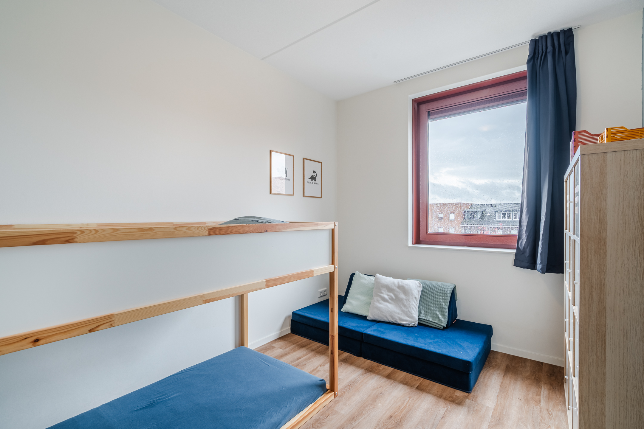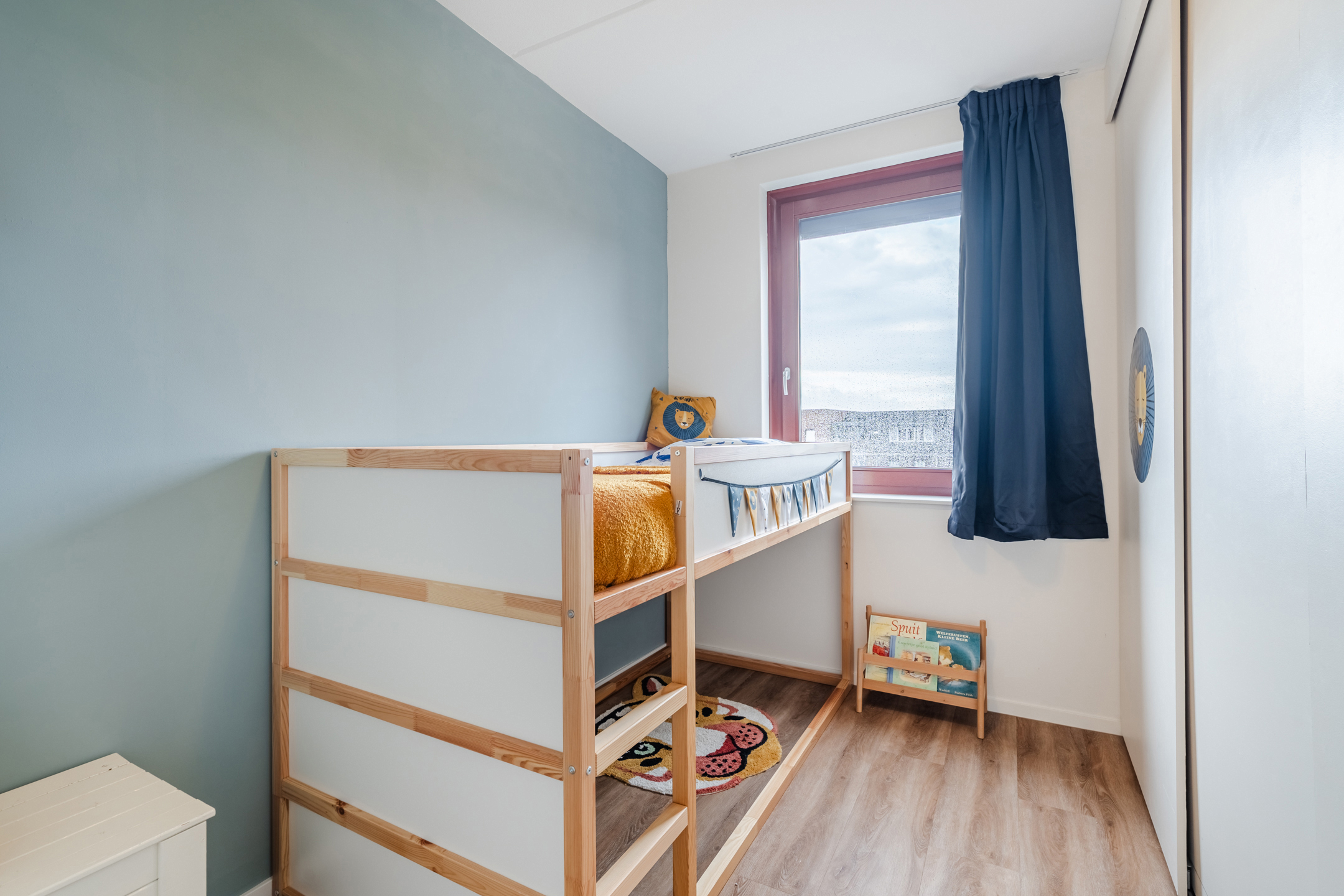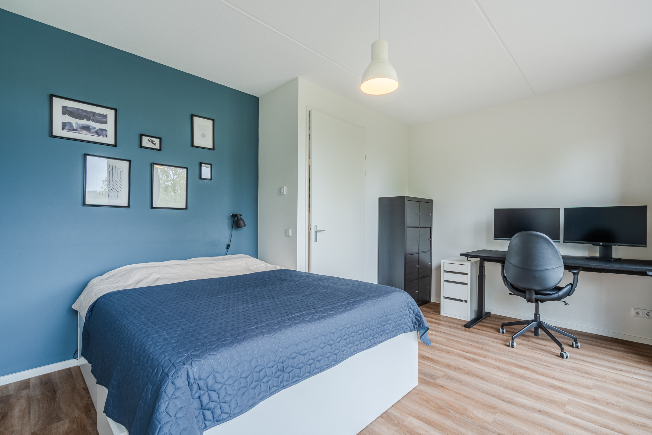 Op deze verdieping bevinden zich drie volwaardige en multifunctionele (slaap)kamers en de technische ruimte. De woning brede slaapkamer aan de voorzijde van de woning beschikt over een tweetal grote raampartijen en heeft een riant oppervlak van ca. 18 m2. Aan de achterzijde is een kamer van 19 m2 gesplitst in 2 afzonderlijke slaapkamers. De achterste kamer van ca. 9 m2 is bereikbaar via de technische ruimte. Bij de voorste kamer is een grote inbouwkast gemaakt over de gehele lengte. Het is mogelijk om van deze technische ruimte, middels een relatief kleine verbouwing, een badkamer te realiseren. Zie hiervoor de optieplattegrond en artist impression in de verkoopdocumentatie.