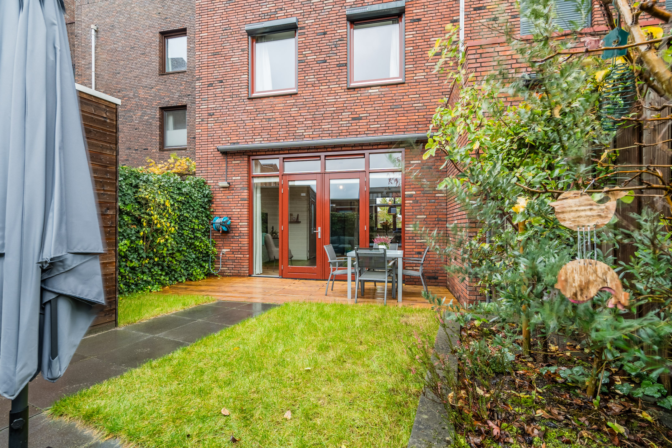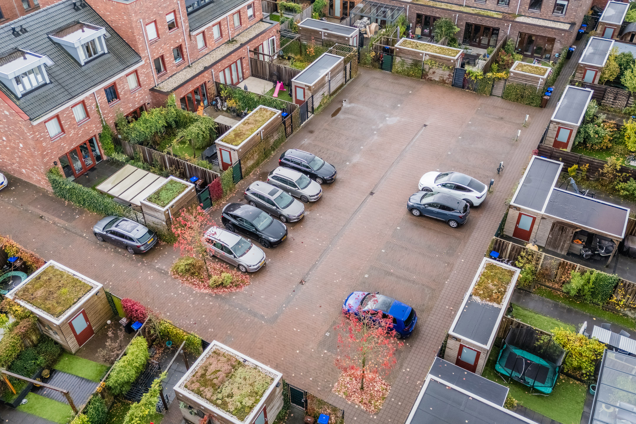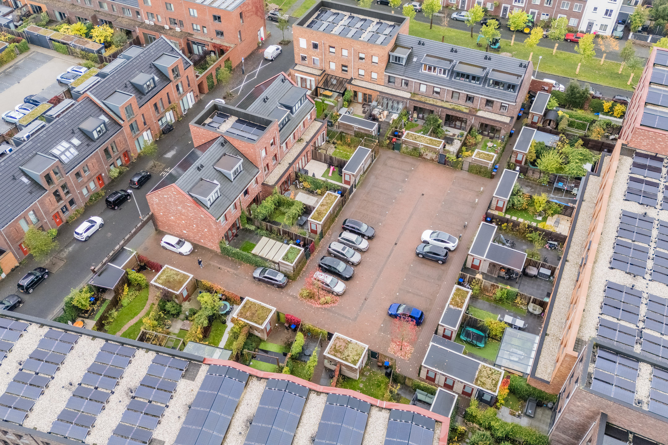 The well-designed layout contributes to the home’s pleasant and cozy atmosphere, with the open kitchen at the front and the living room at the rear. The sunny southwest-facing garden offers plenty of privacy and connects directly to the shared inner courtyard, where the private parking space is located. Thanks to excellent insulation, 20 (!) solar panels, and modern installations, this complete and energy-efficient family home boasts an A+++ energy label.