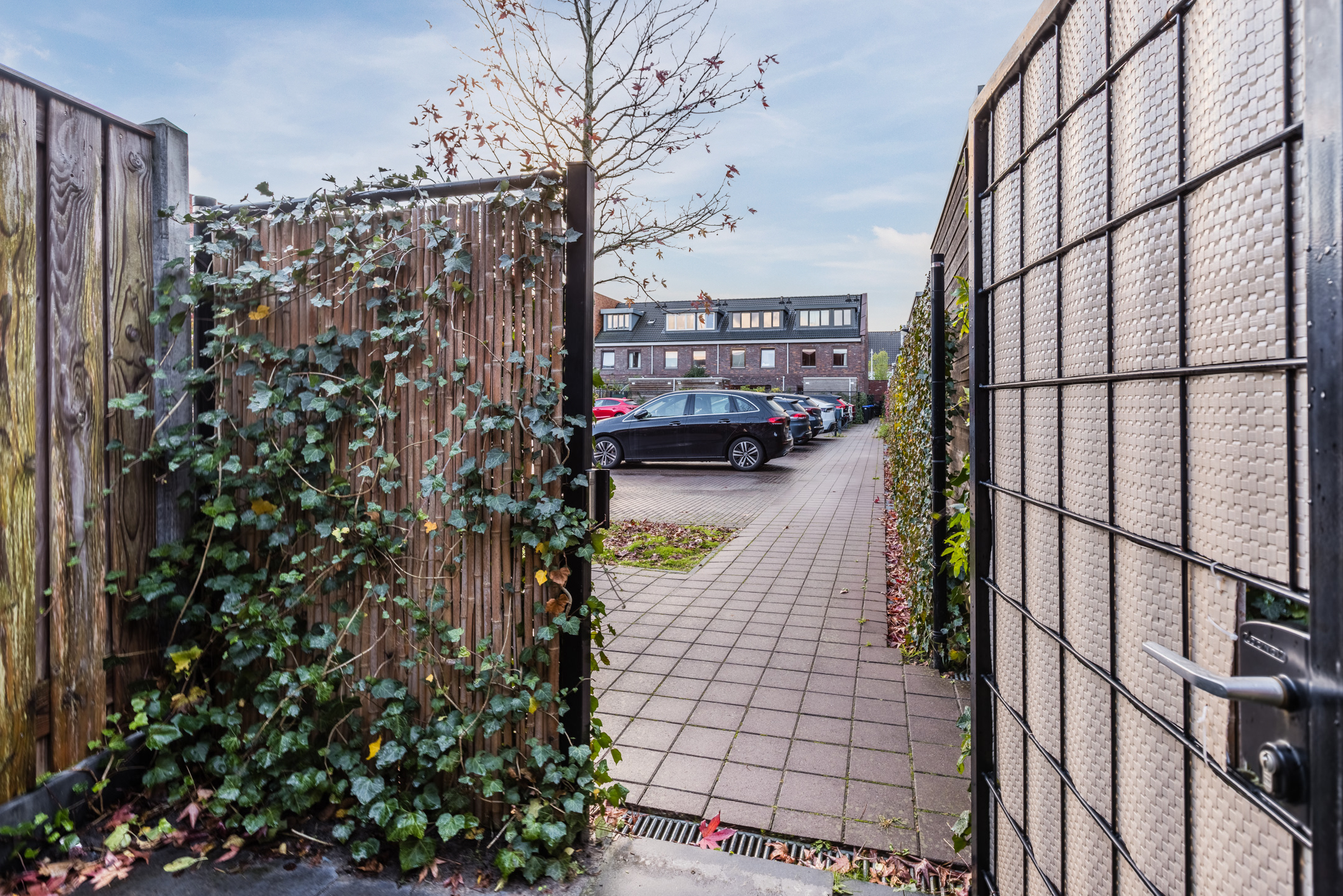 Middels de achterom is het mandelig binnenterrein te bereiken waar ook de privé parkeerplaats te vinden is.