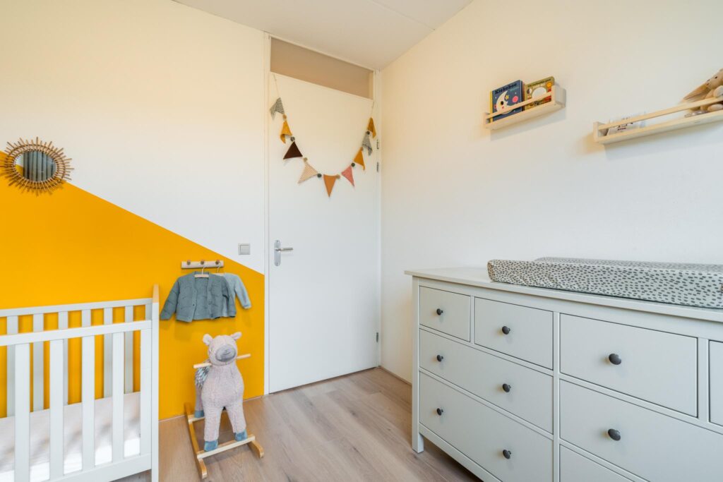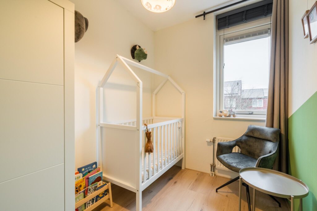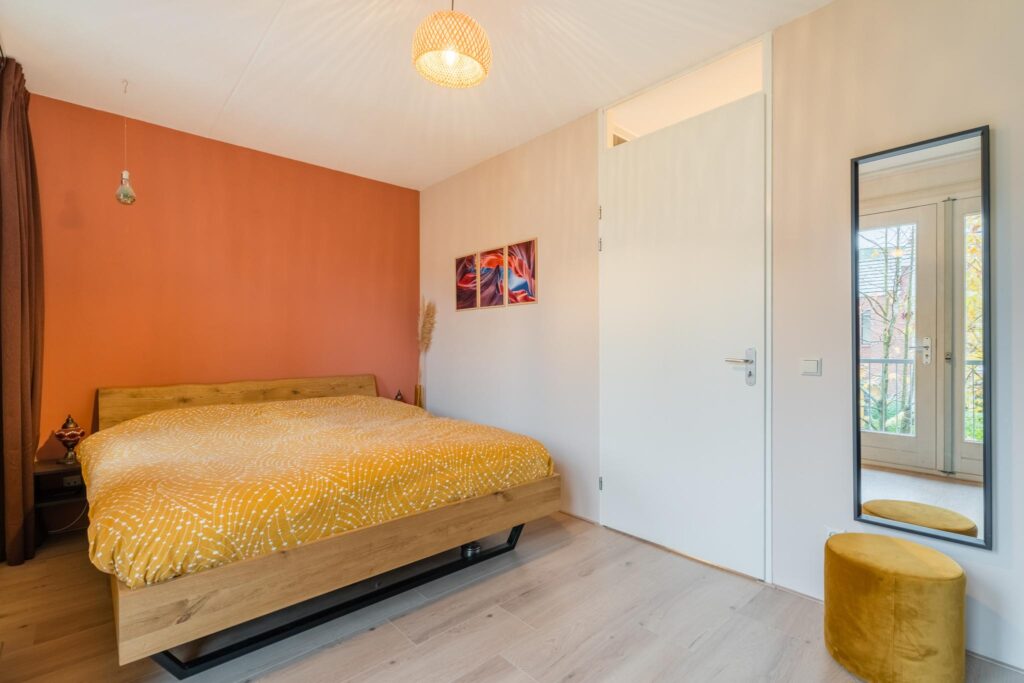 Aan de achterzijde van de woning zijn twee slaapkamers gesitueerd die uitkijken over de tuin. De eerste verdieping is afgewerkt met een nette laminaat vloer uit 2021, heeft strakke wanden en wordt verwarmd middels radiatoren.