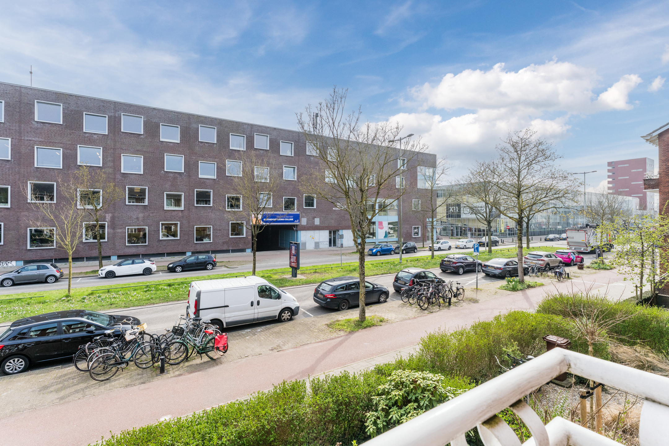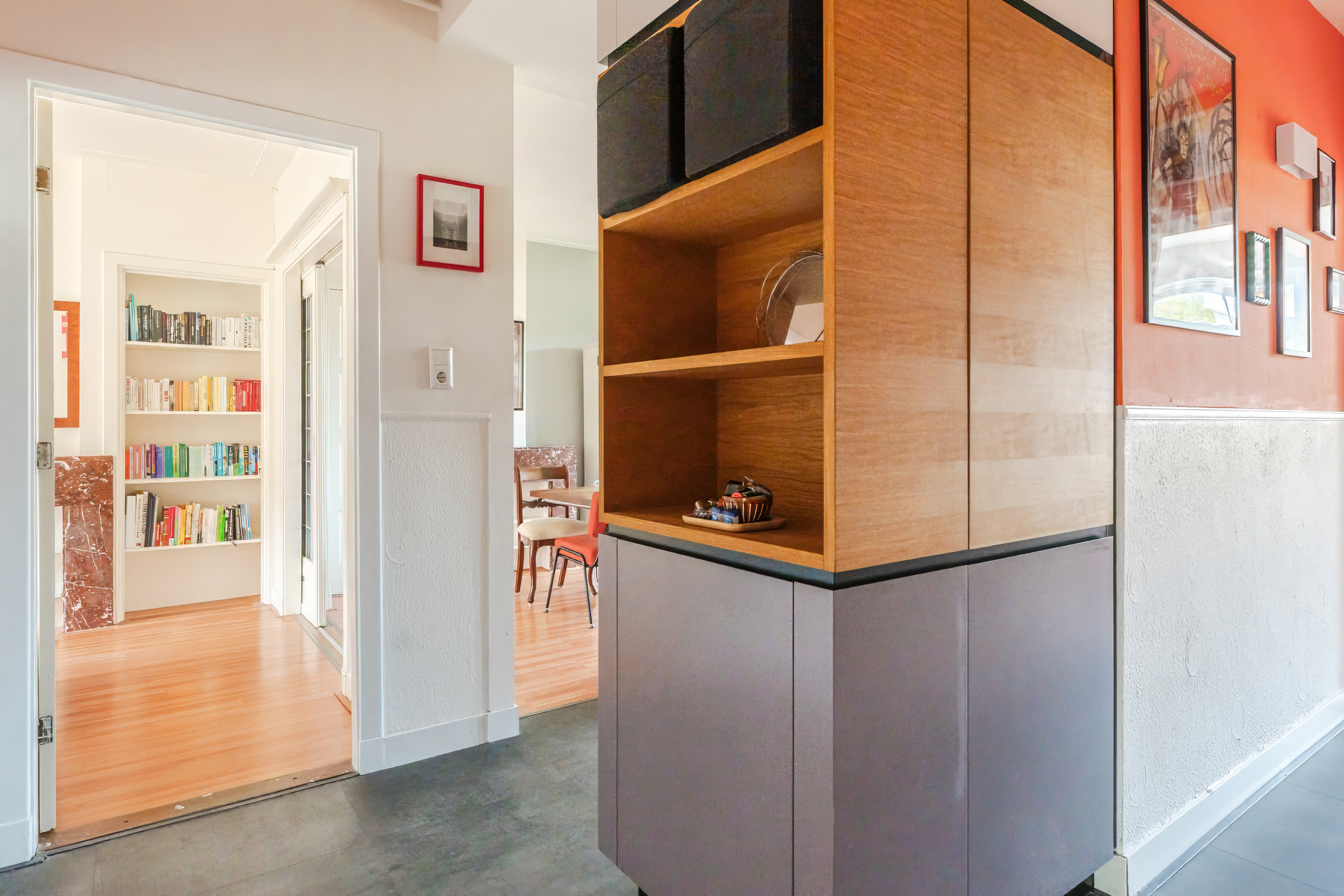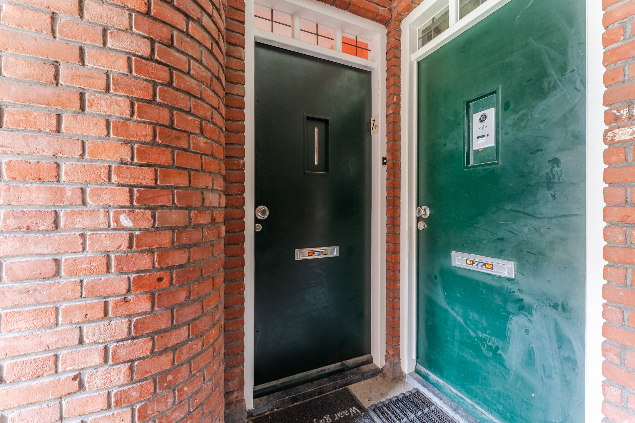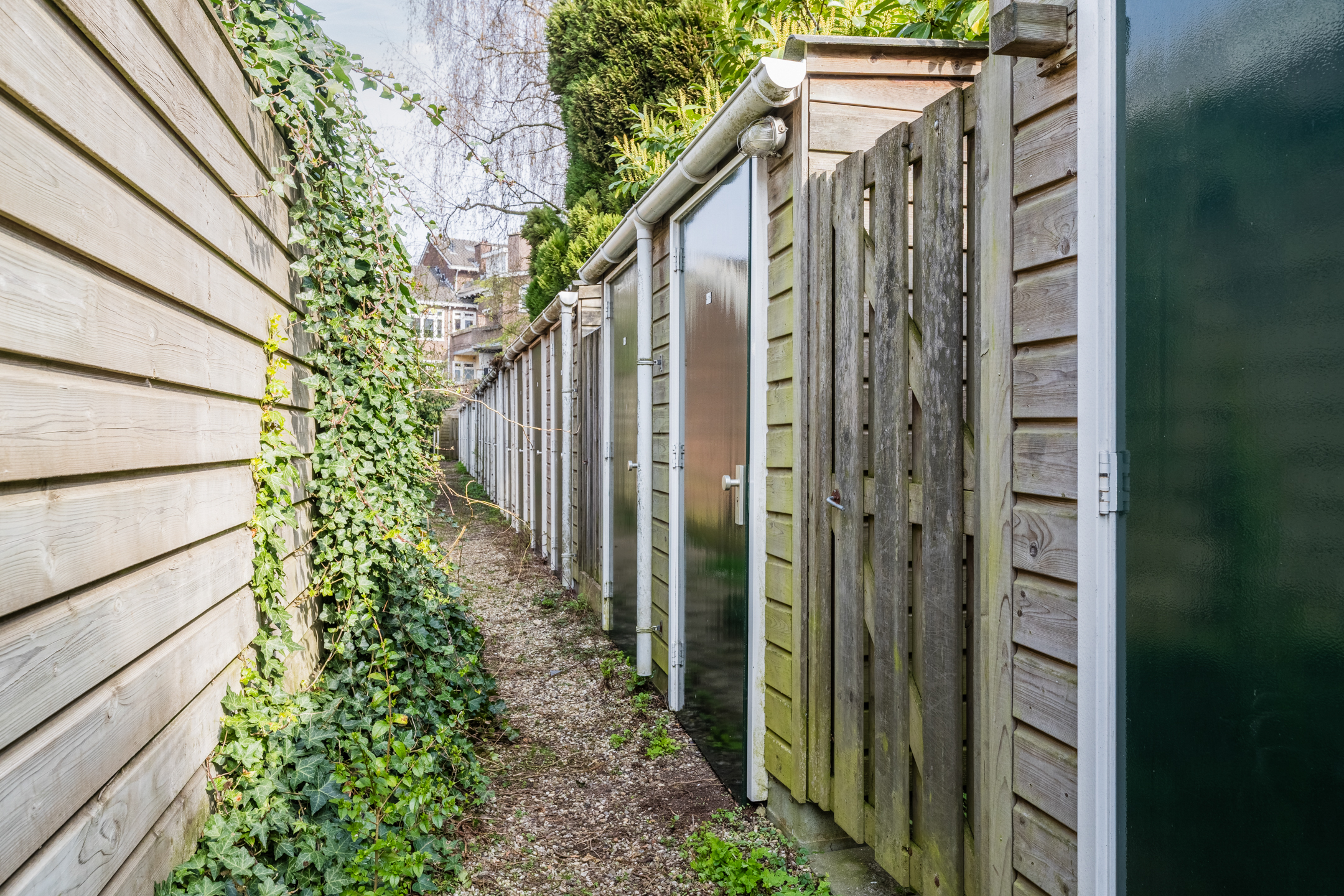 Aan beide zijden van de woning bevindt zich een charmant balkon, waardoor er altijd wel een fijn plekje in de zon te vinden is. Aan de achterzijde kijk je vrij weg over het groen van de omliggende tuinen en de hoge bomen, je merkt bijna niet dat je zo dicht bij de stad woont.