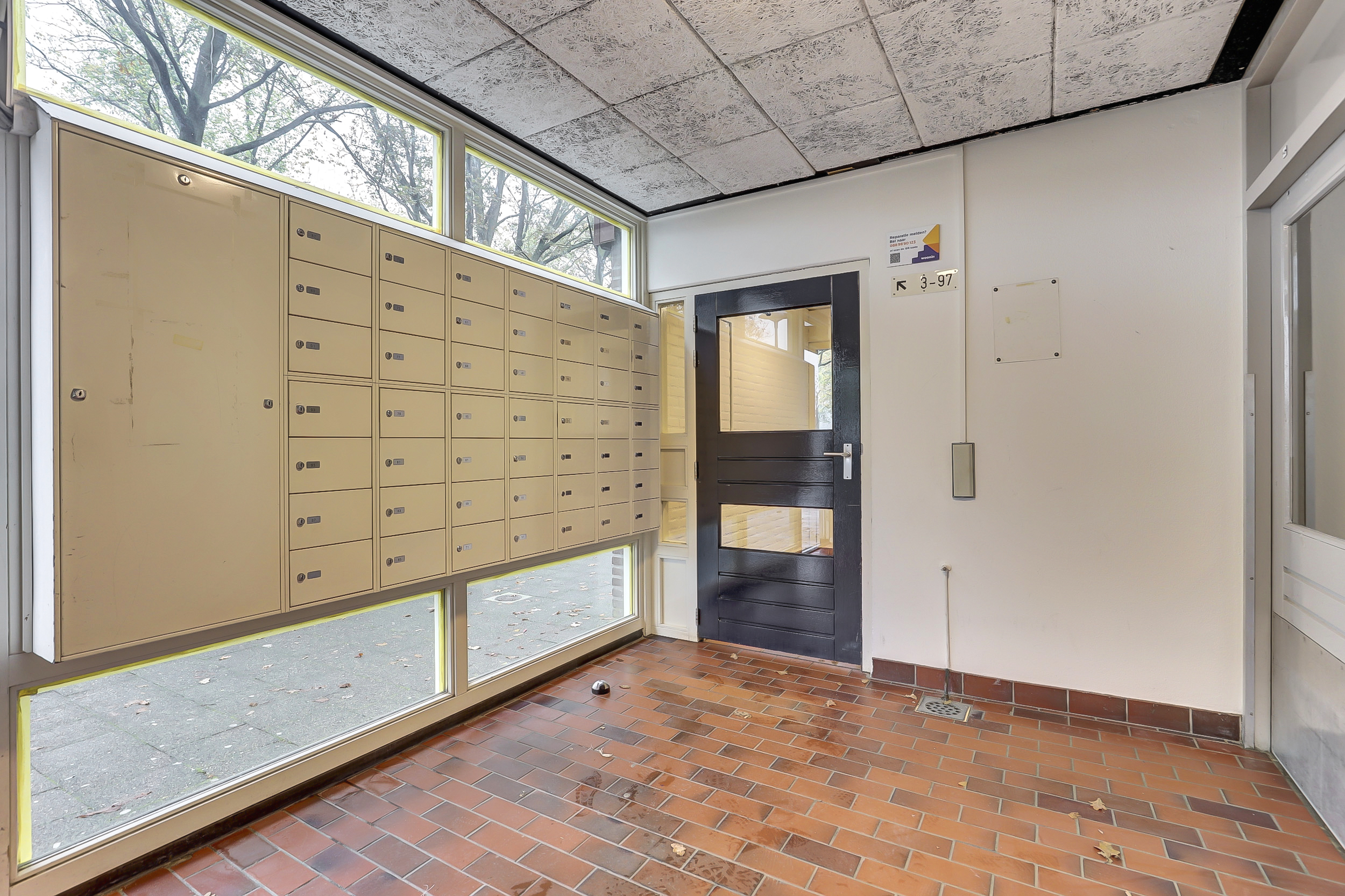 Op de begane grond bevindt zich de centrale hal met lift, bellentableau en postvakken. De woning is uitgerust met intercom systeem. De externe berging is via de voorzijde van het gebouw te bereiken.