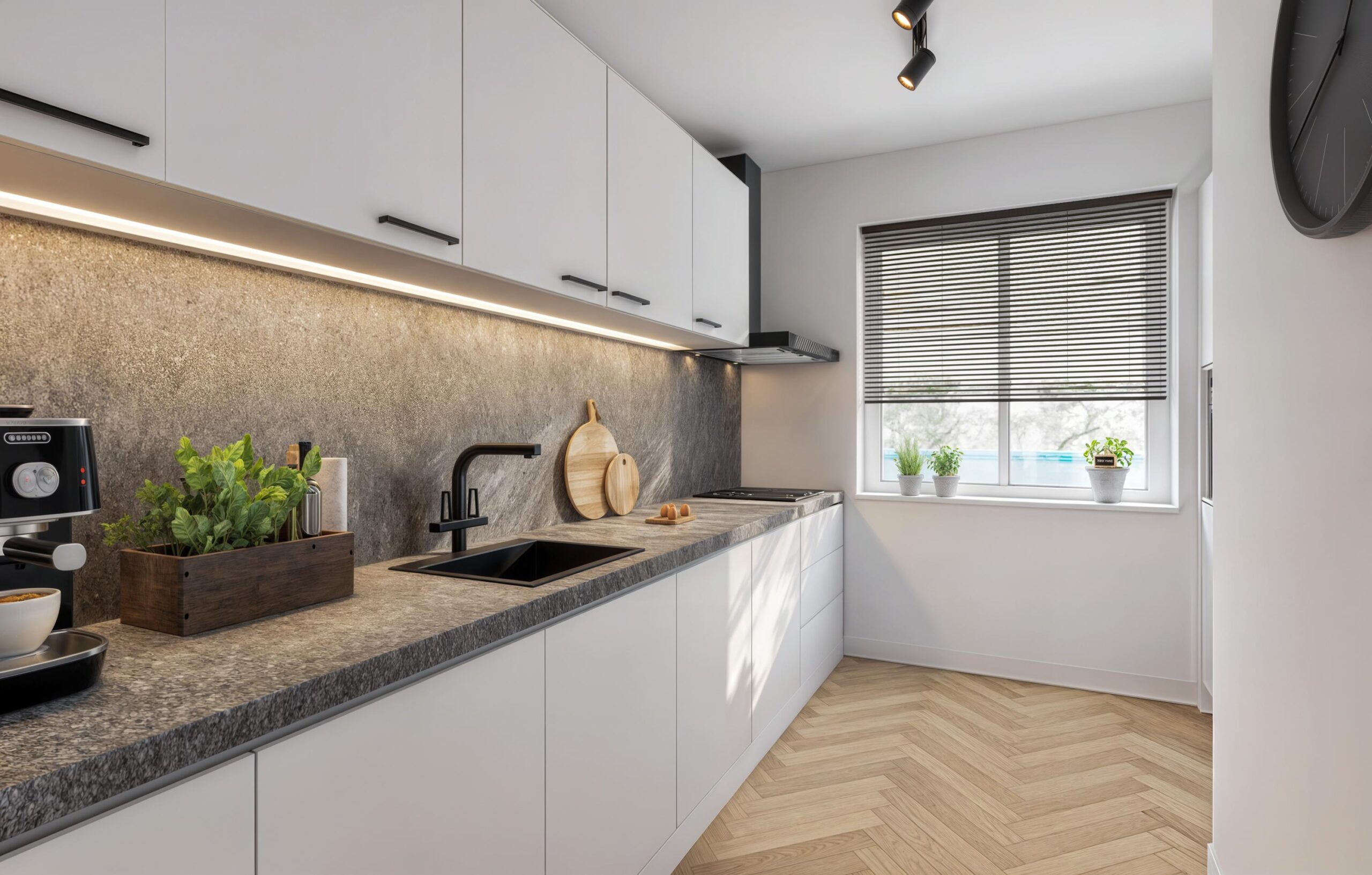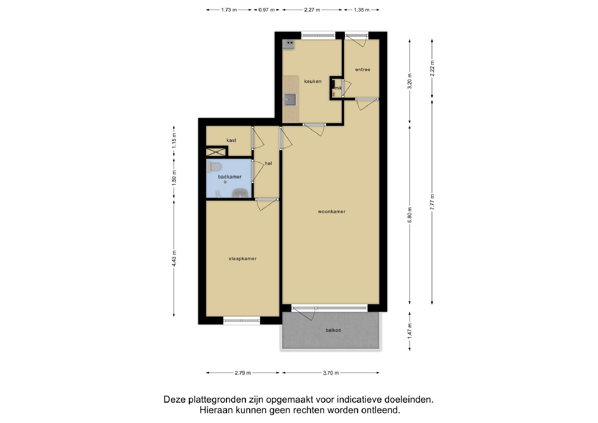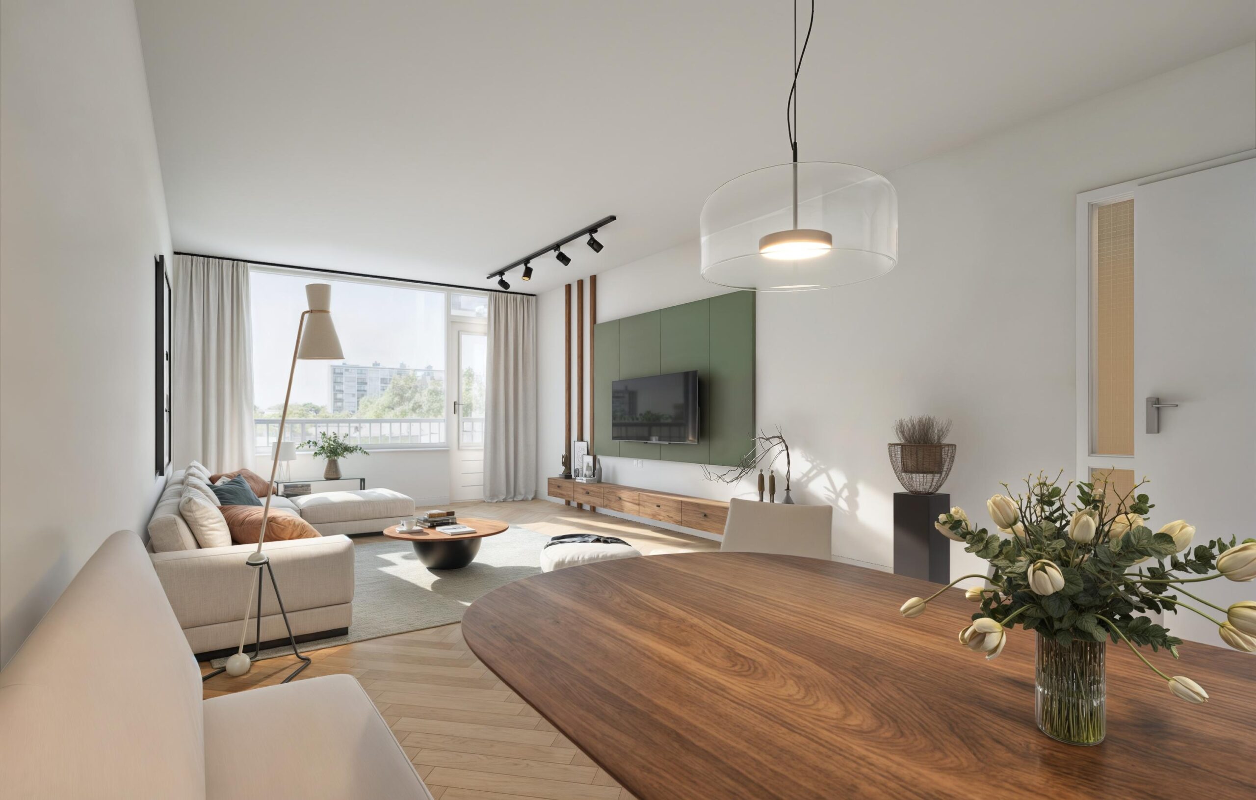 Bij binnenkomst tref je een ruime hal met toegang tot de meterkast en de lichte eet-/woonkamer. Aan de achterzijde is ruimte voor een gezellige zithoek met uitzicht op het balkon en de tuin, het balkon is via de woonkamer te bereiken. De dichte keuken aan de voorzijde is eenvoudig, maar biedt veel potentie voor modernisering. De artist impressions laten zien hoe je de woning kunt moderniseren.