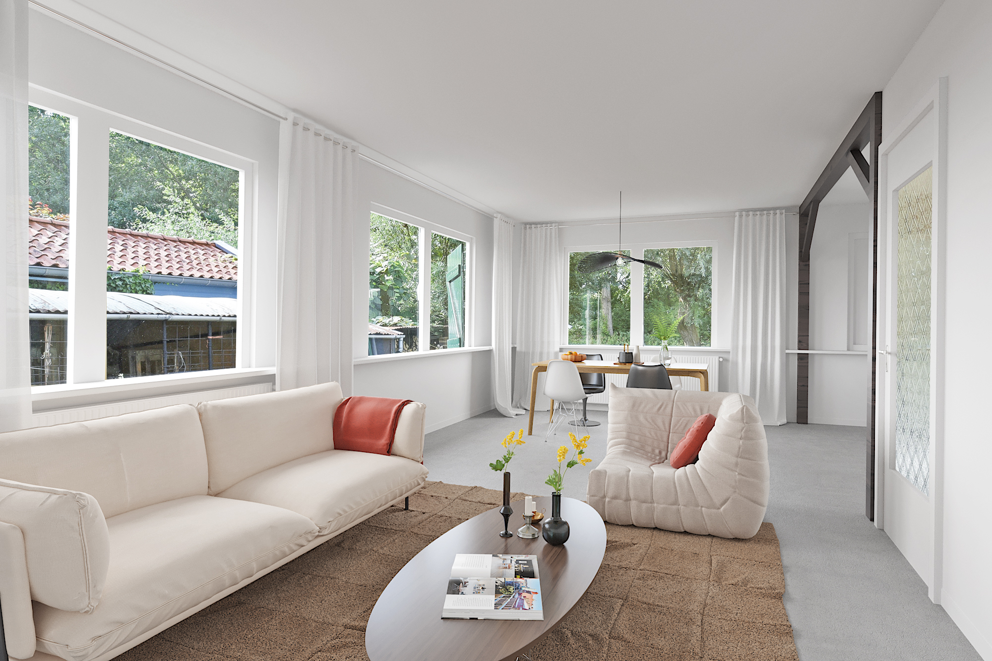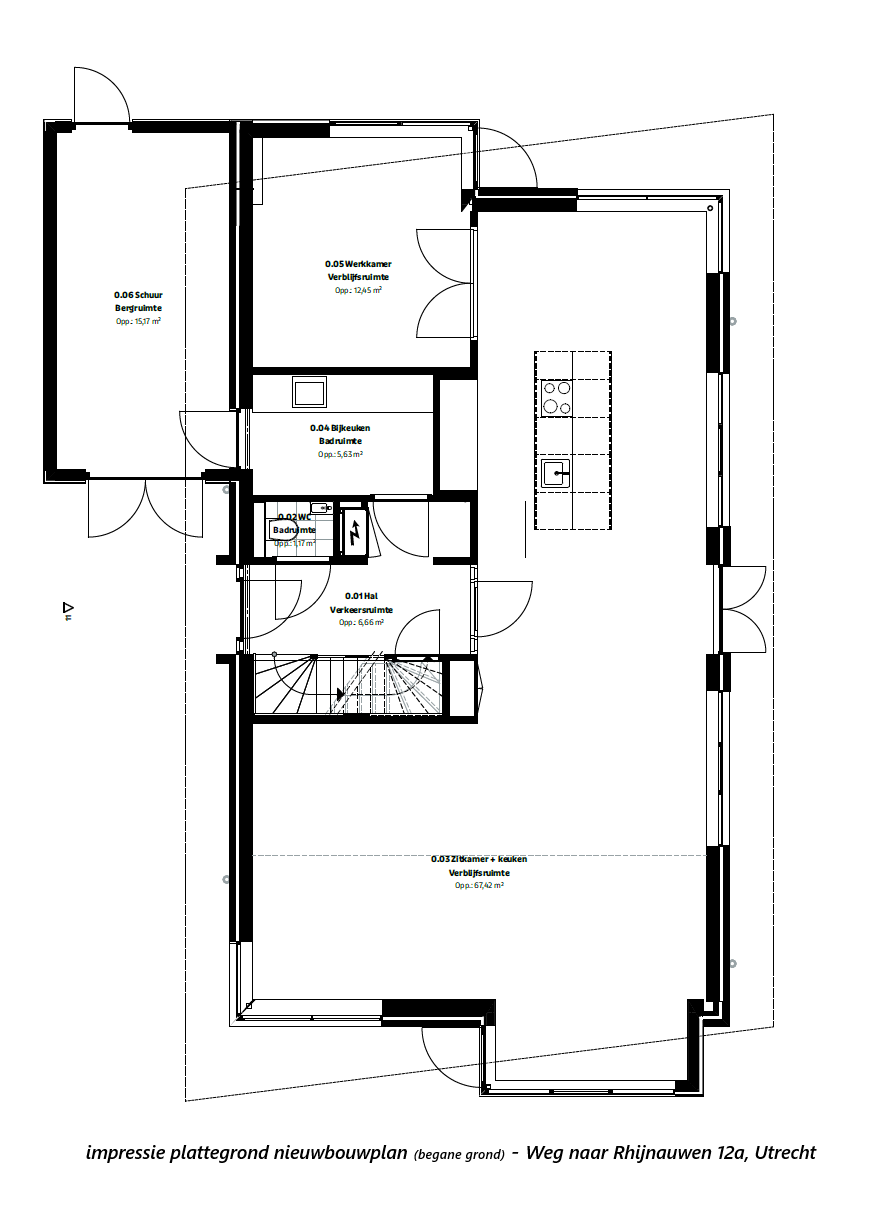 Dit uitgewerkte ontwerp dient als inspiratie en geeft een indruk van de potentie van de locatie. Het volledige plan is opgenomen in de verkoopdocumentatie en beschikbaar voor geïnteresseerden. De impressies en plattegronden vind je al terug in de fotopresentatie.