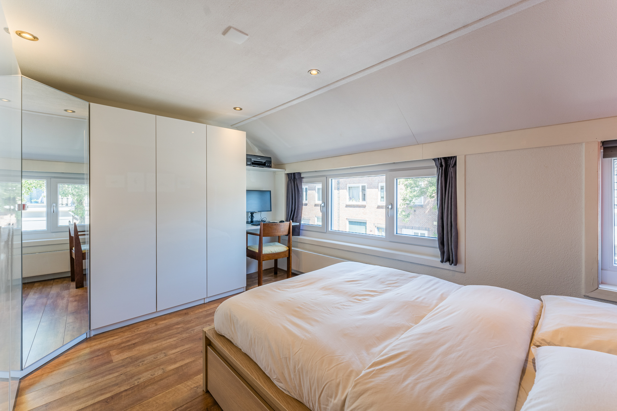 De gehele tweede verdieping is voorzien van strakke wandafwerking en een lichte laminaatvloer.