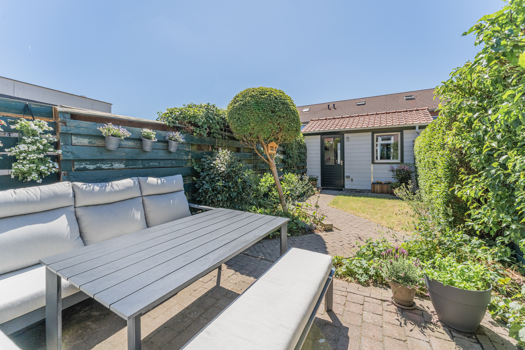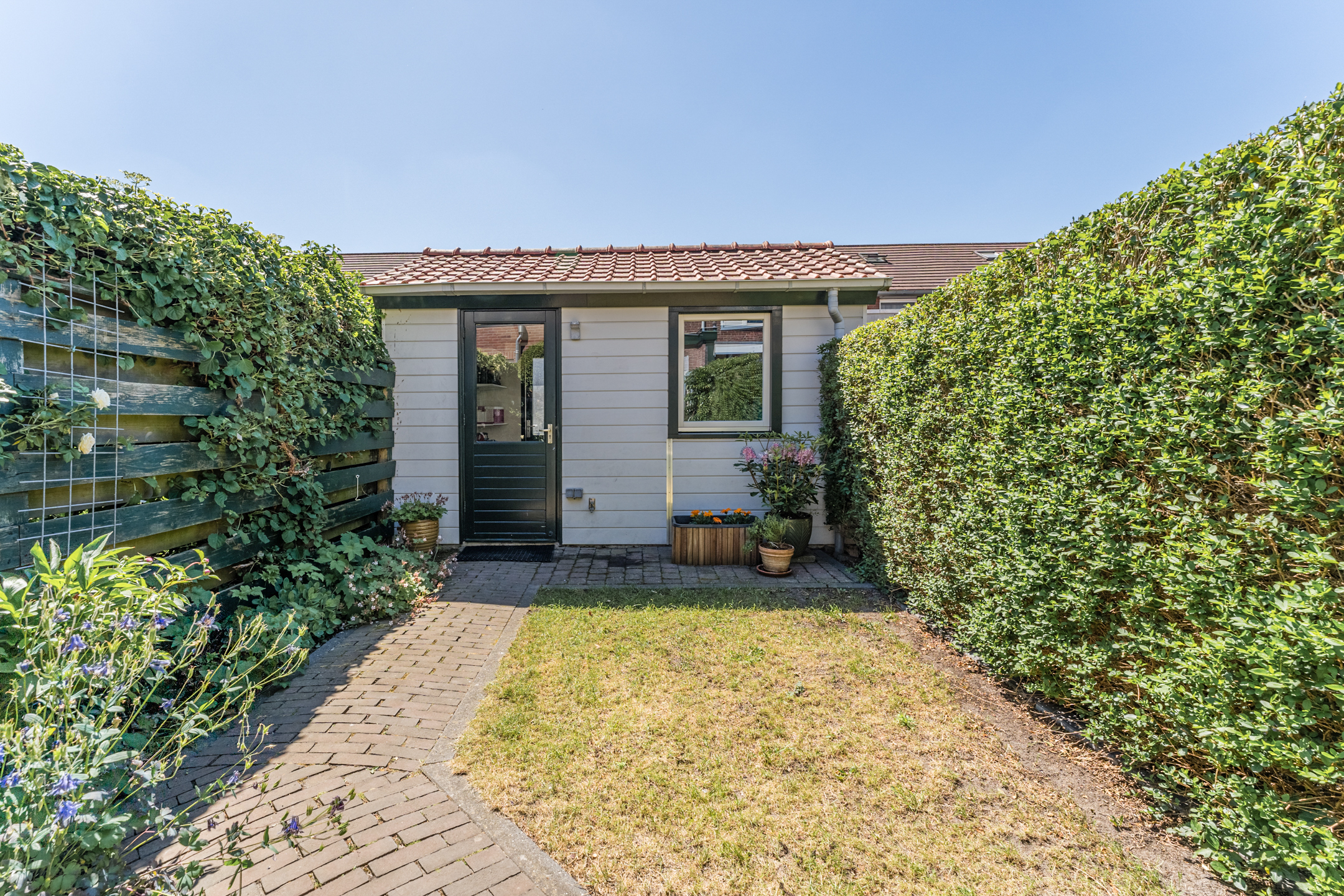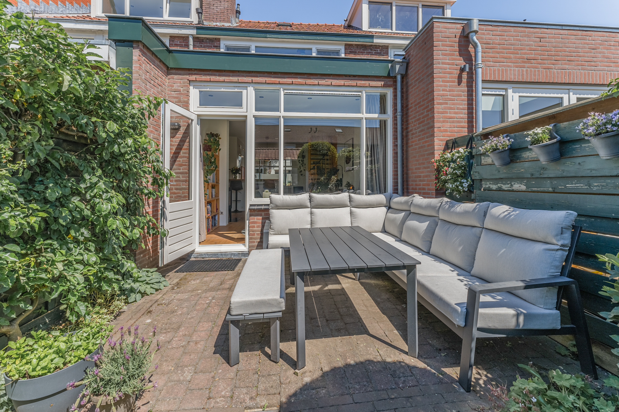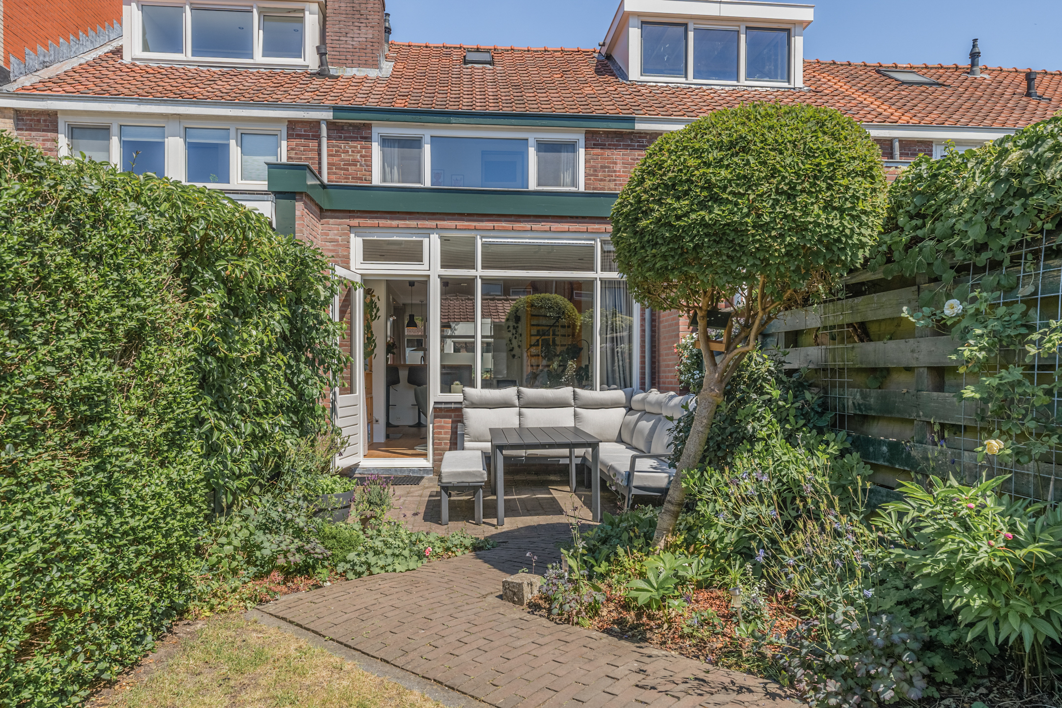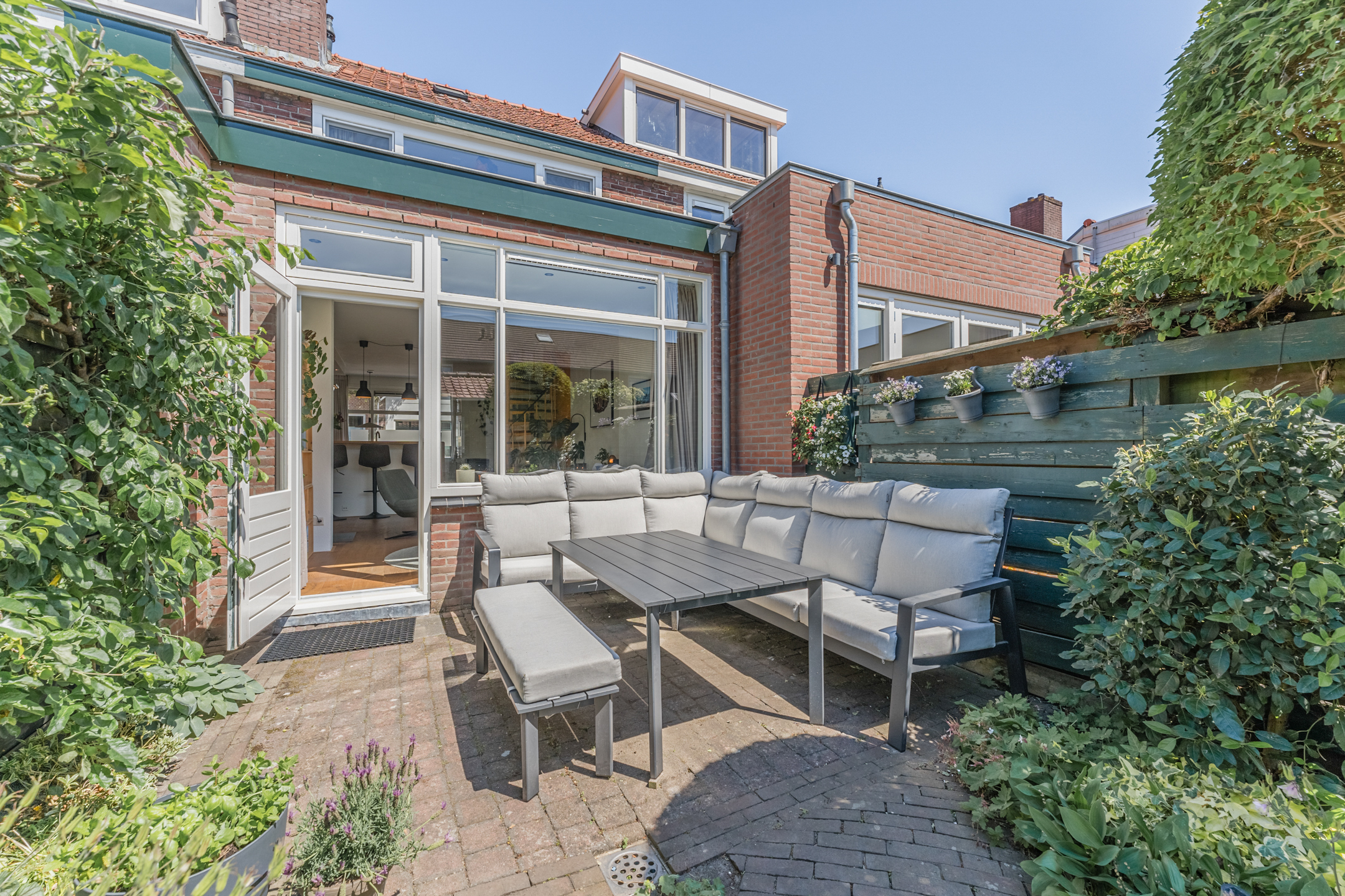 Vanuit de zongerichte woonkamer betreed je de heerlijk diepe achtertuin op het zonnige zuidwesten, voorzien van een vrijstaande berging!