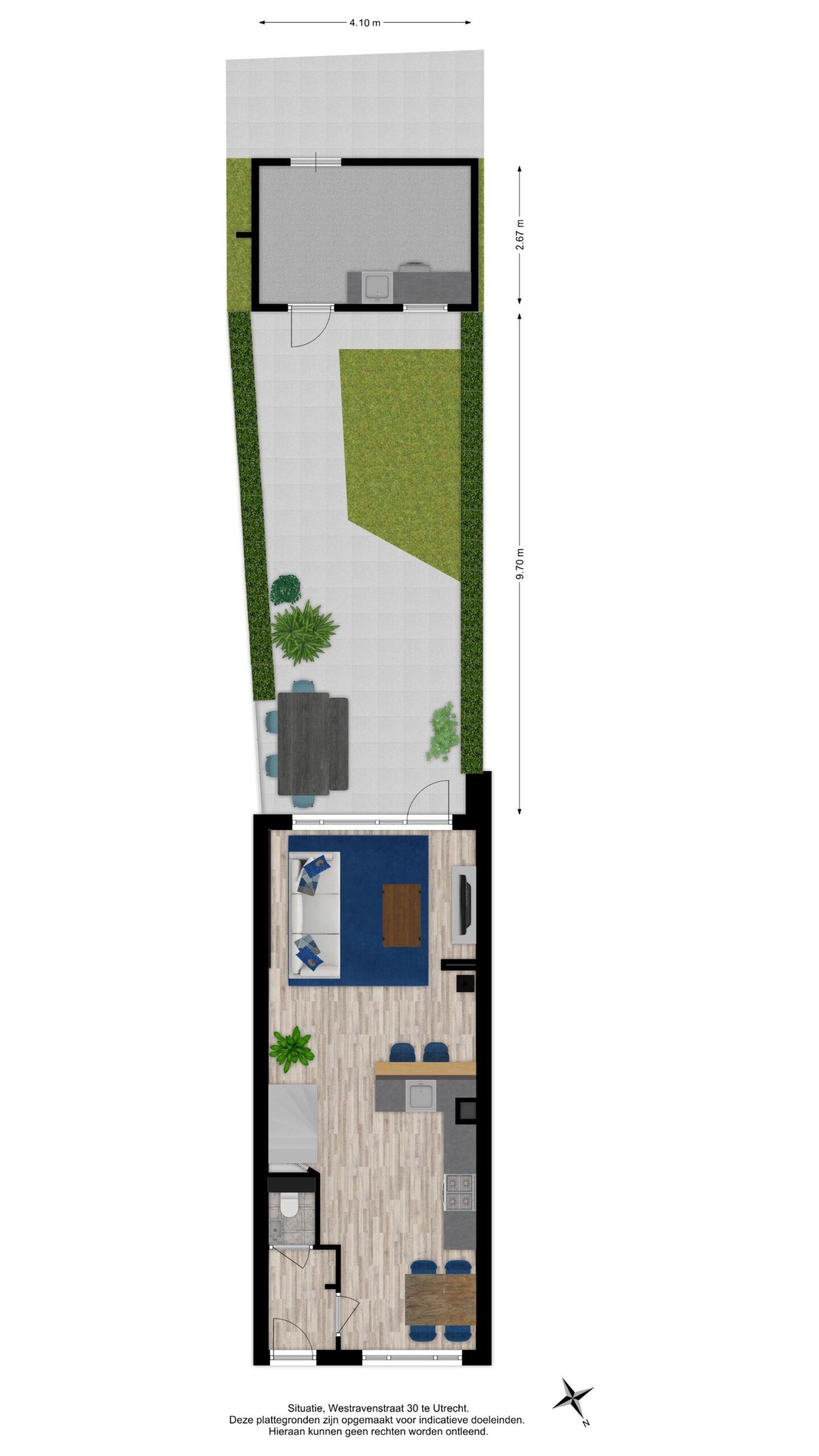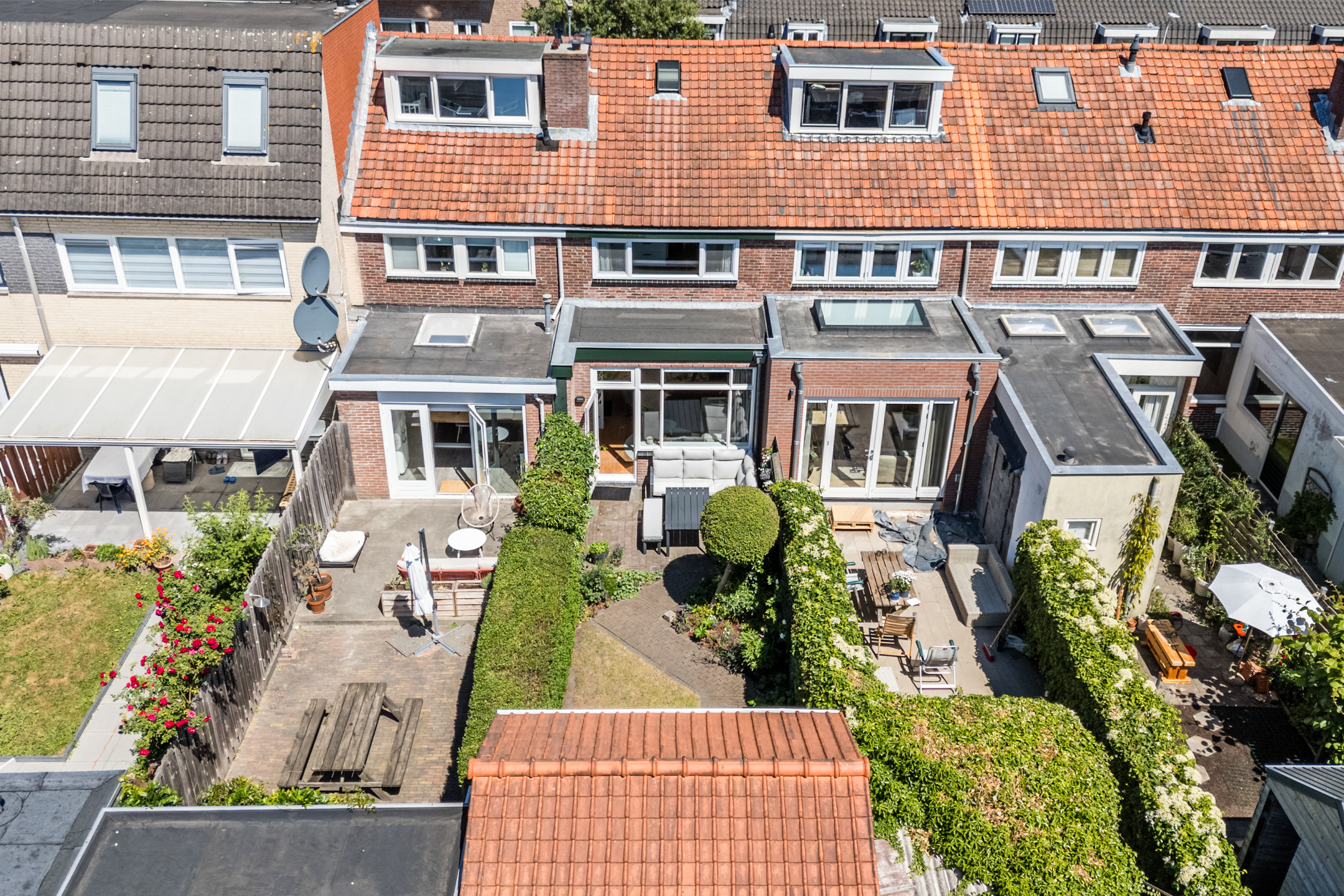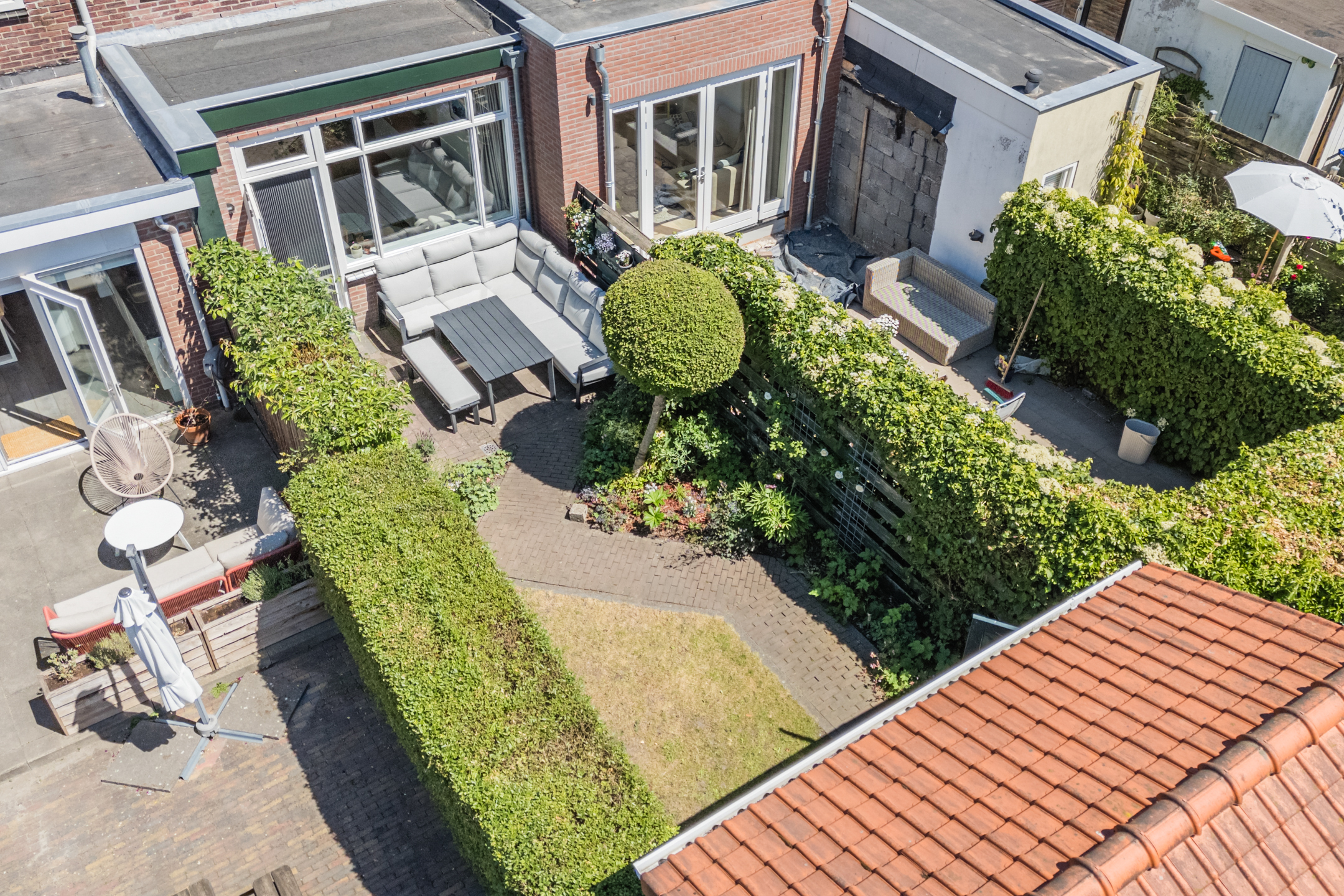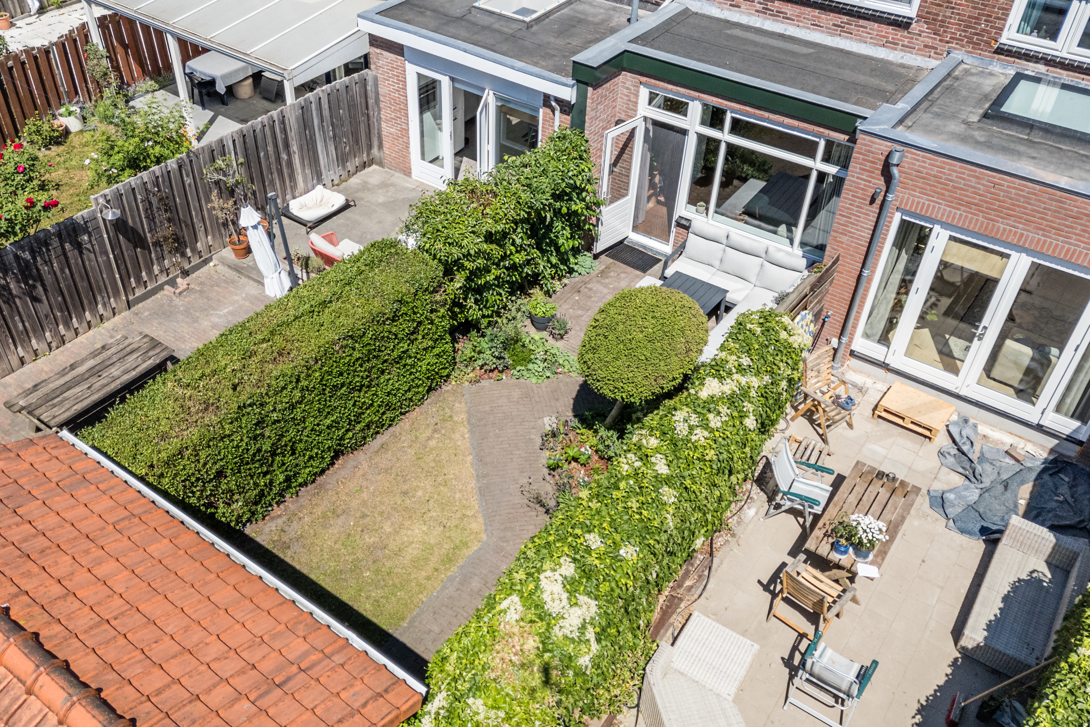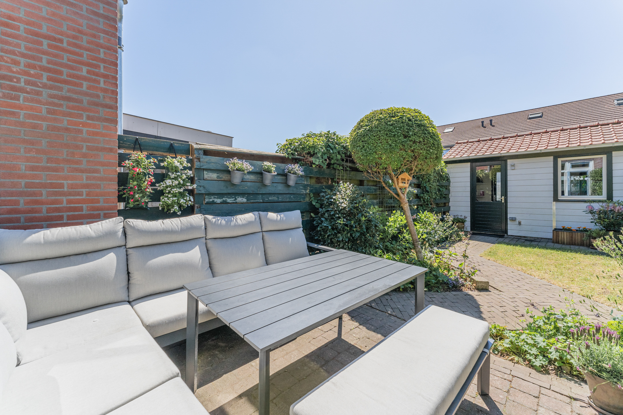Vanuit de zongerichte woonkamer betreed je de heerlijk diepe achtertuin op het zonnige zuidwesten, voorzien van een vrijstaande berging!