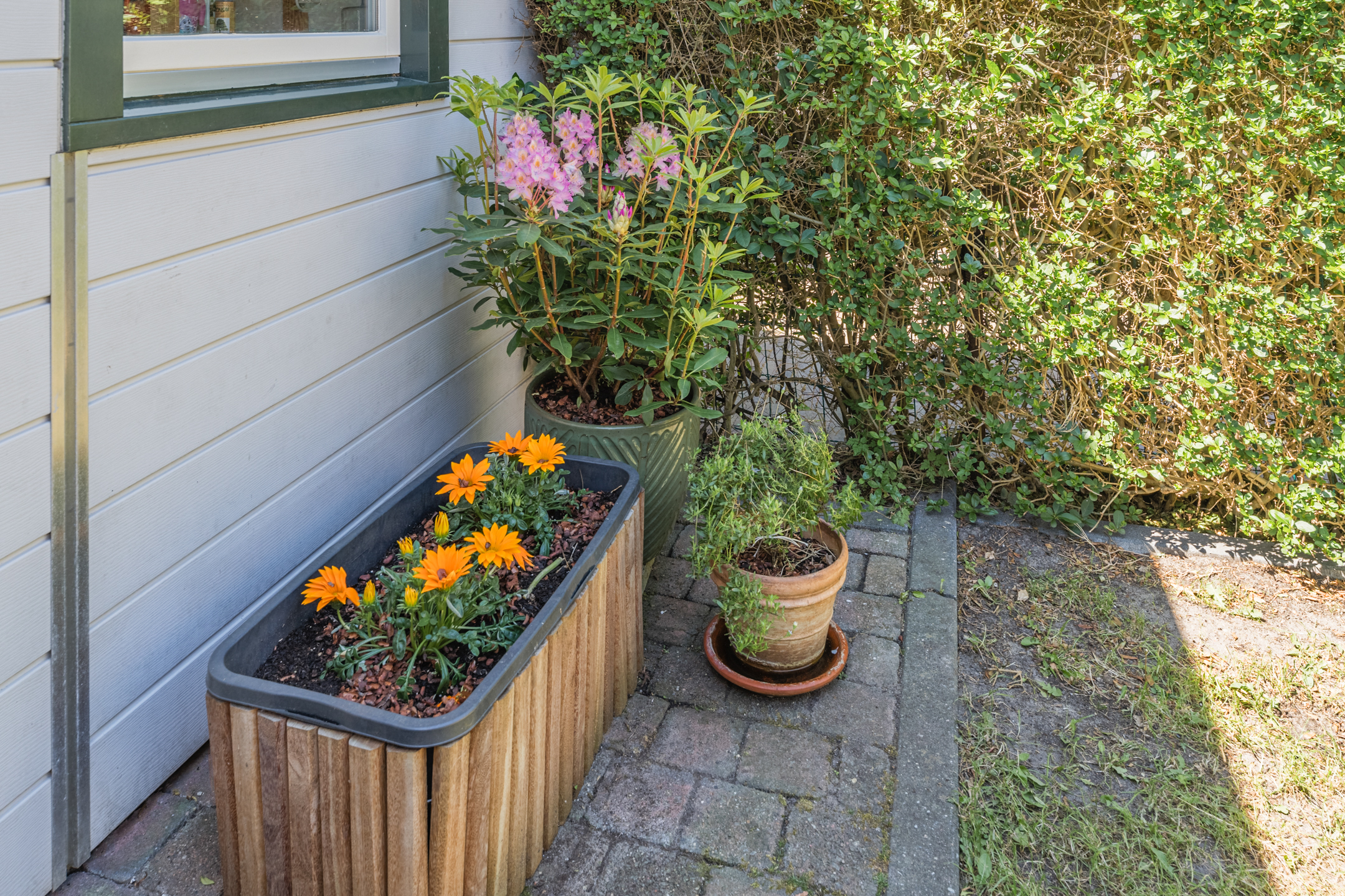 Het huis is voorzien van een heerlijk groene achtertuin (ca. 9,70 x 4,10 m), gelegen op het zonnige zuidwesten en is voorzien van een heerlijk zonnig terras, sierbestrating, een houten erfafscheiding, diverse plantenborders en een gazon. In deze tuin geniet je de gehele dag van de zonneschijn!