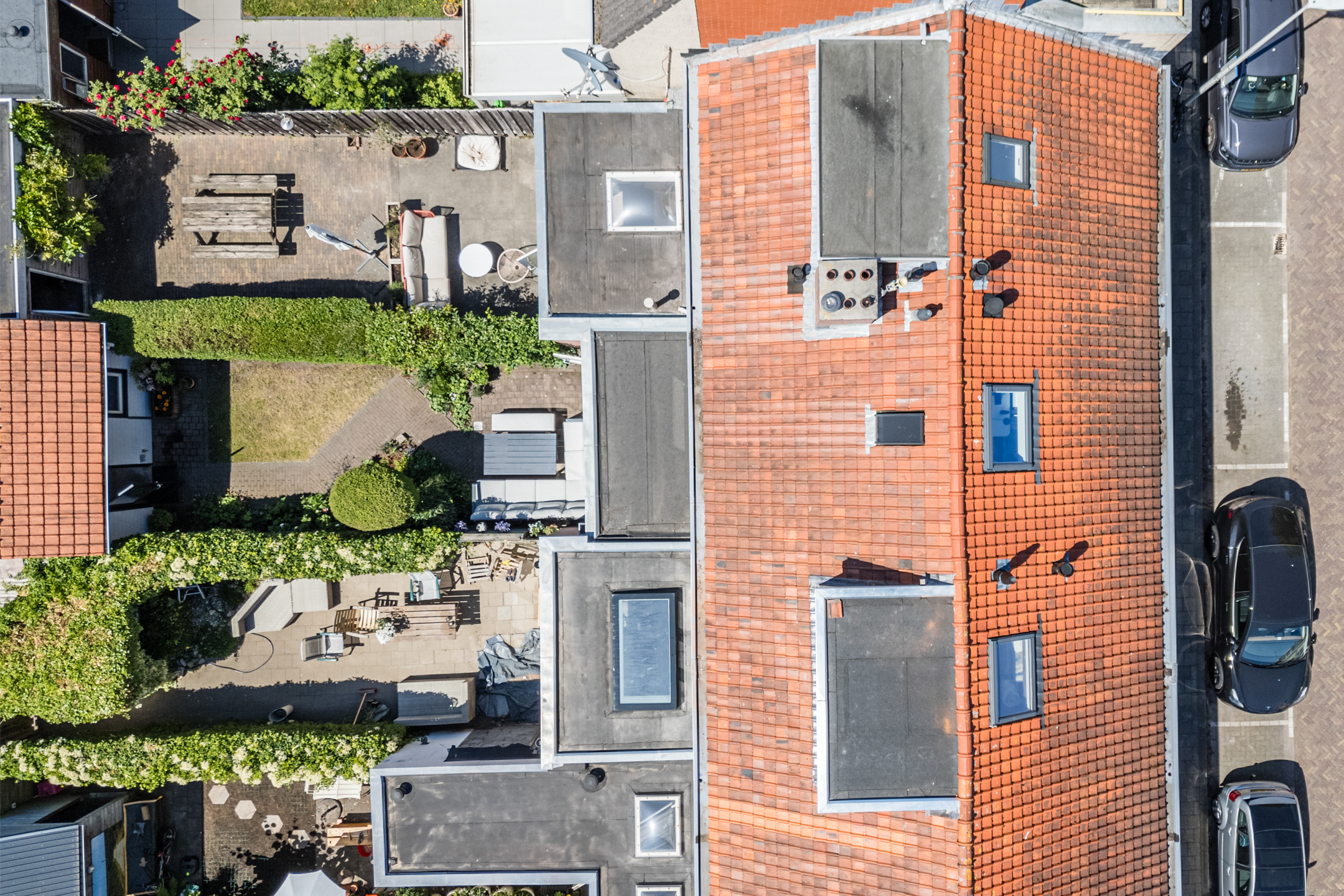 Characteristic of this beautiful property are its exceptionally practical layout, high-quality finishes, bright dining area at the front of the house, garden-facing living area at the rear, fully equipped kitchen with all desired built-in appliances, spacious and wonderfully sunny southwest-facing backyard, two well-proportioned multifunctional (bed)rooms on the first floor (approx. 10 & 13 m²), and the home office/study on the second floor (approx. 5.3 m²), featuring large skylights at both the front and rear.