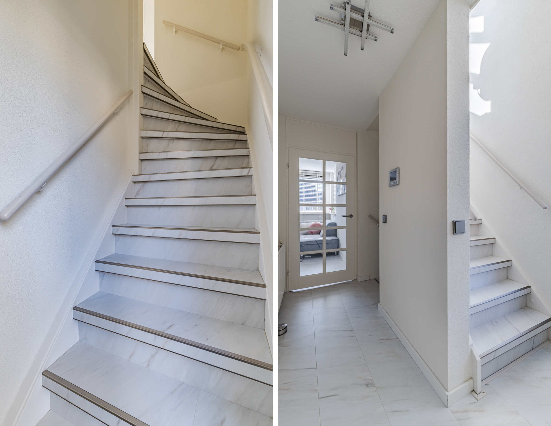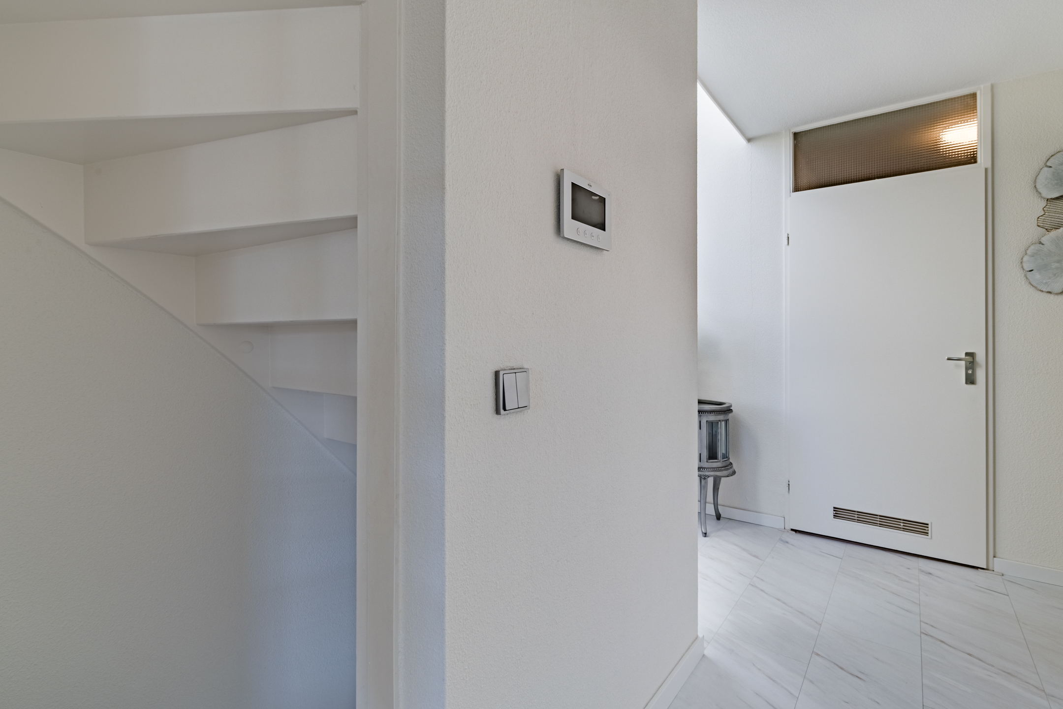 Entree, hal en trapopgang naar de bovenwoning. Op de begane grond bevindt zich tevens een separate berging die ideaal is voor het stallen van fietsen en het opbergen van extra spullen.