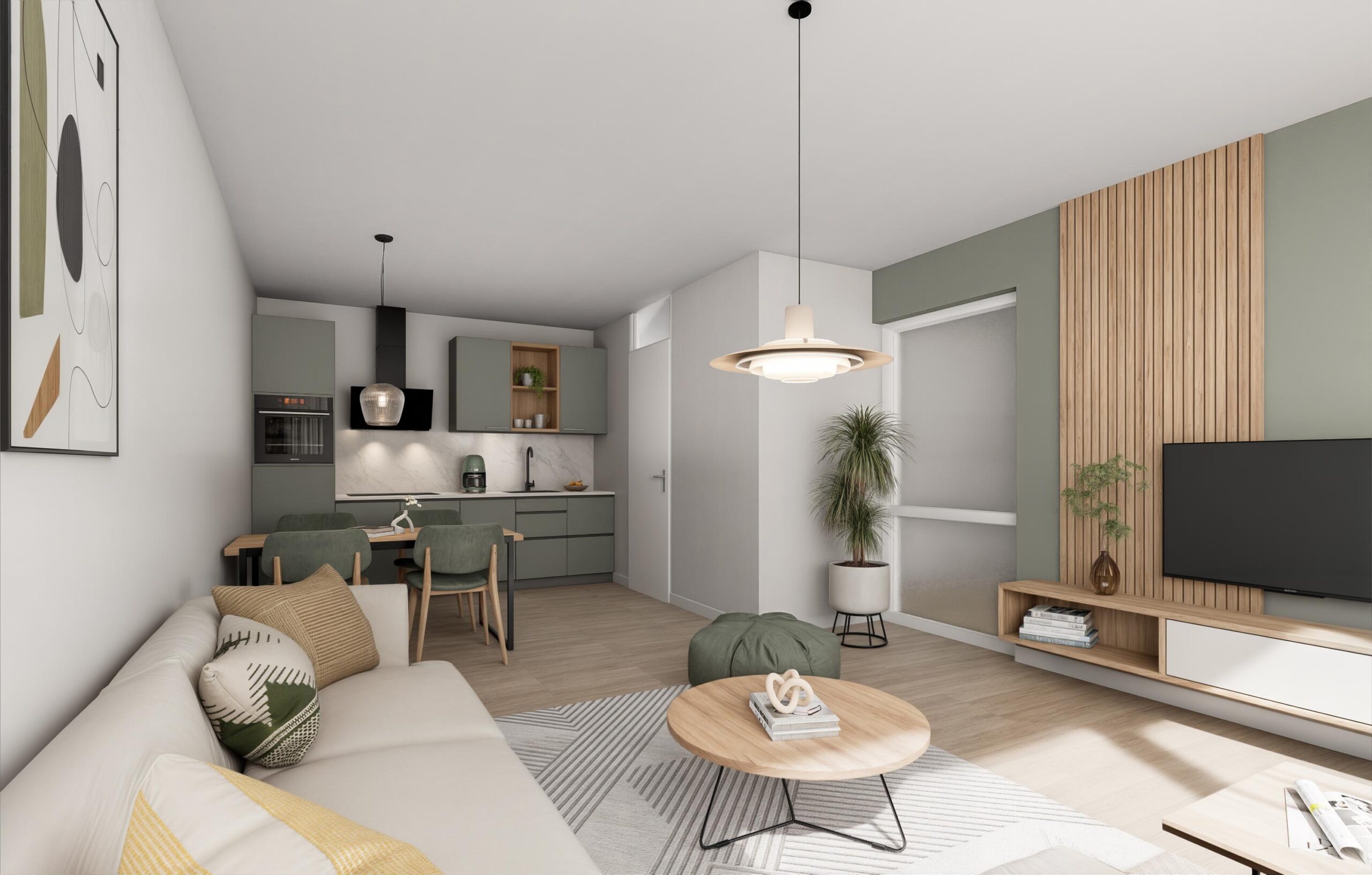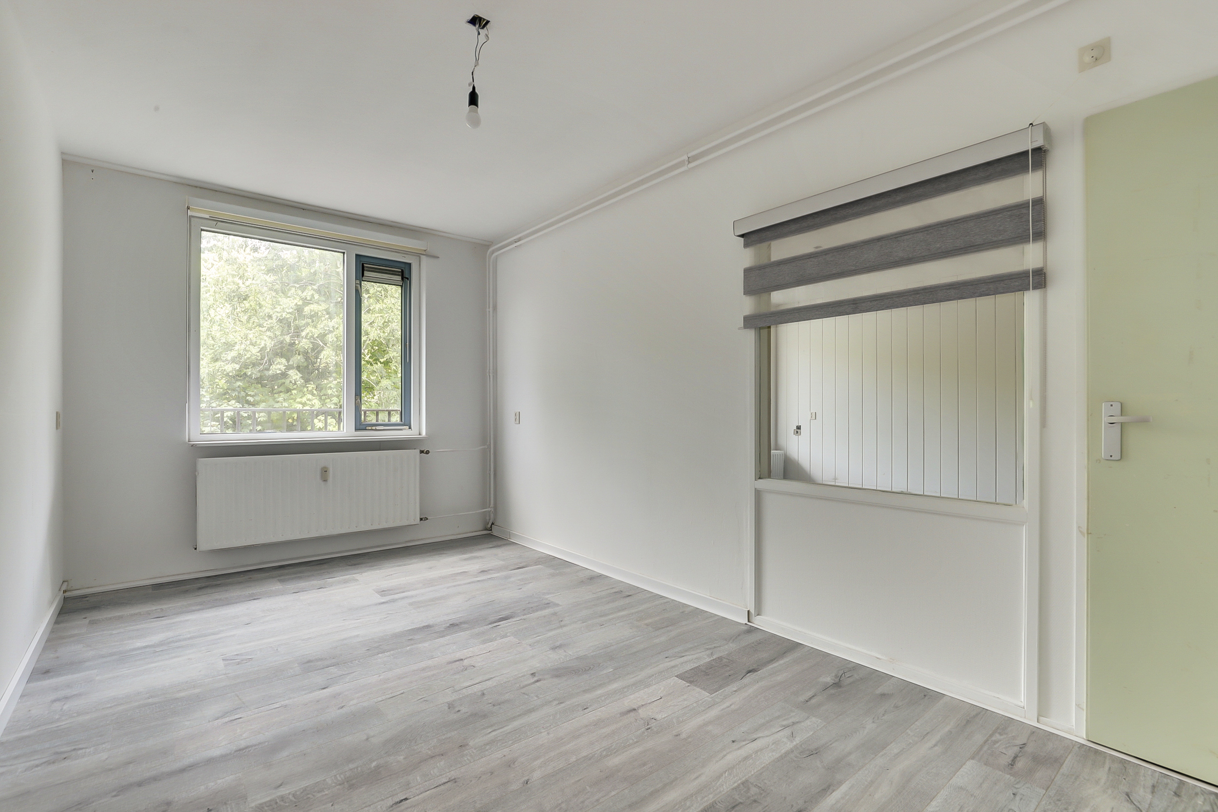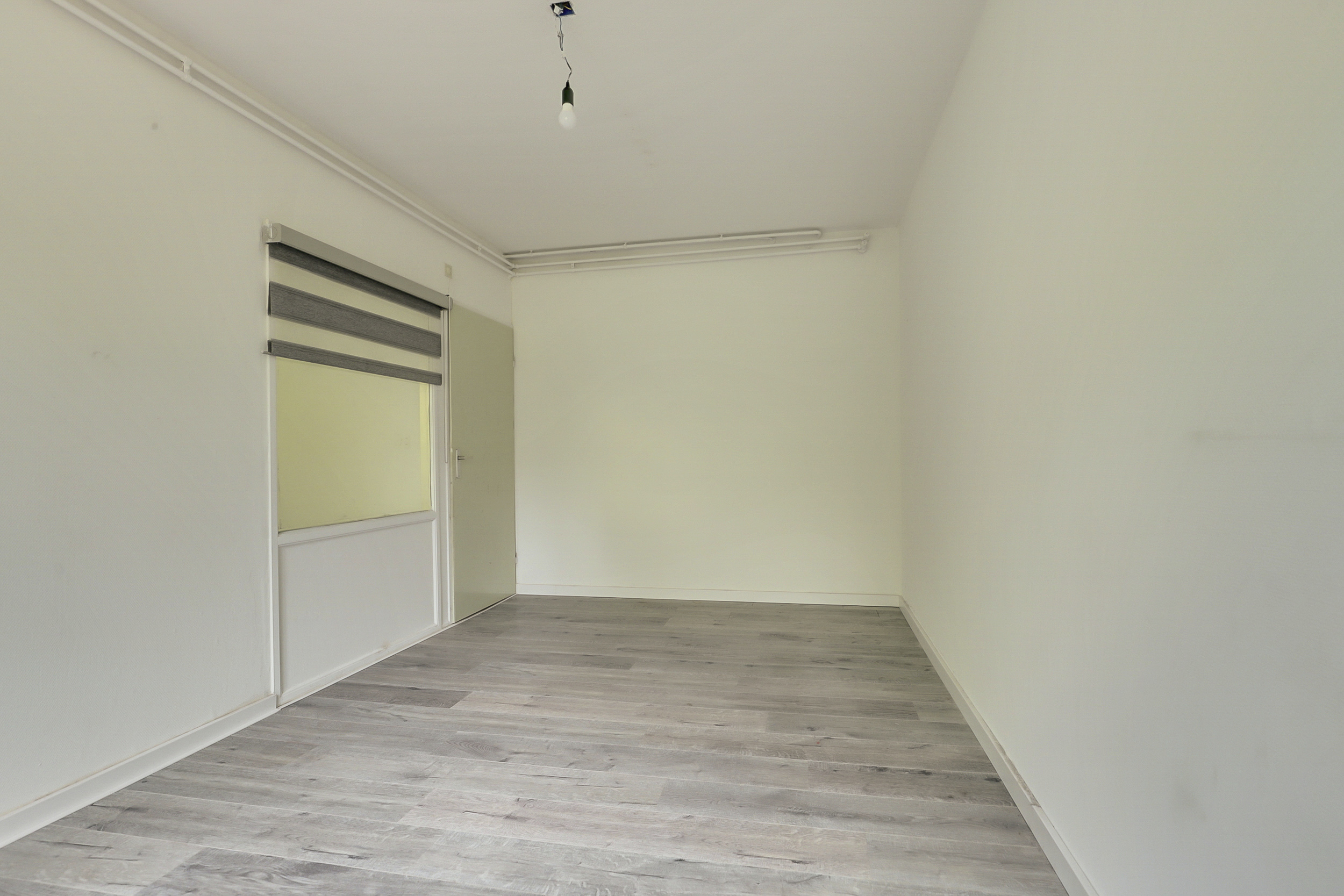 De woonkamer is licht en makkelijk indeelbaar en is voorzien van een open keuken. Deze keuken is eenvoudig qua uitvoering maar er is voldoende ruimte beschikbaar om jouw droomkeuken te plaatsen.
